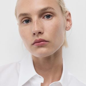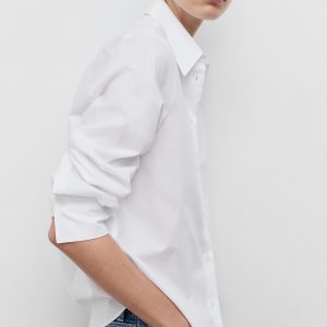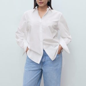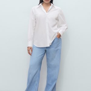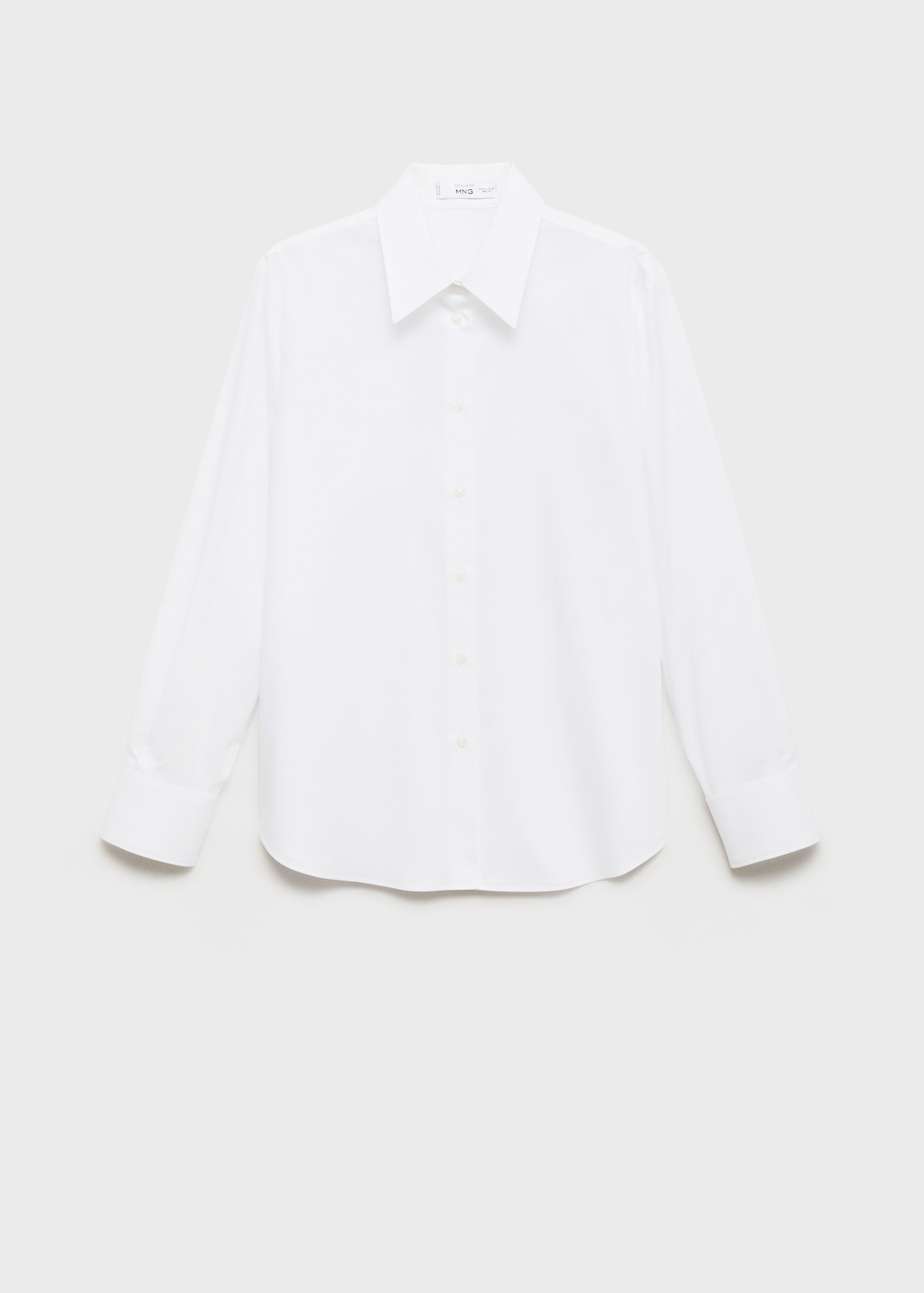 Crafted from a cotton and lyocell blend poplin fabric, this shirt features a straight design with a shirt collar and long sleeves with buttoned cuffs. It's an indispensable piece for any closet. Available in Plus Size