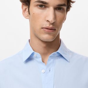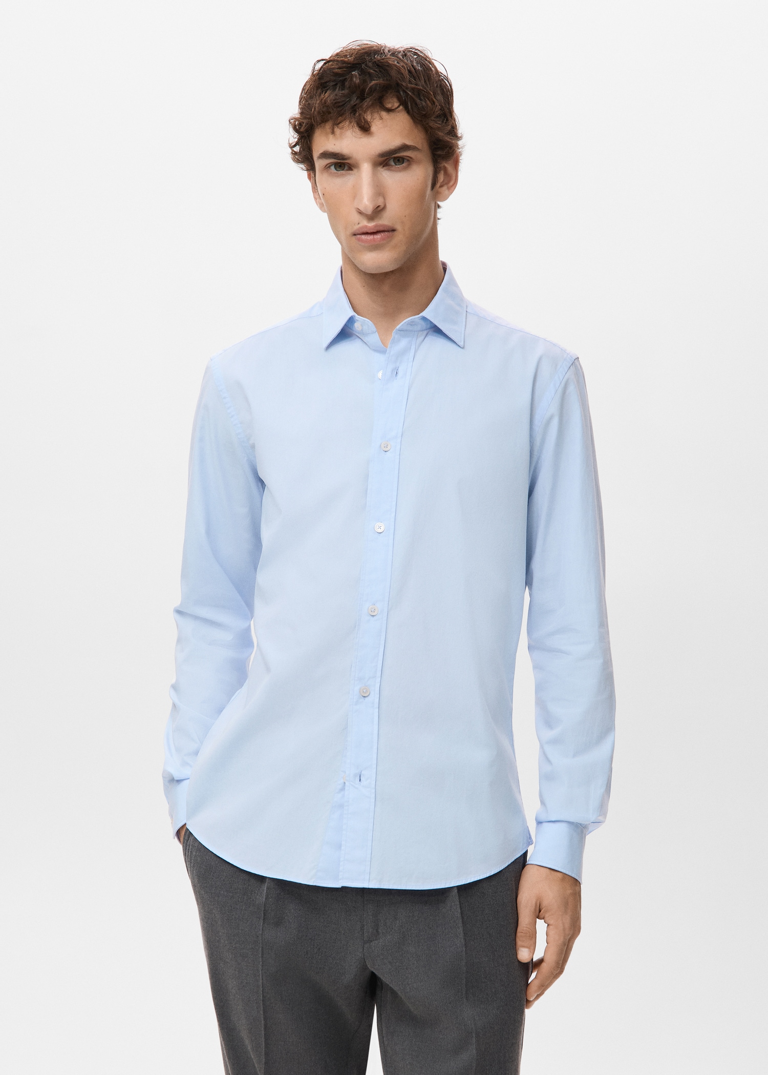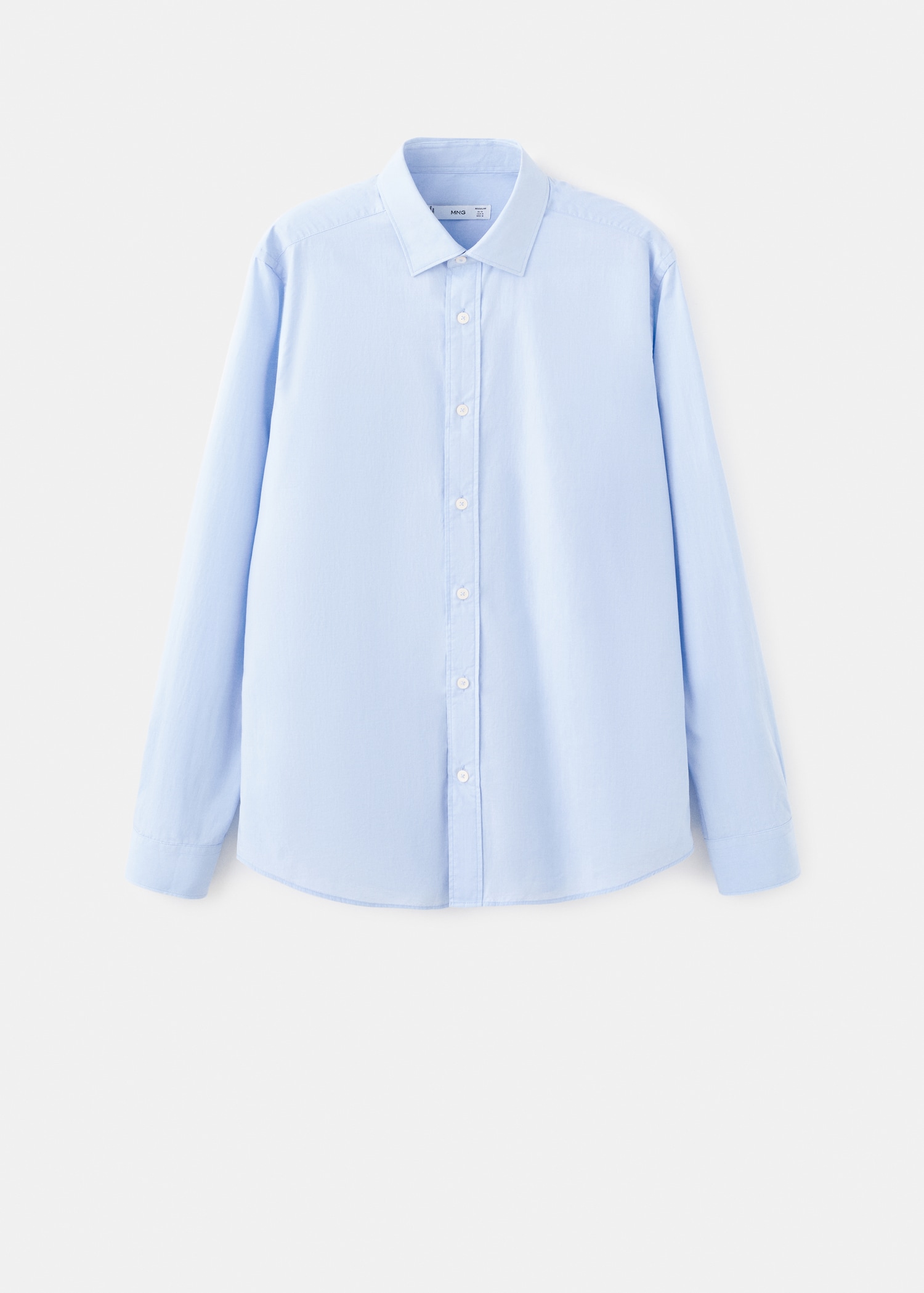 100% cotton fabric. Regular fit. Long sleeves with buttoned cuffs. Front button closure. Shirt collar