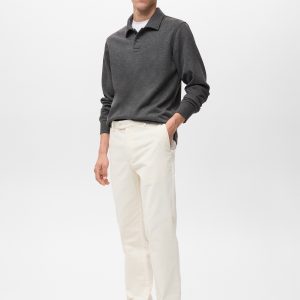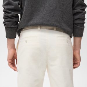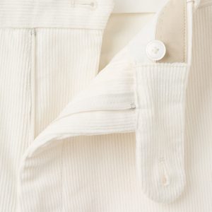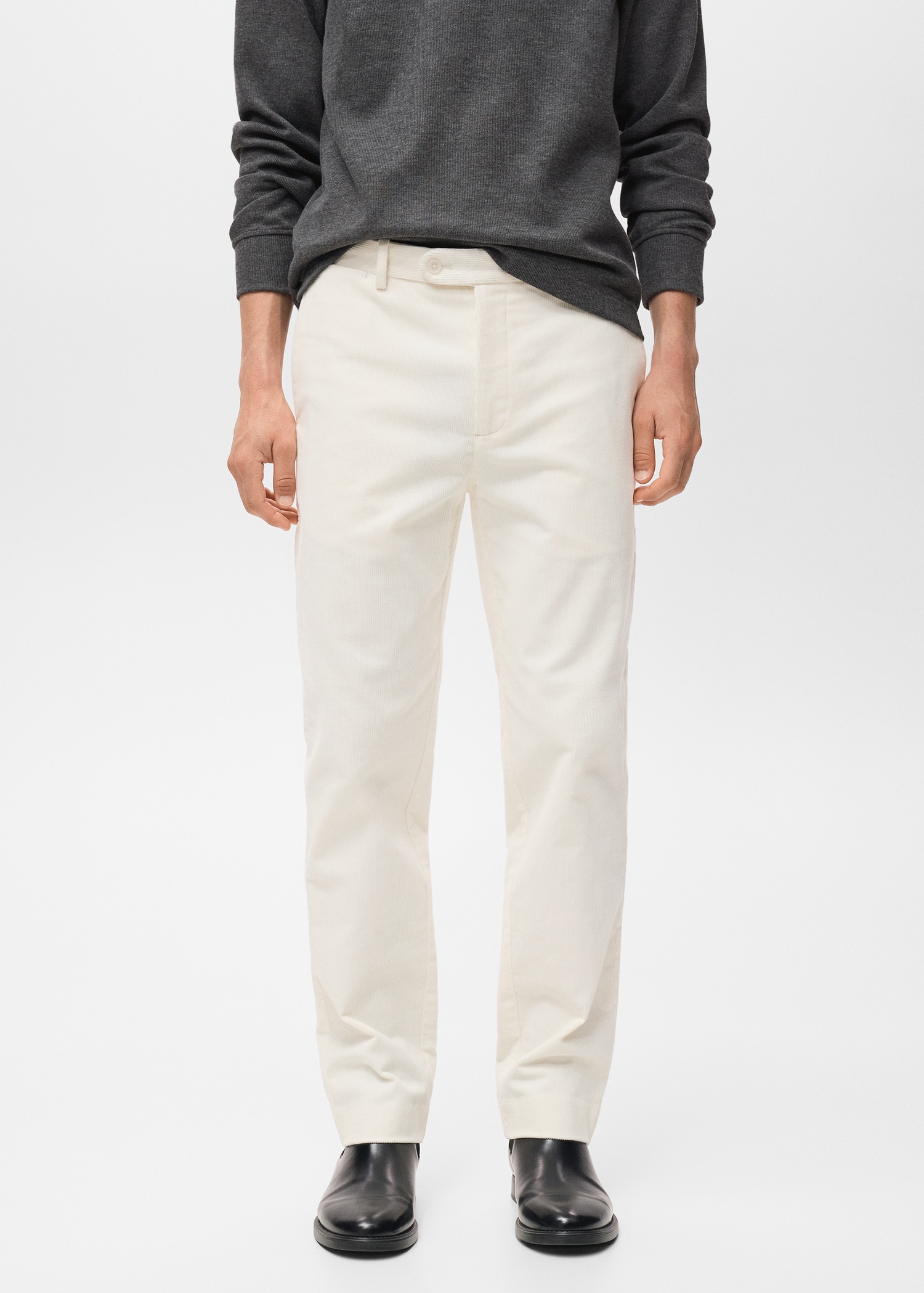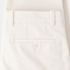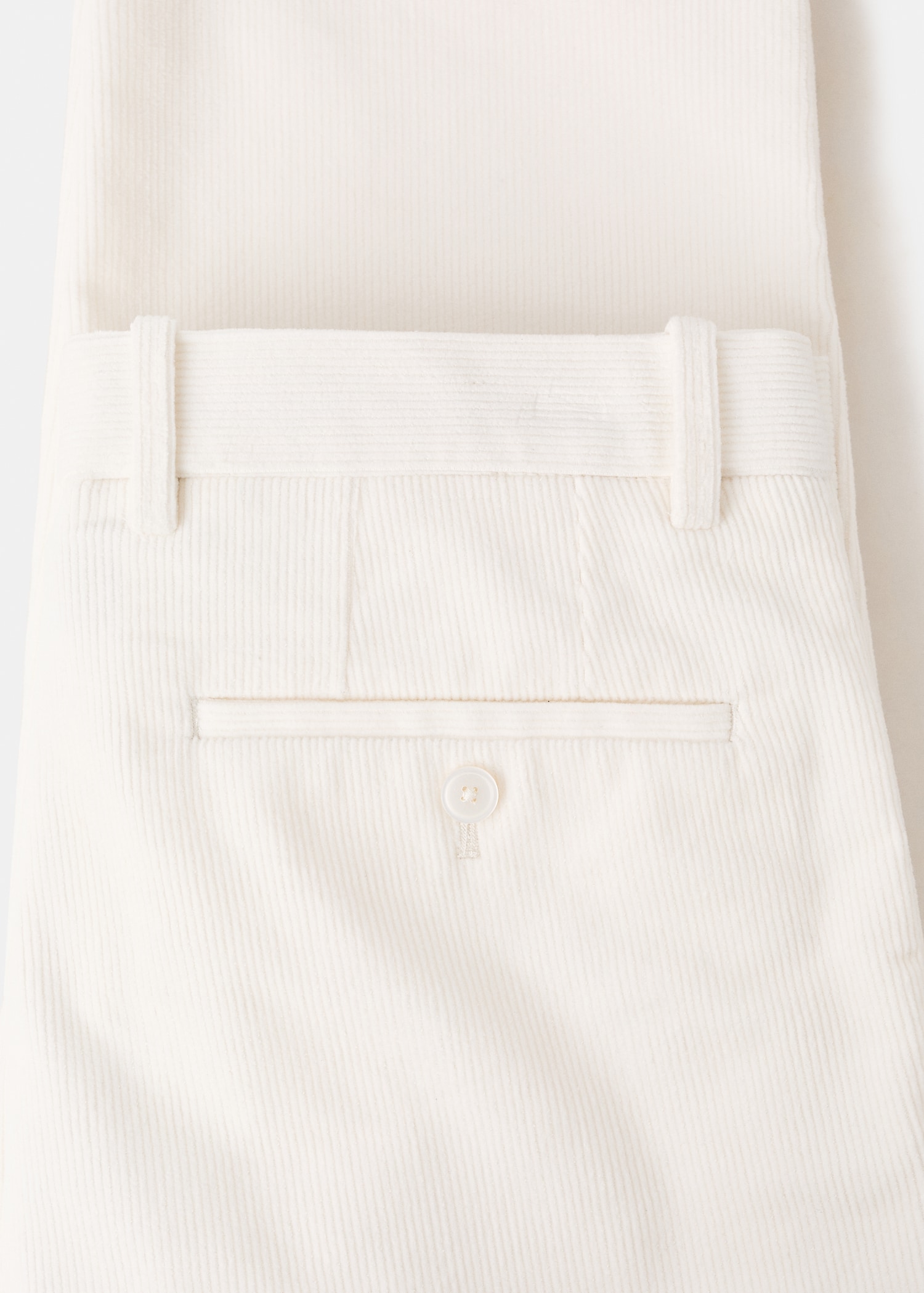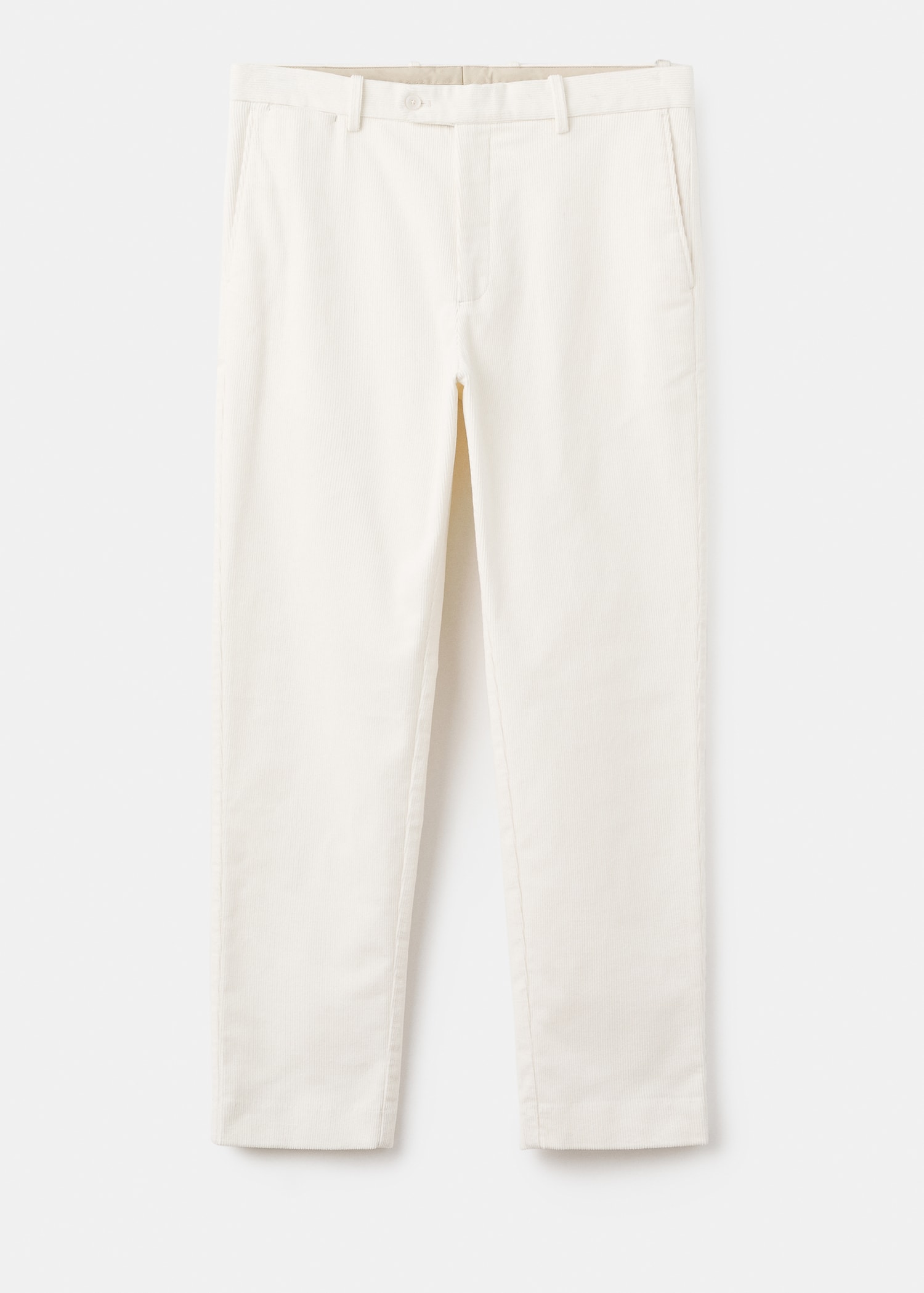 Regular fit. Cotton fabric. Belt loops. Two front pockets. Two welt pockets at the back. Button and zipper closure. The blue color is an online exclusive