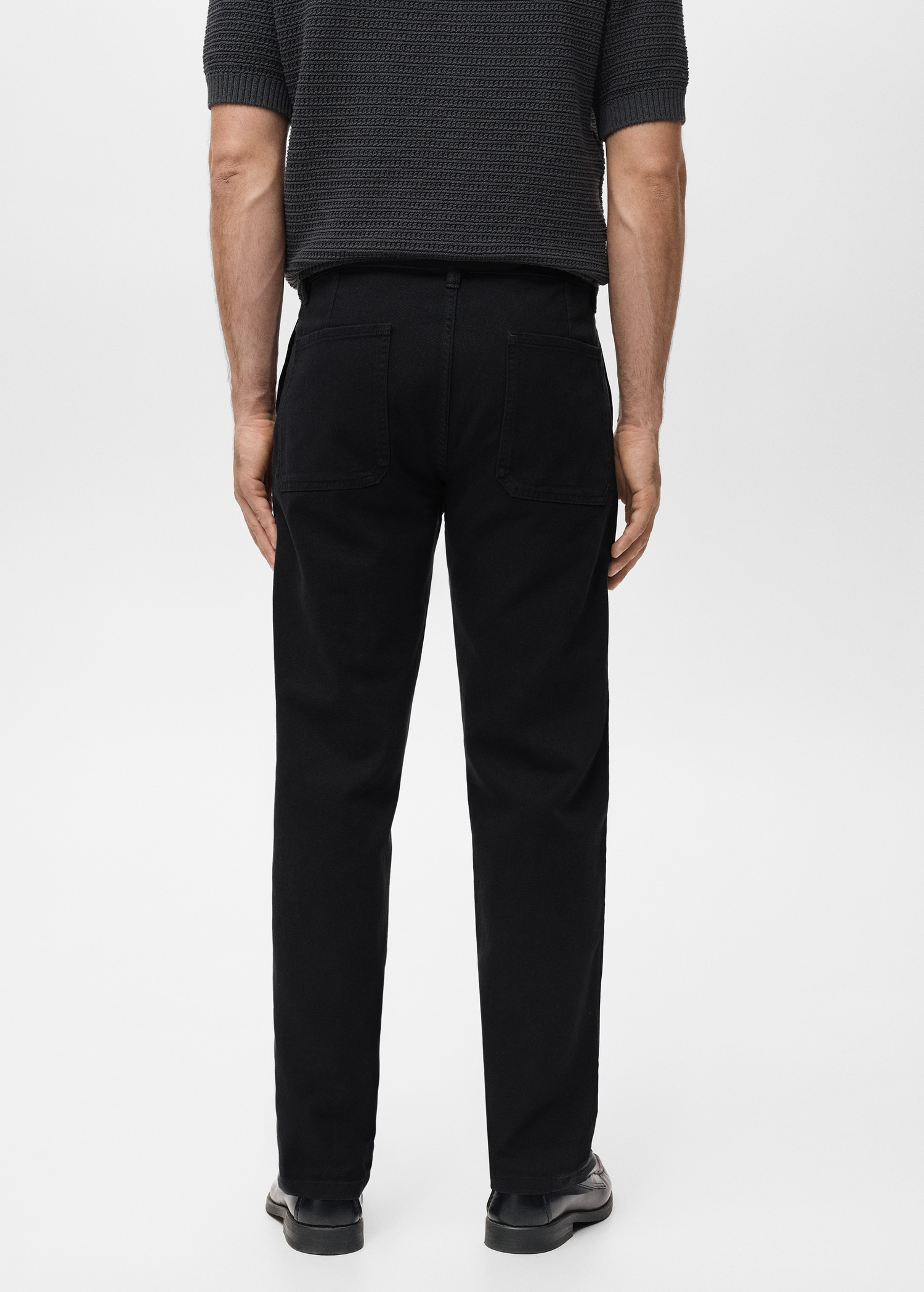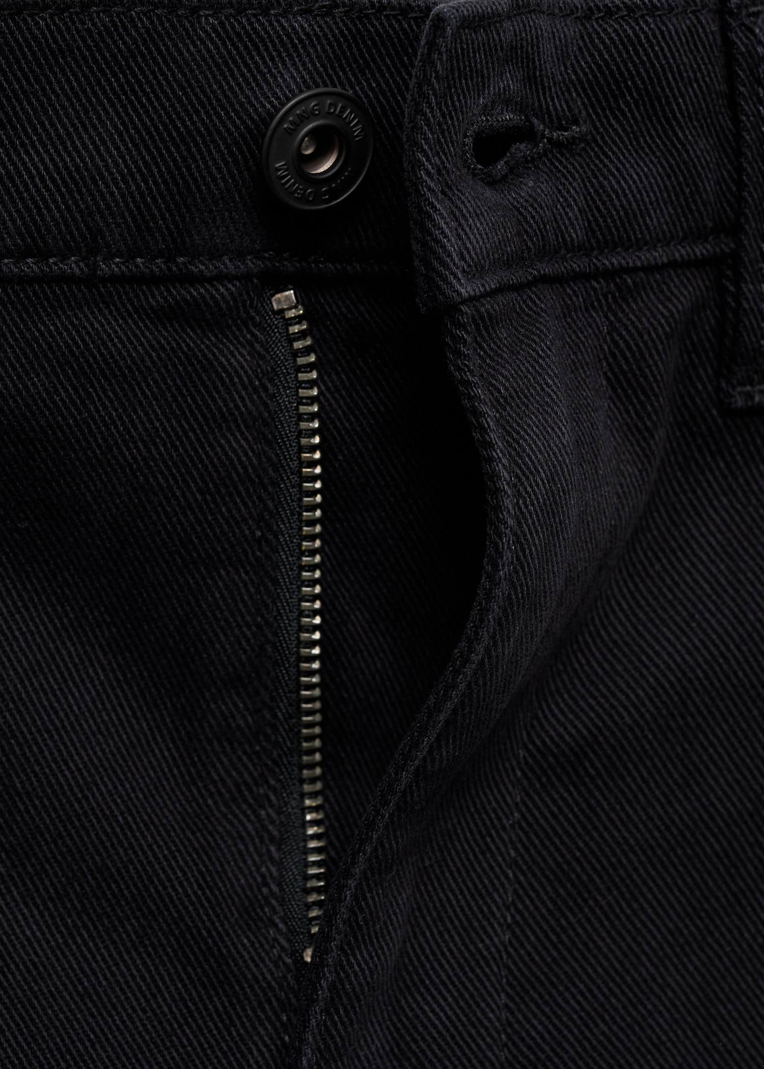 100% cotton denim fabric. Regular fit. Two side pockets. Coin pocket. Two patch pockets at the back. Belt loops. Zip and button closure. Promotional product
