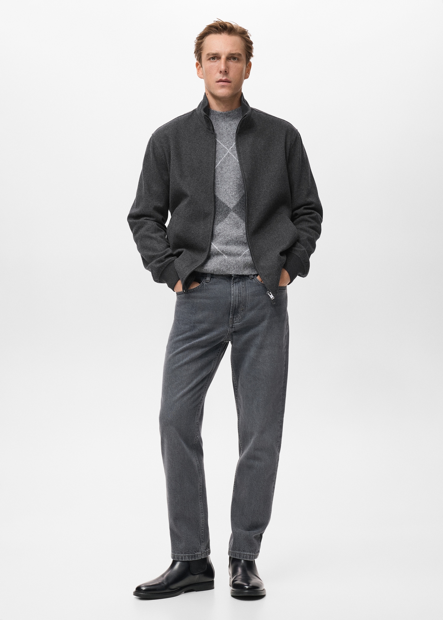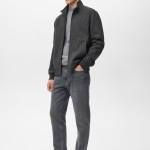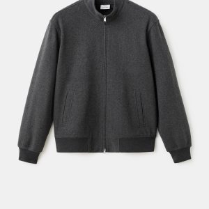 Regular fit. Sweatshirt fabric. Shirt collar. Zipper closure. Two side welt pockets. Two inner pockets. Rib cuffs and hem. Straight hem