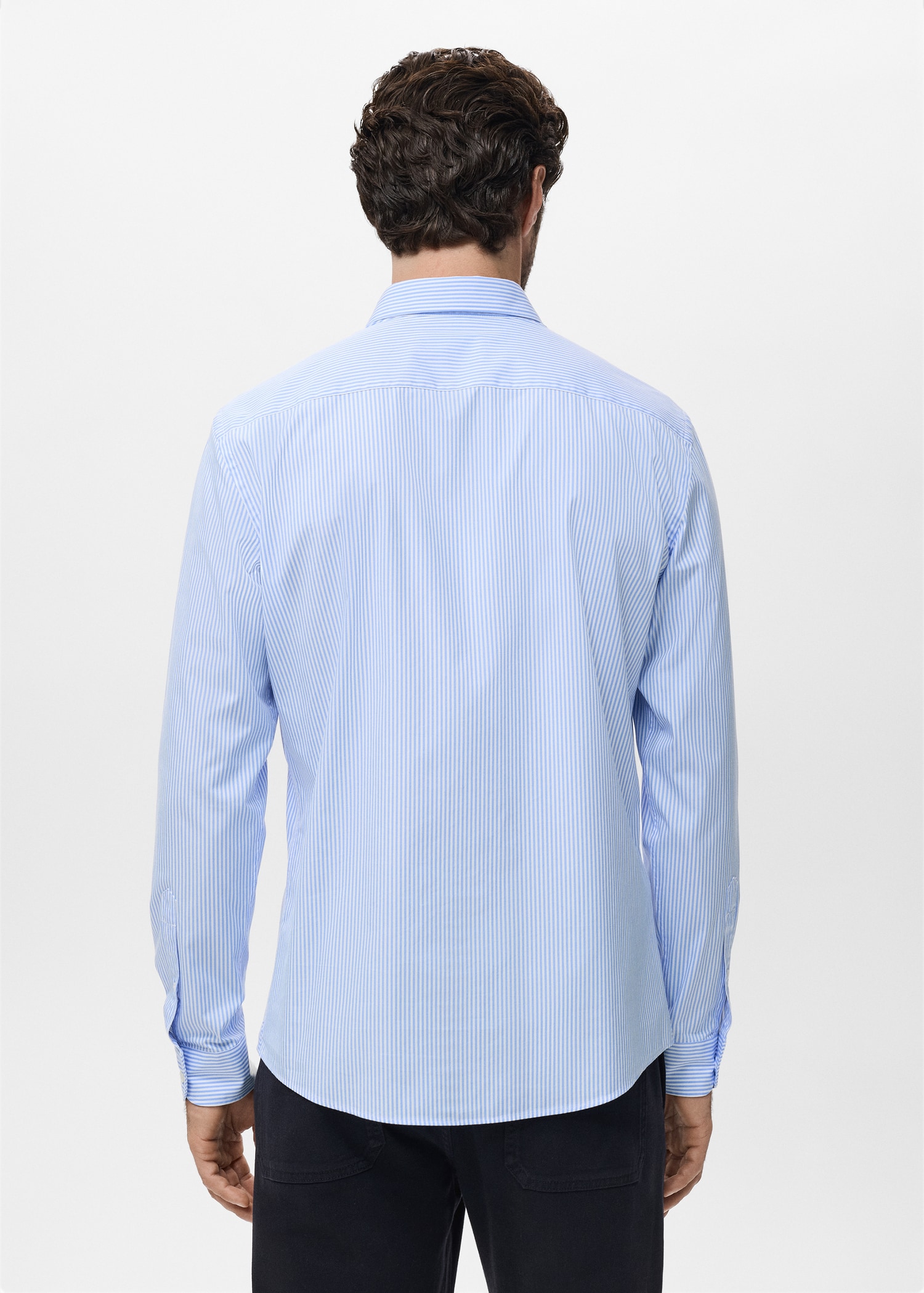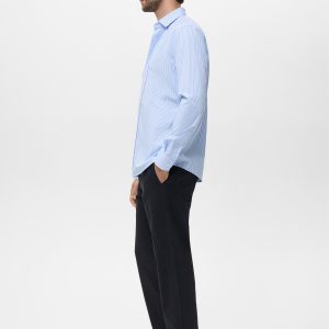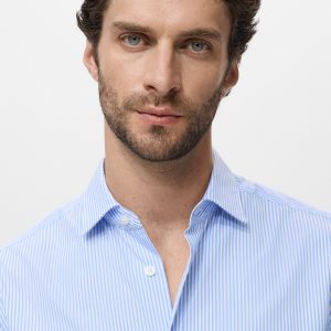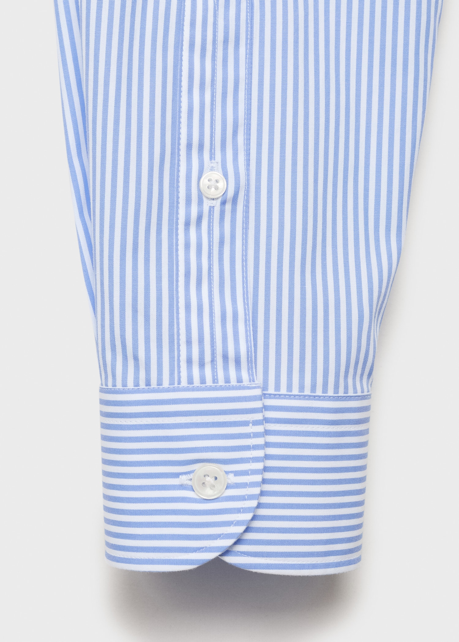 100% Cotton. Striped print. Regular fit. Shirt collar with lapel. Shirt collar. Long sleeves with buttoned cuffs. Front button closure