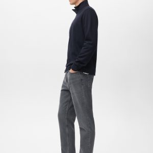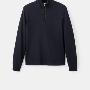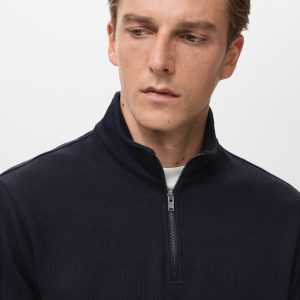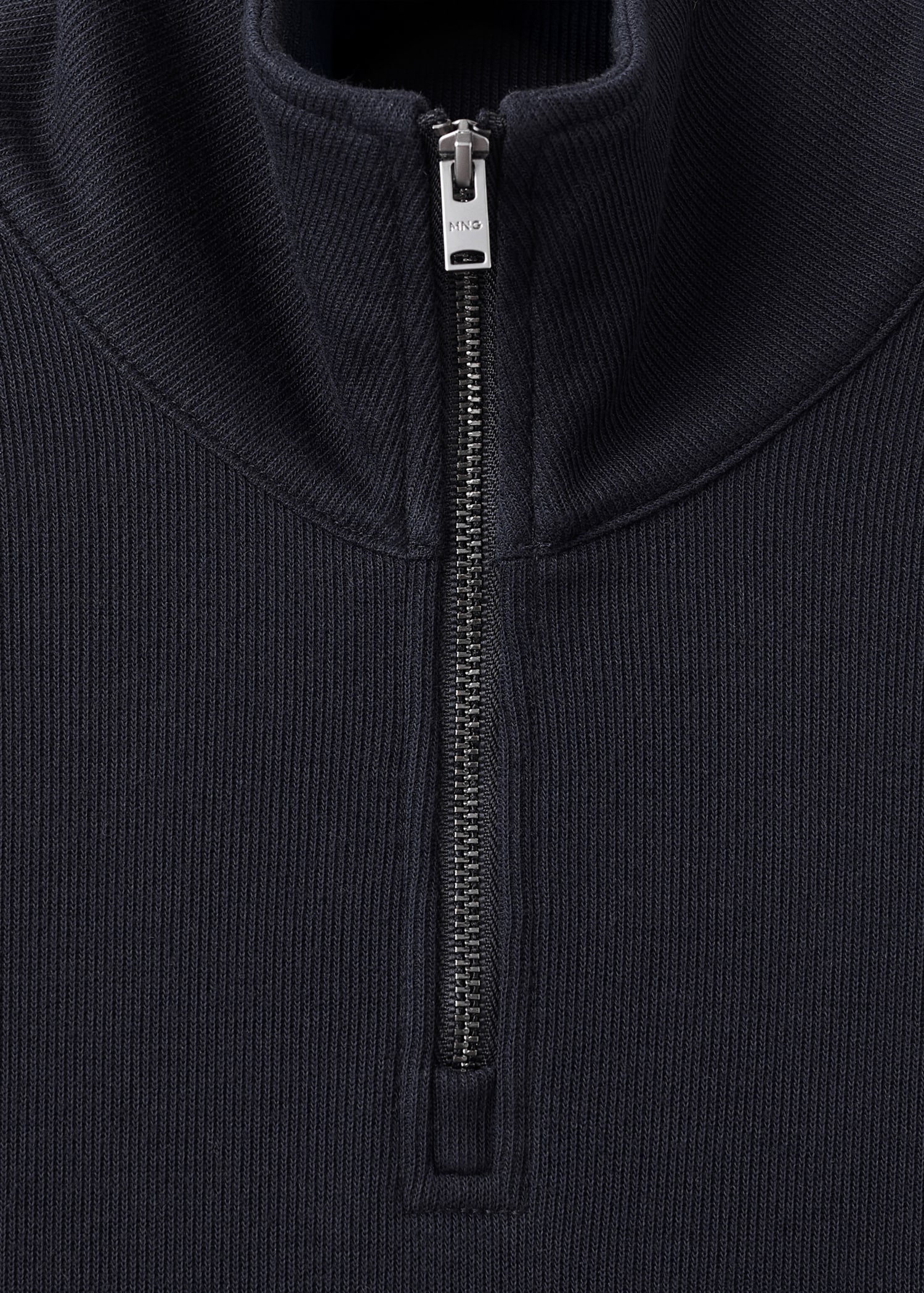 Cotton blend fabric. Perkins collar with zipper closure. Long Sleeve. Straight hem
