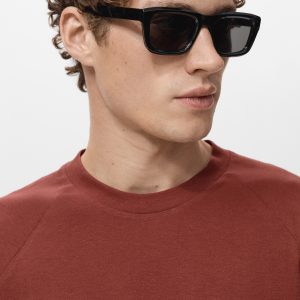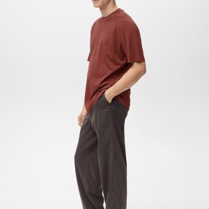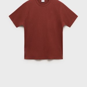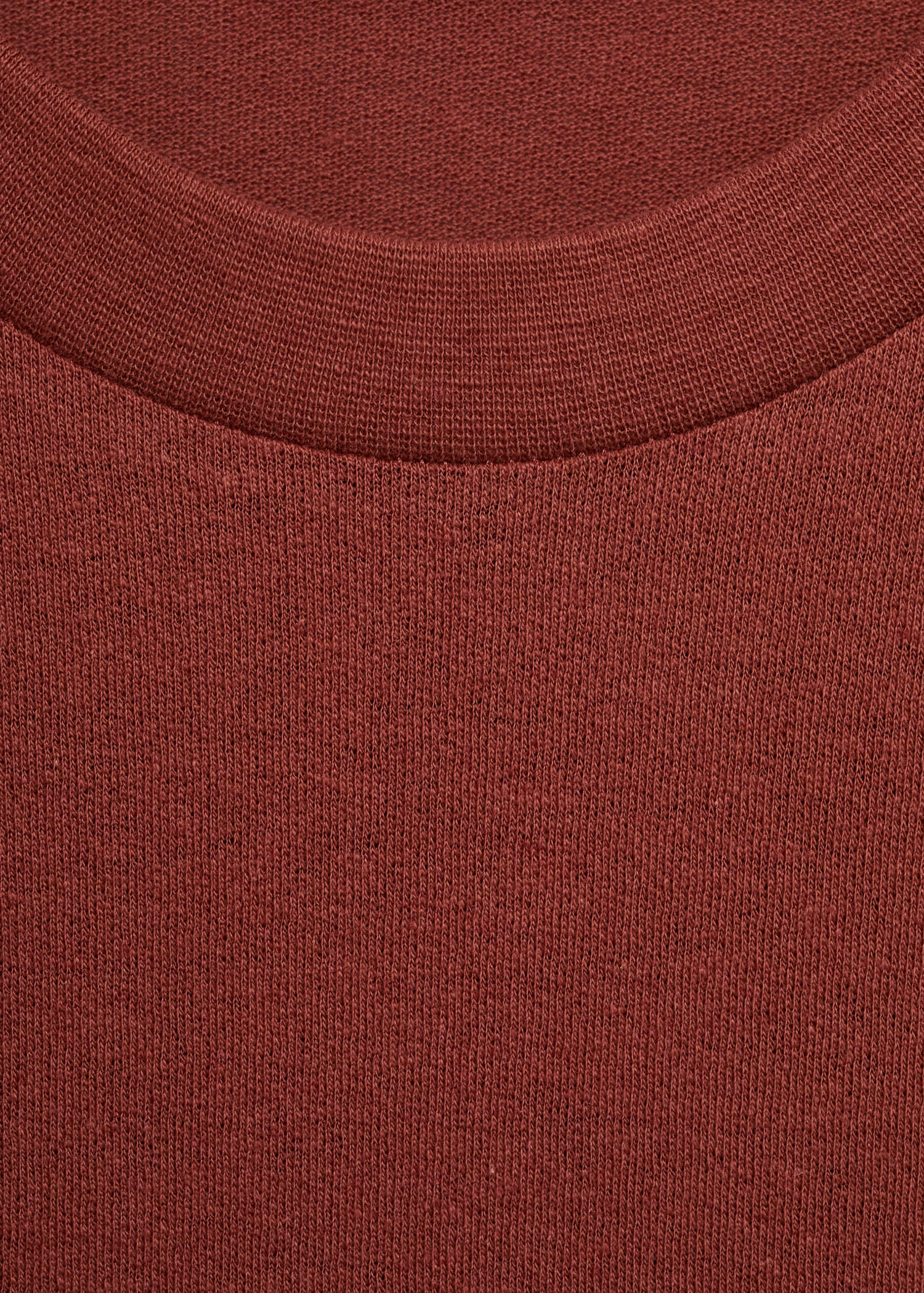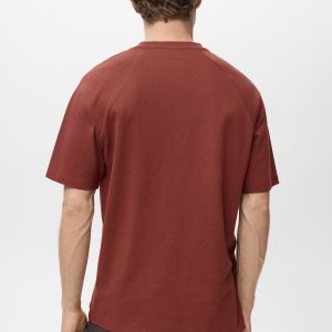 With a relaxed fit, this garment combines cotton and linen to offer comfort. It features a round neck, short sleeves, and seam detailing. The straight hem completes the design. The model is 190 cm tall and is wearing a size M