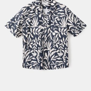 100% cotton fabric. Relaxed fit. Printed design. Shirt collar. Button closure. Short sleeves