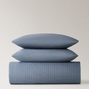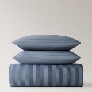 Reversible percale cotton striped duvet cover for 135/140 cm bed