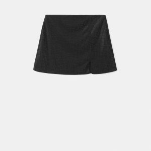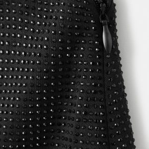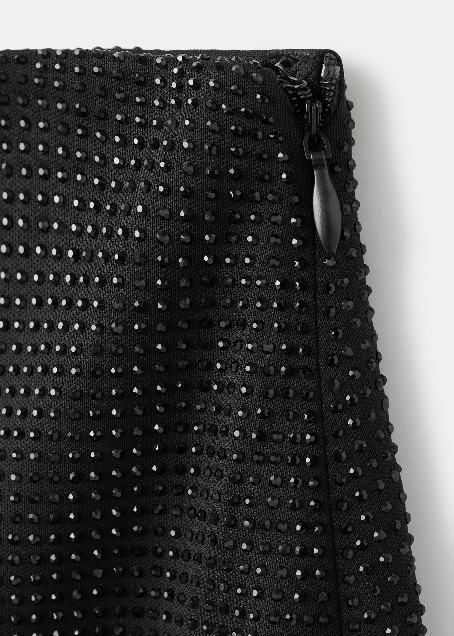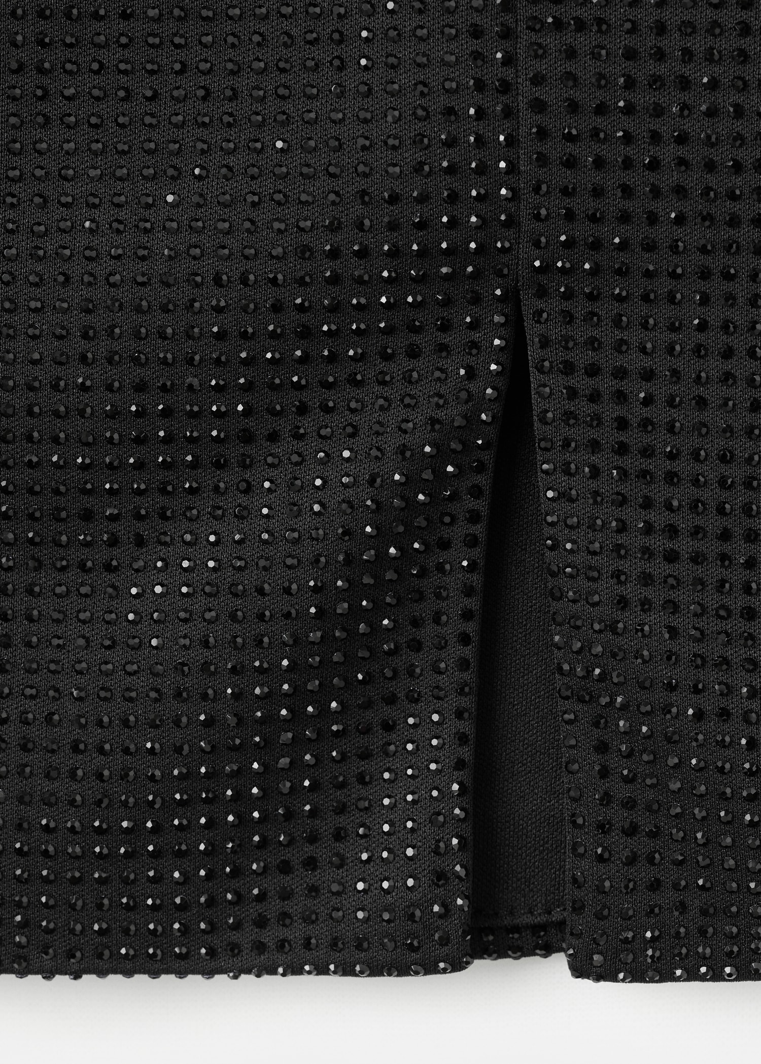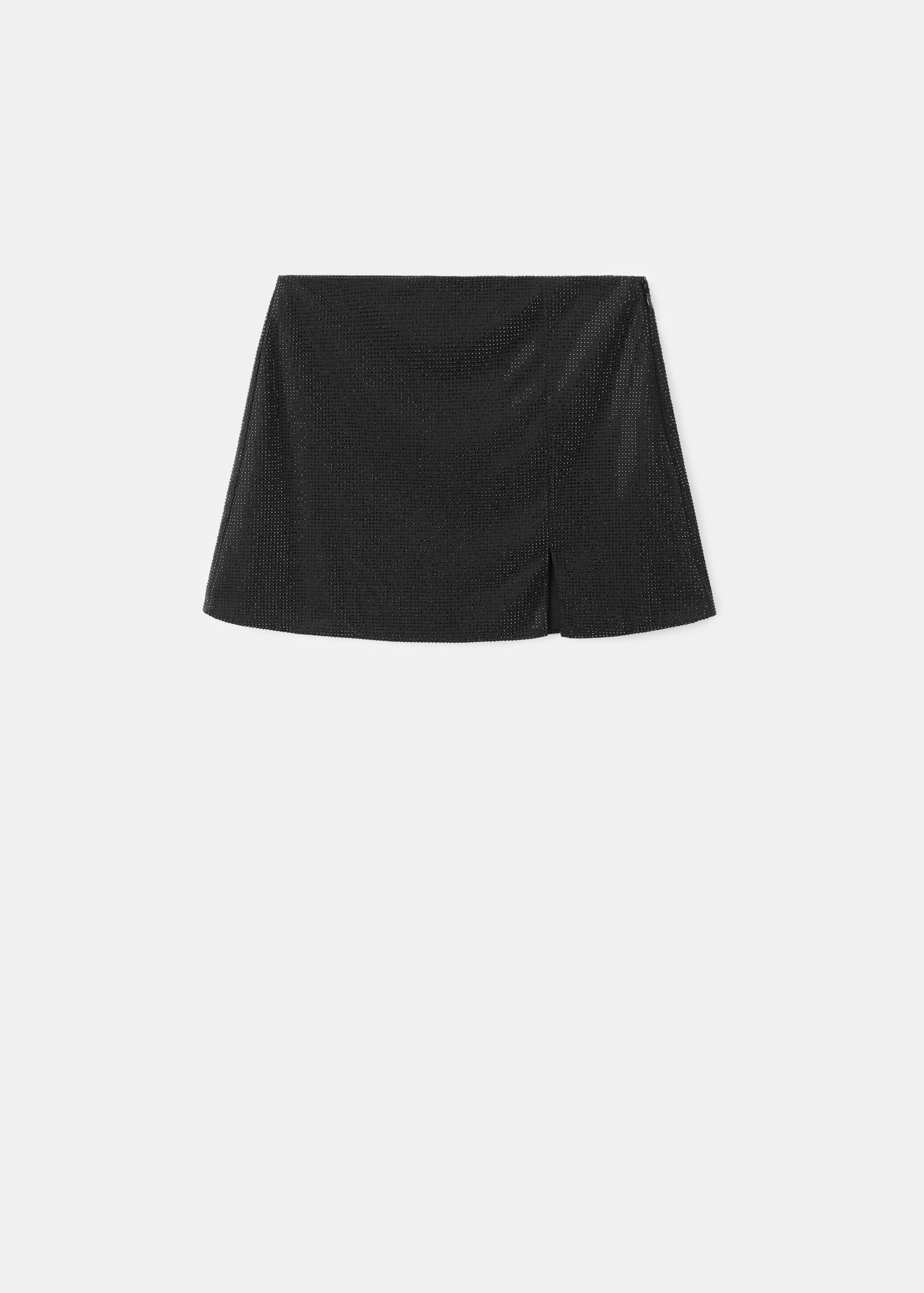 Straight-cut mini-skirt with rhinestone details, ideal for special occasions. It features a side slit at the hem and a side zip fastening. Includes an inner lining. Comes with a matching top. This garment is part of our party and event collection, designed to elevate your looks for special occasions