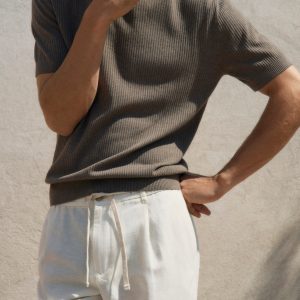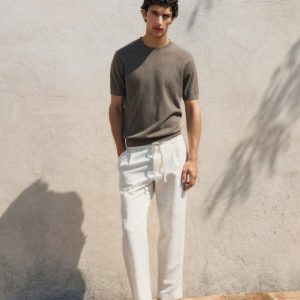 Crafted from viscose, linen and cotton fabric, this garment features a regular fit and a round neck. The chunky-knit fabric is complemented by ribbed finishes on the neck, sleeves and hem. The model is 190 cm tall and is wearing a size M
