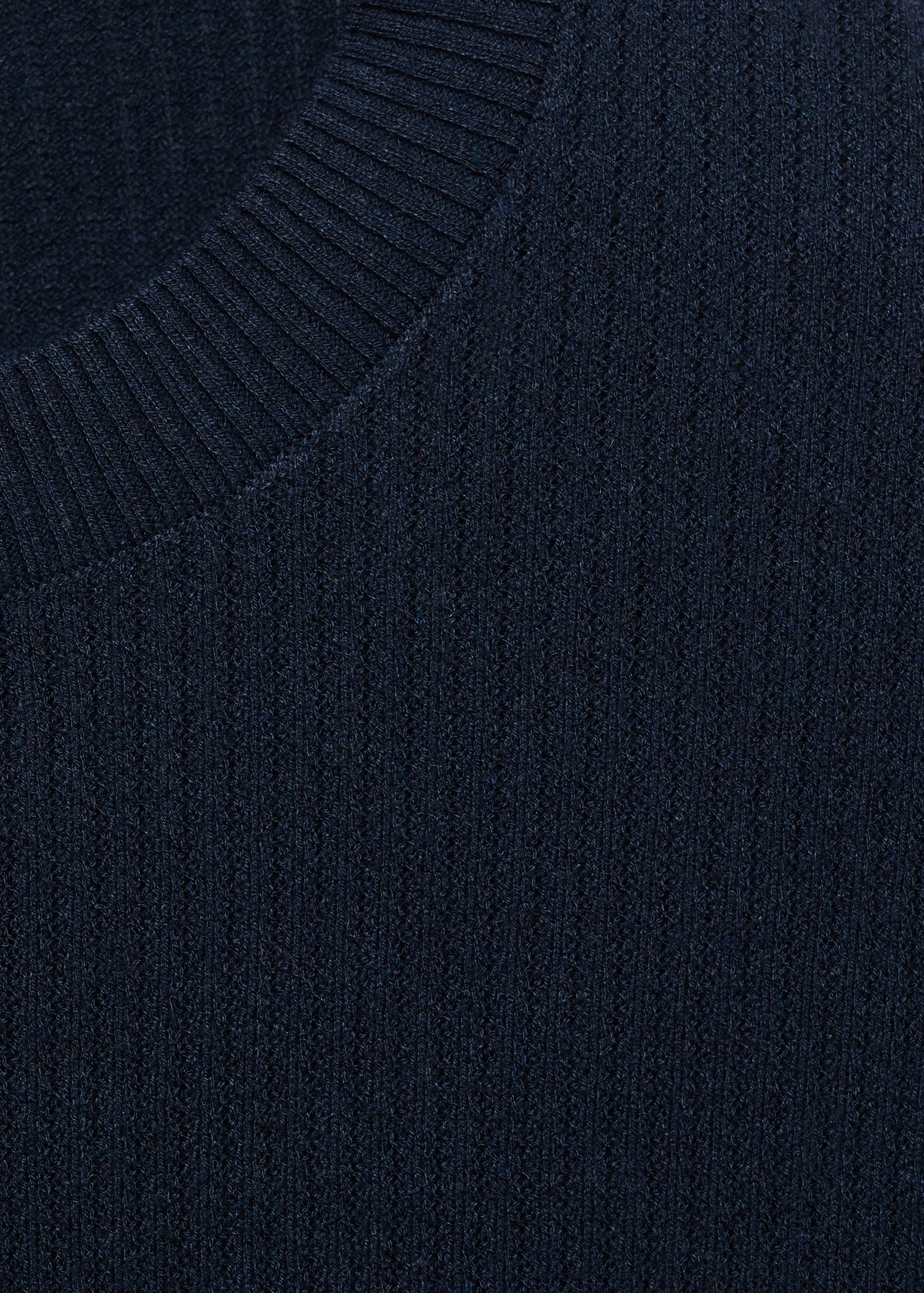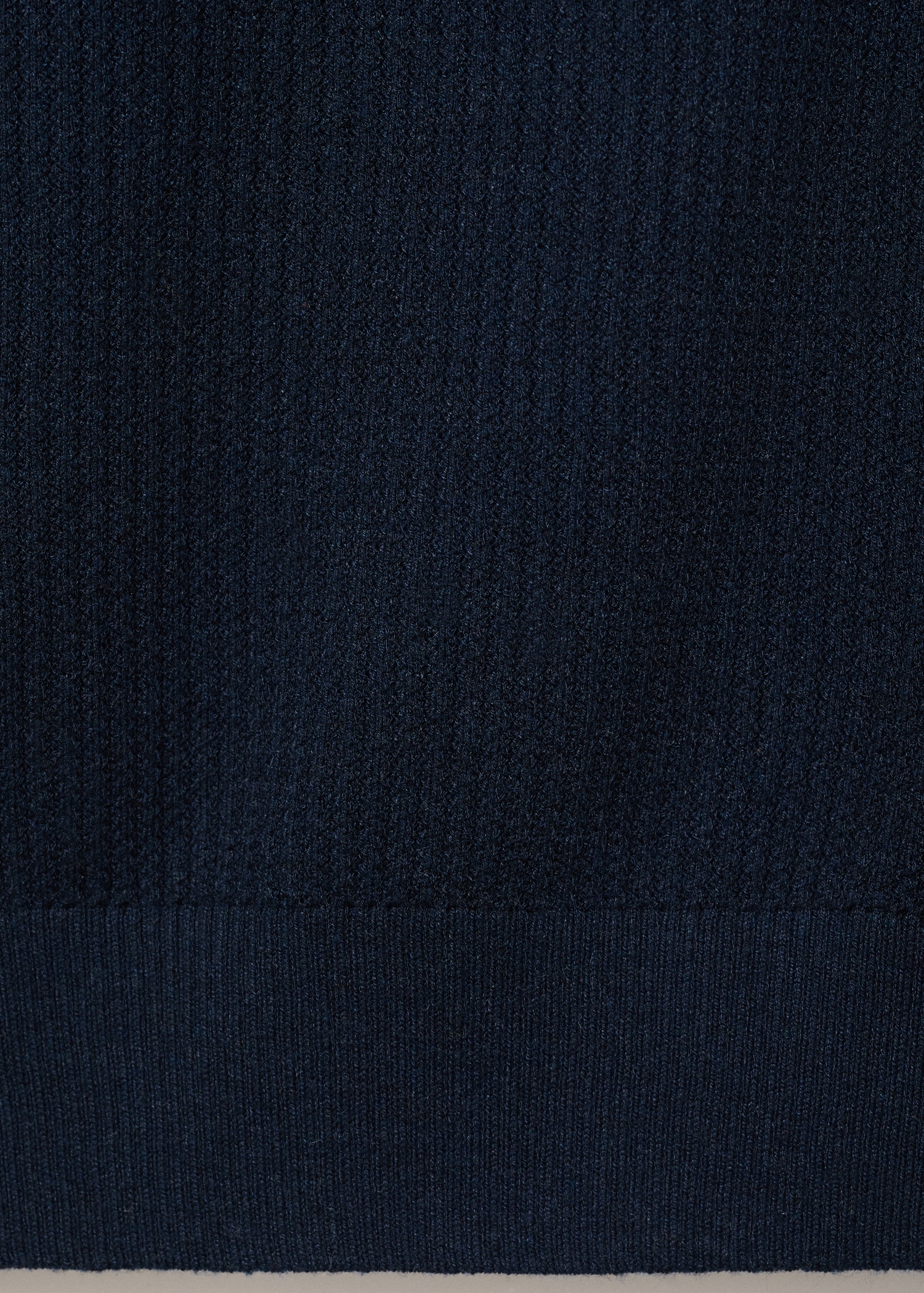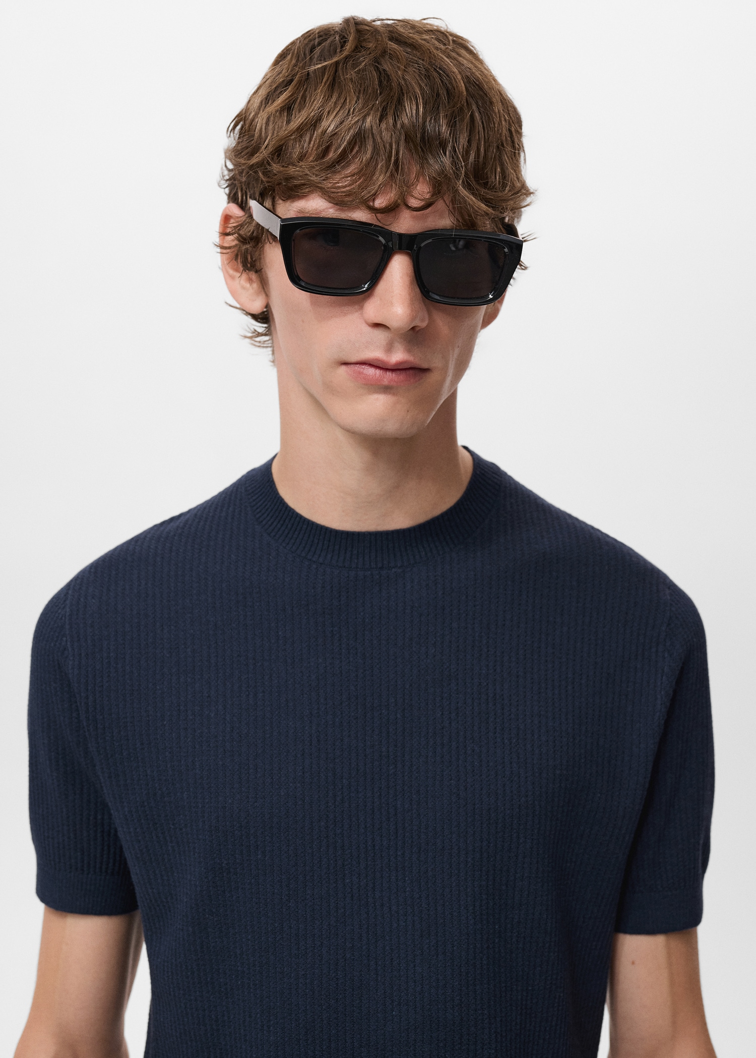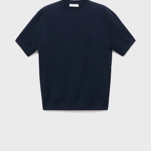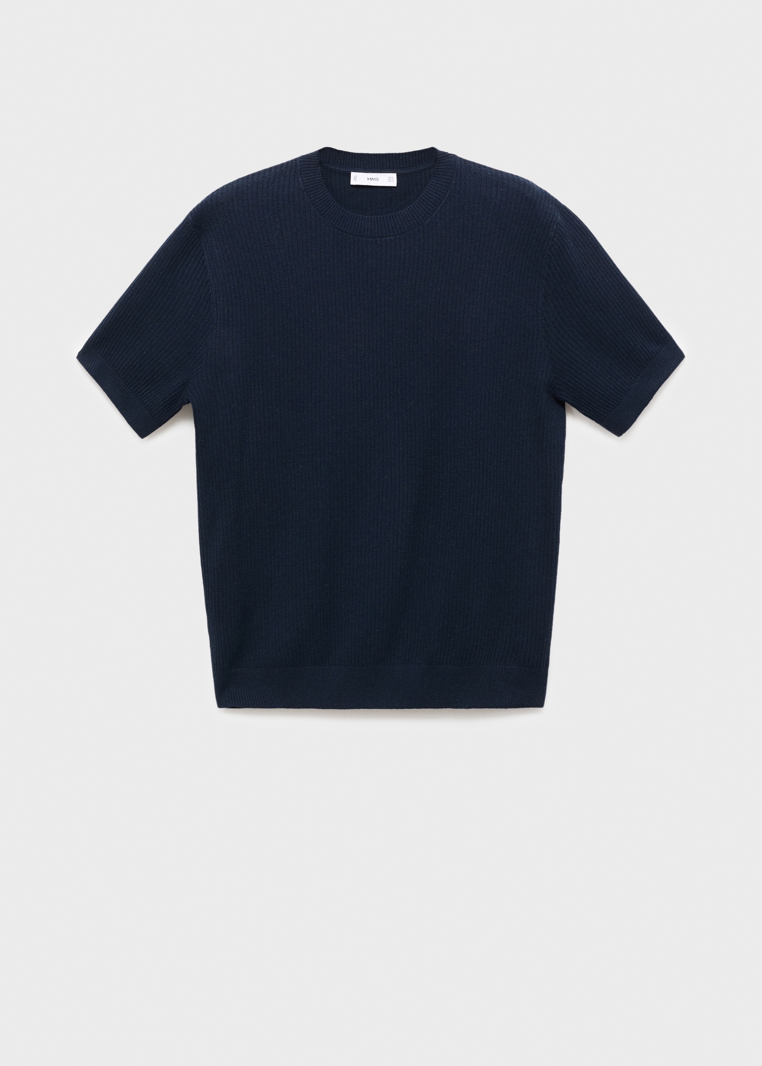 Viscose, linen and cotton fabric. Straight Design. Crew neck. Ribbed collar, sleeves and hem. Short sleeve