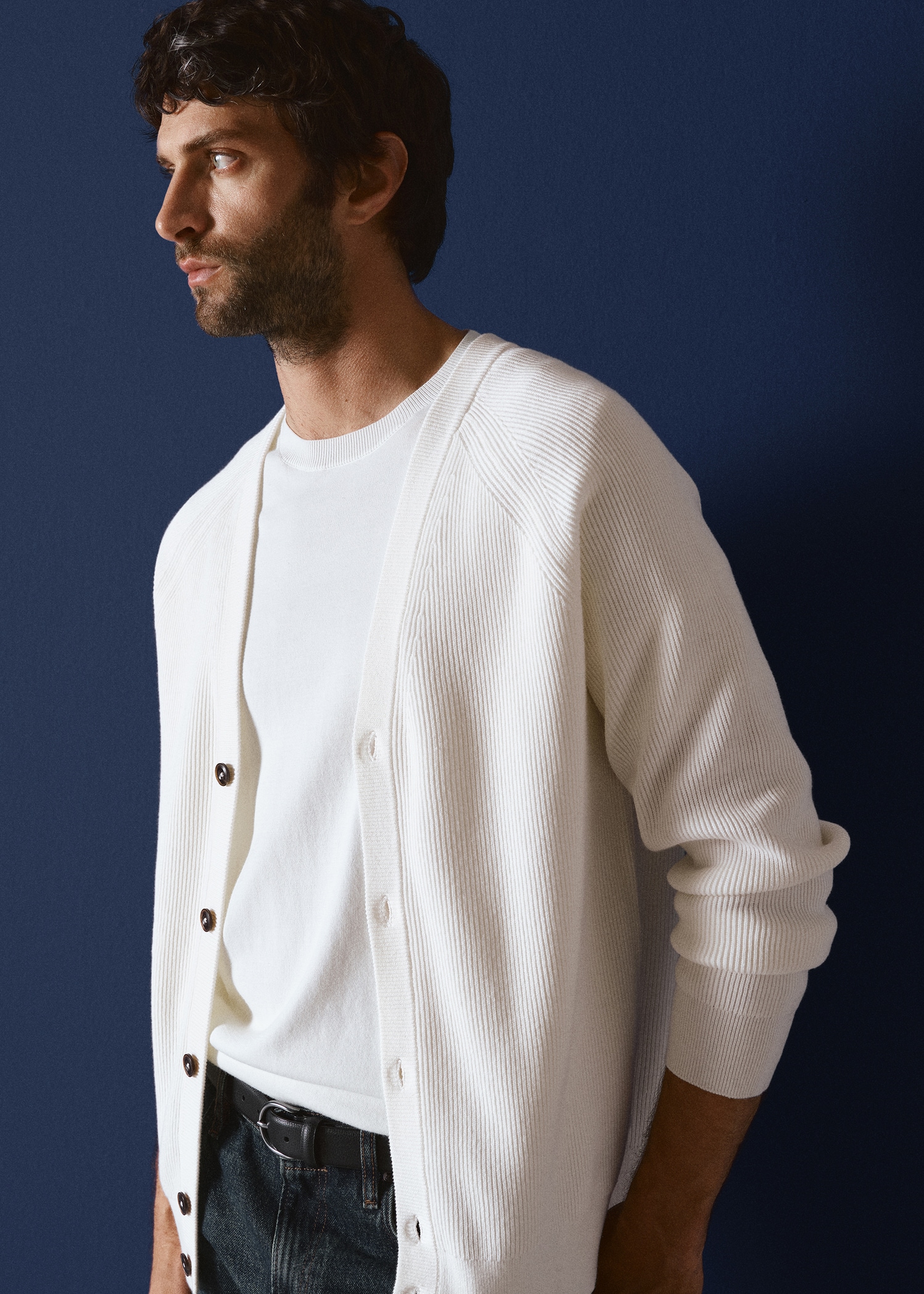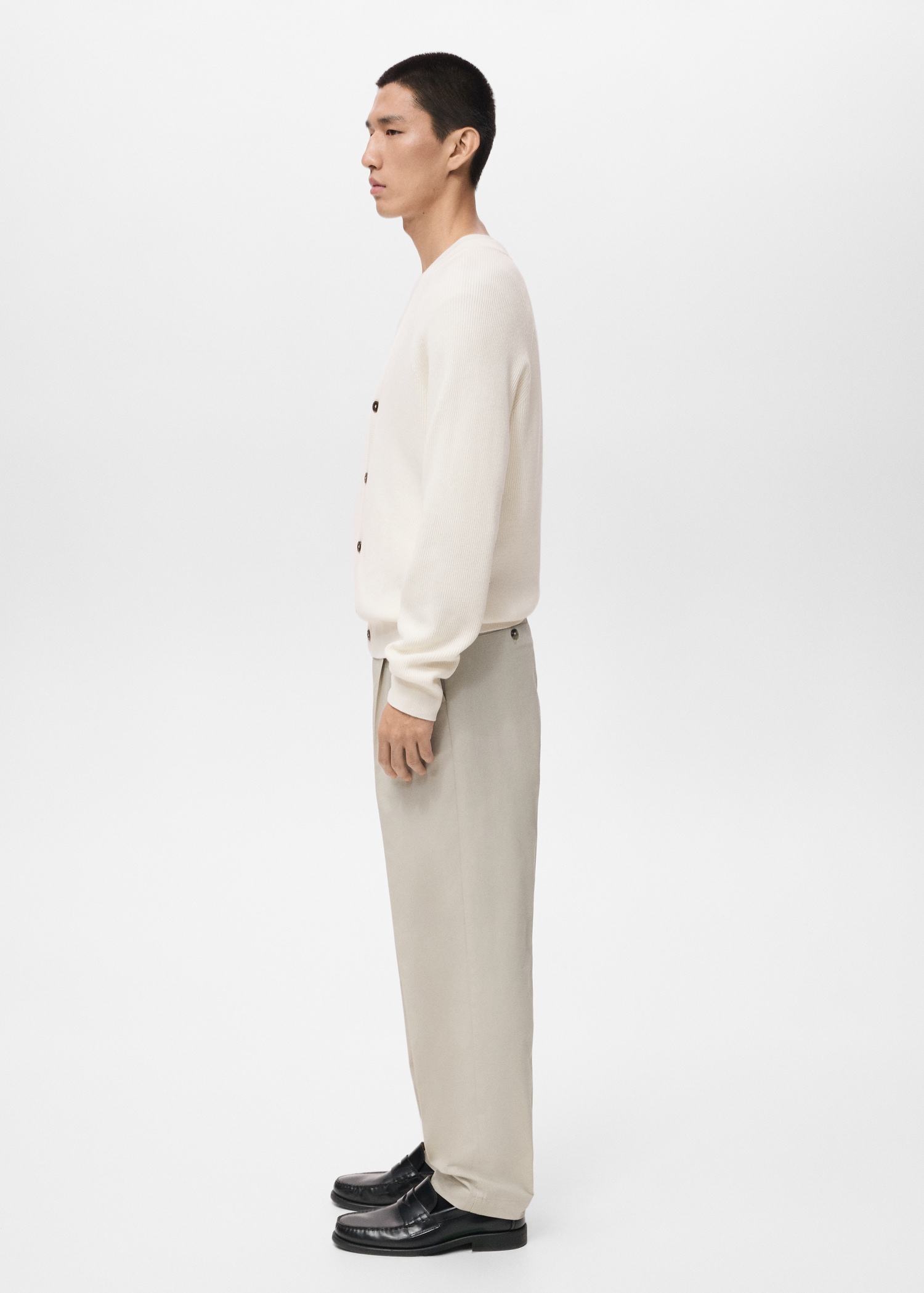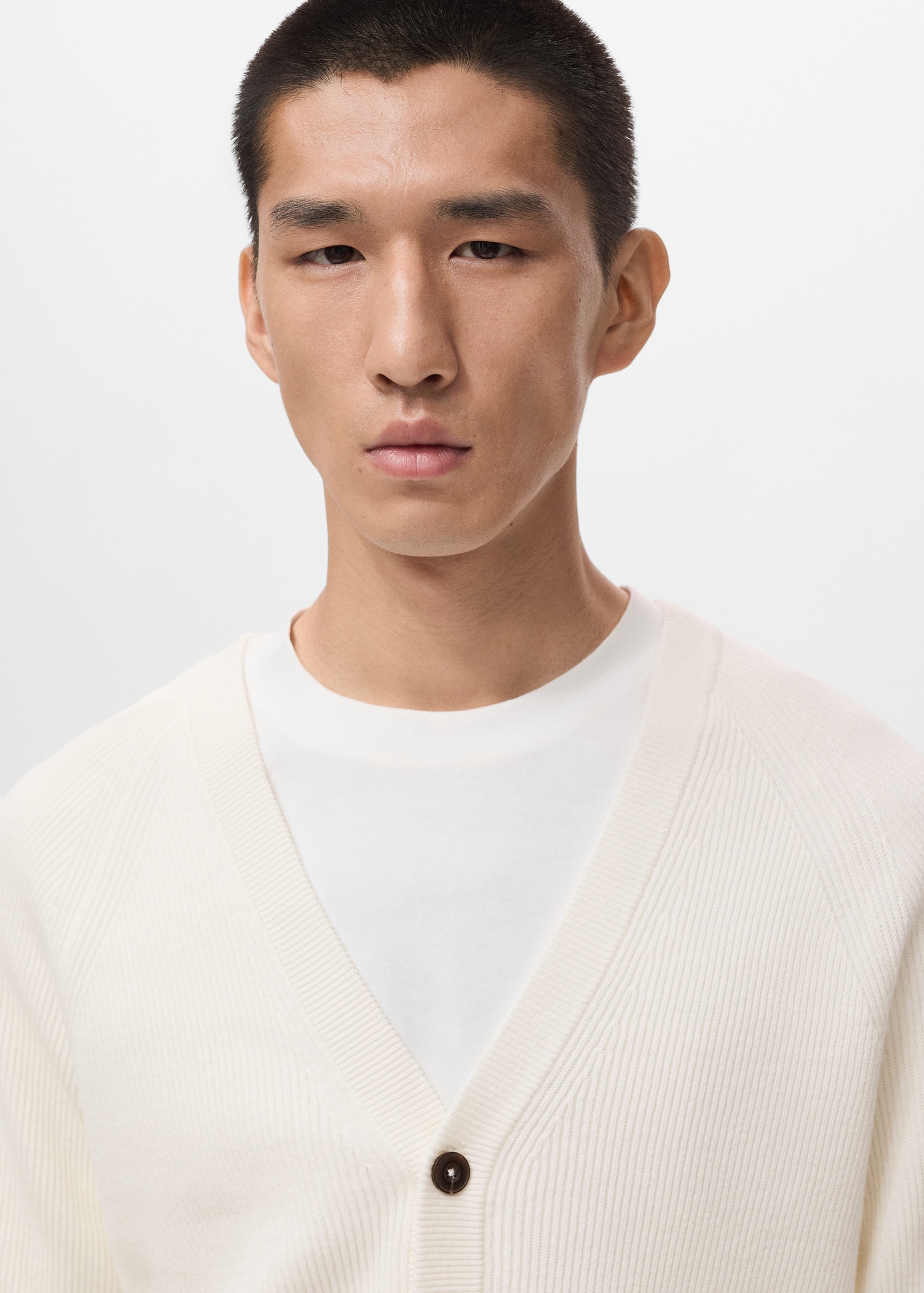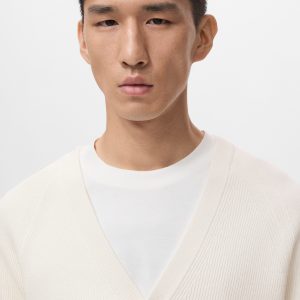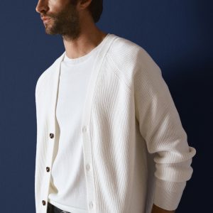 Online Exclusive. Cotton fabric. Cable knit fabric. Straight silhouette. Long sleeves with elastic cuffs. Front button closure. Straight hem. ESSENTIALS: Made to last. We have strengthened our quality standards by adding new endurance tests to our garments. Designed with careful consideration of their construction, they are even more durable, versatile and timeless