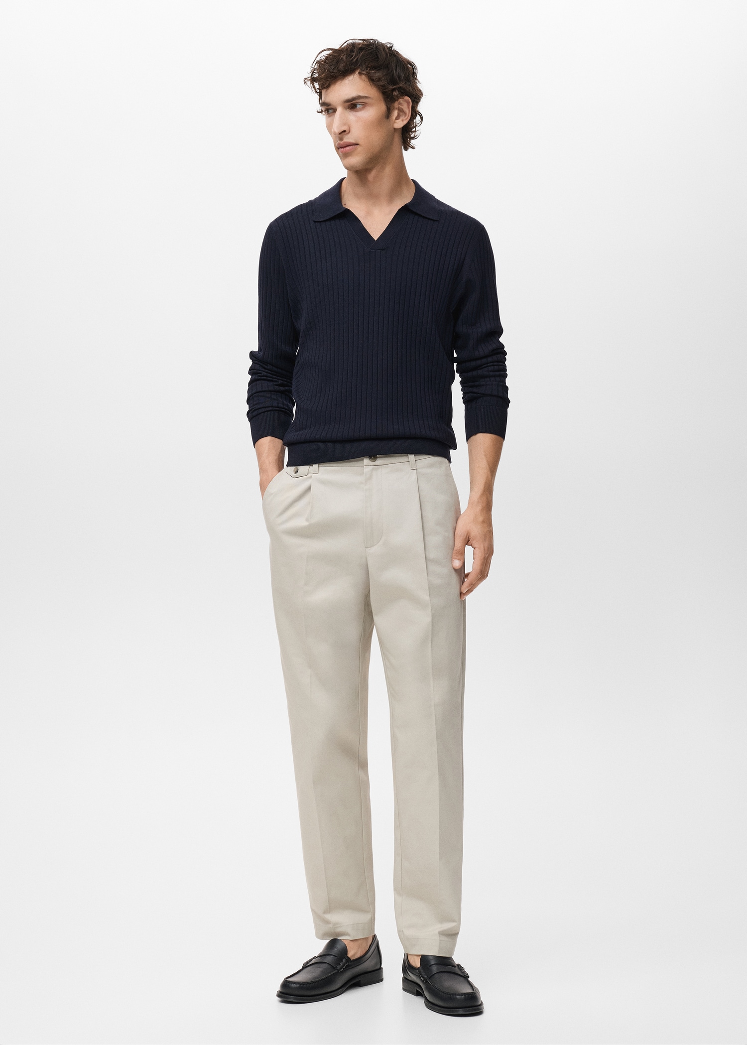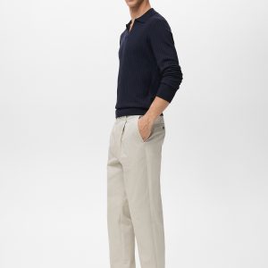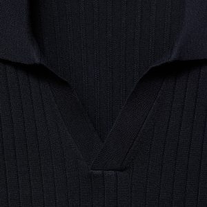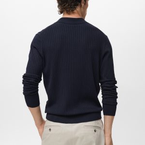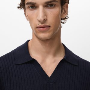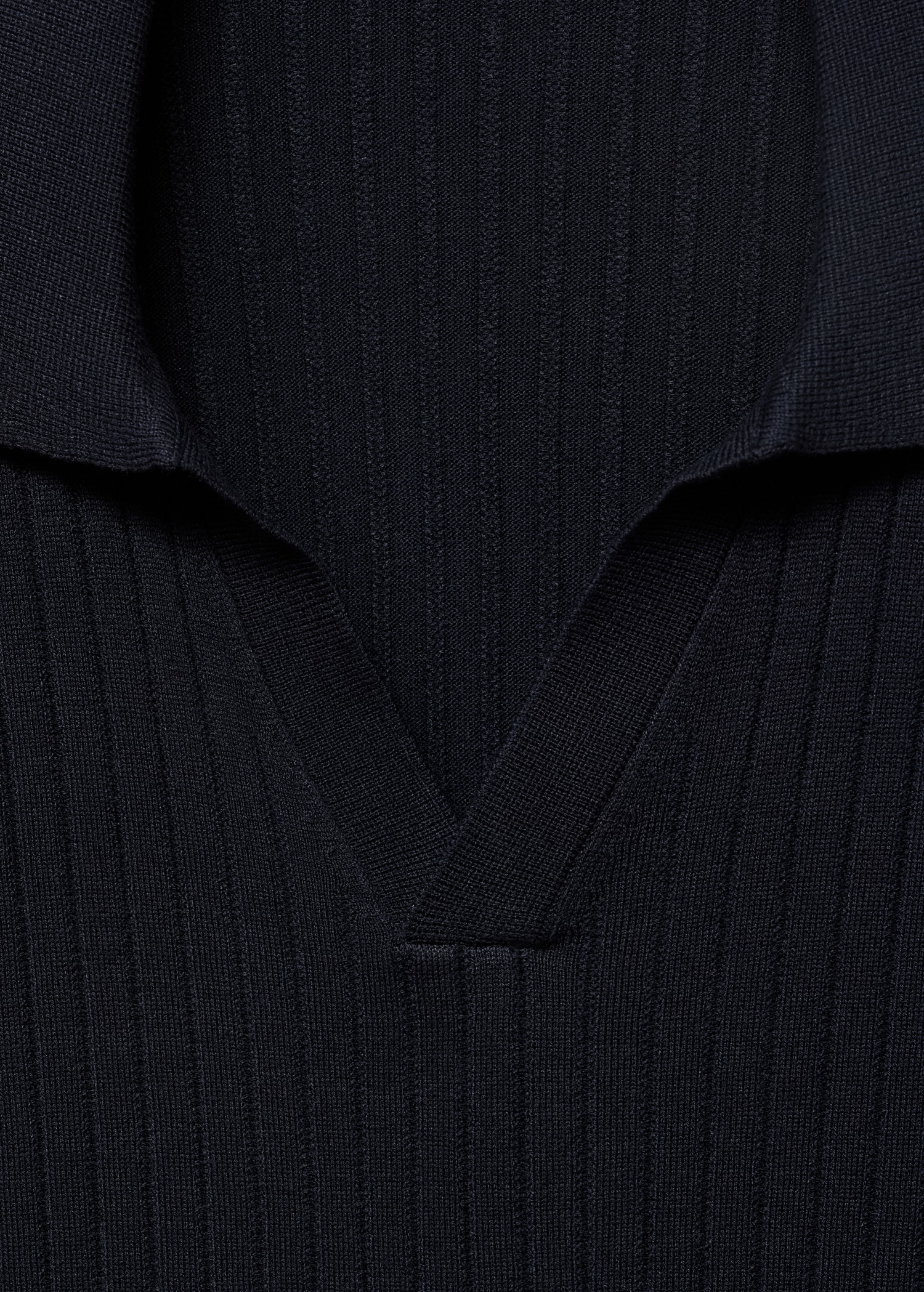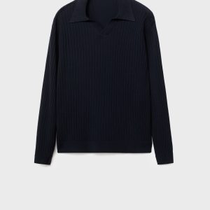 White color is exclusive online. Straight silhouette. Viscose-blend fabric. Ribbed design. Polo shirt with buttonless collar. Ribbed neck, cuffs, and hem. Long Sleeve
