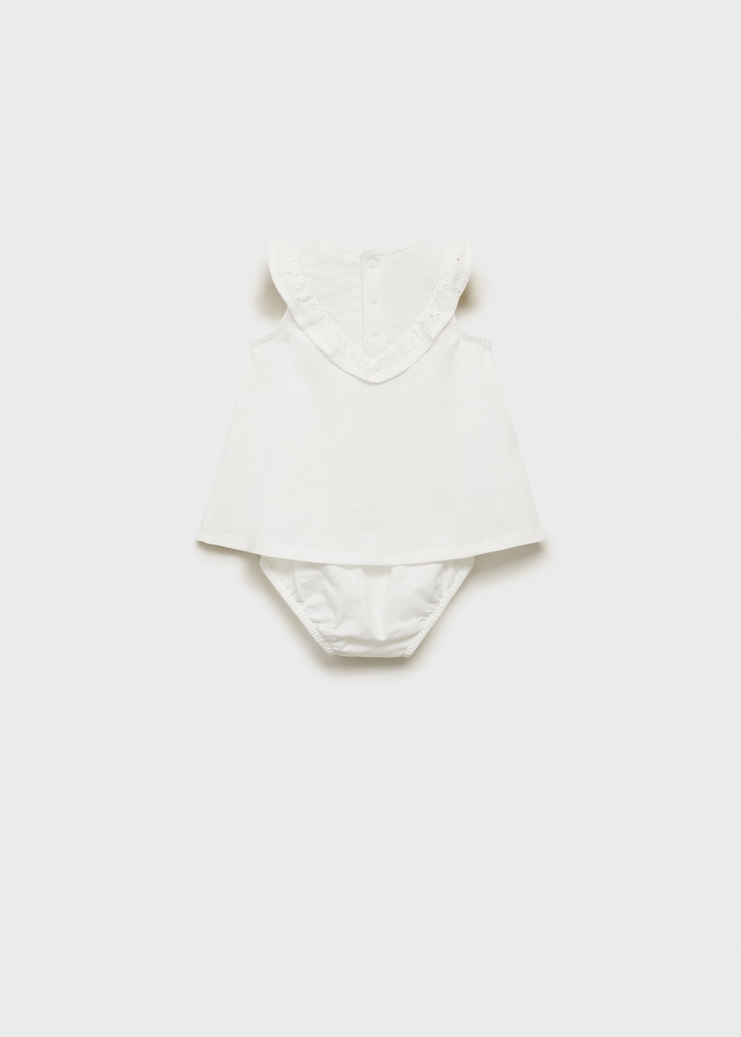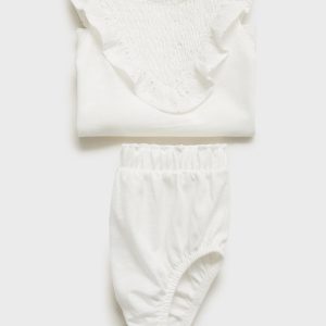 100% cotton fabric. Gathered detail. Frill detail. Back closure. Popper fastening. Maternity Collection. Set