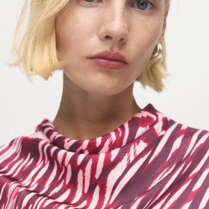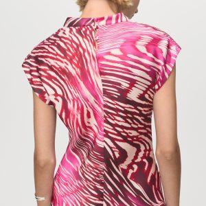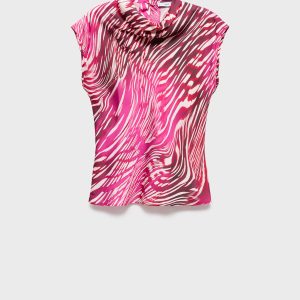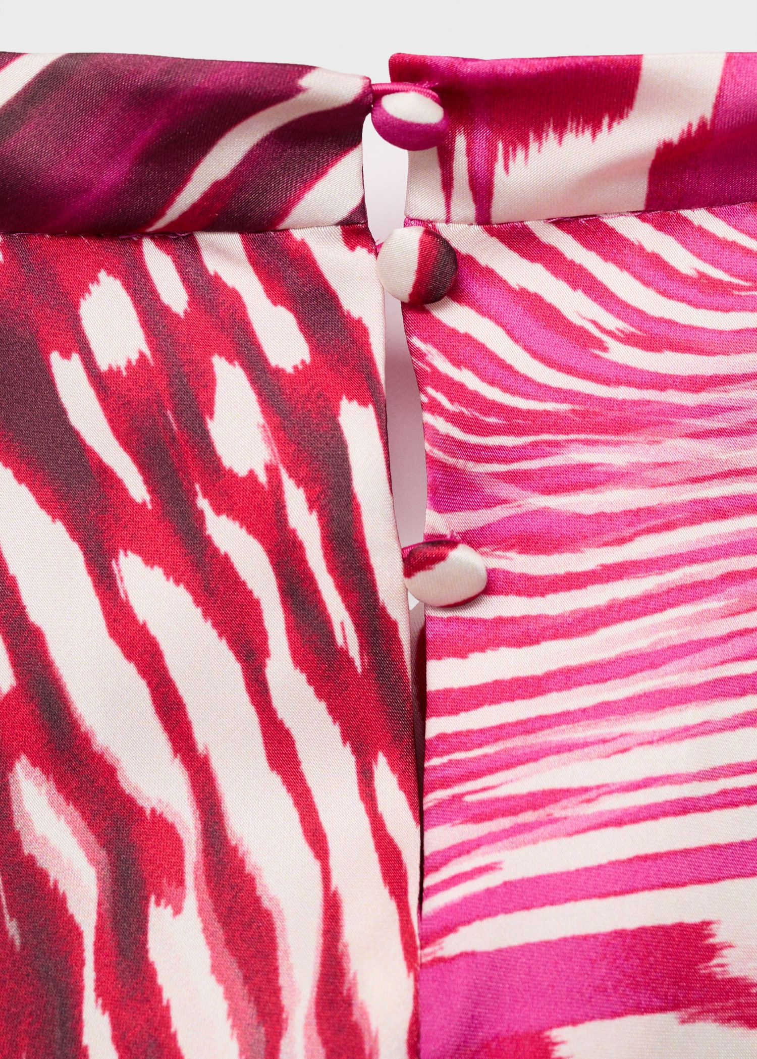 Crafted from satin fabric, this garment features a straight design and print. It has a draped neckline and short sleeves, complemented by a button fastening at the neck. This piece is part of our event collection, designed to make you the perfect guest at any party, wedding or ceremony