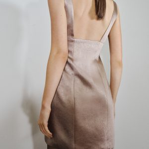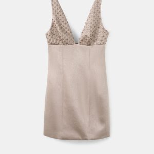 Satin weave. Wrinkled effect. Short design. Fitted design. V-neckline. Sleeveless. Wide straps. Sequin detail. Back zipper closure. Inner lining. This garment is part of our party and event collection, designed to elevate your looks for special occasions.