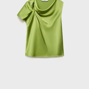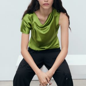 Crafted from fabric with a satin finish, this garment features a straight design with a round neckline and sleeveless cut. A gathered detail on one shoulder adds a special touch. No fastening. Part of our event collection, ideal for any party, wedding or ceremony.