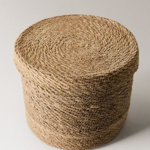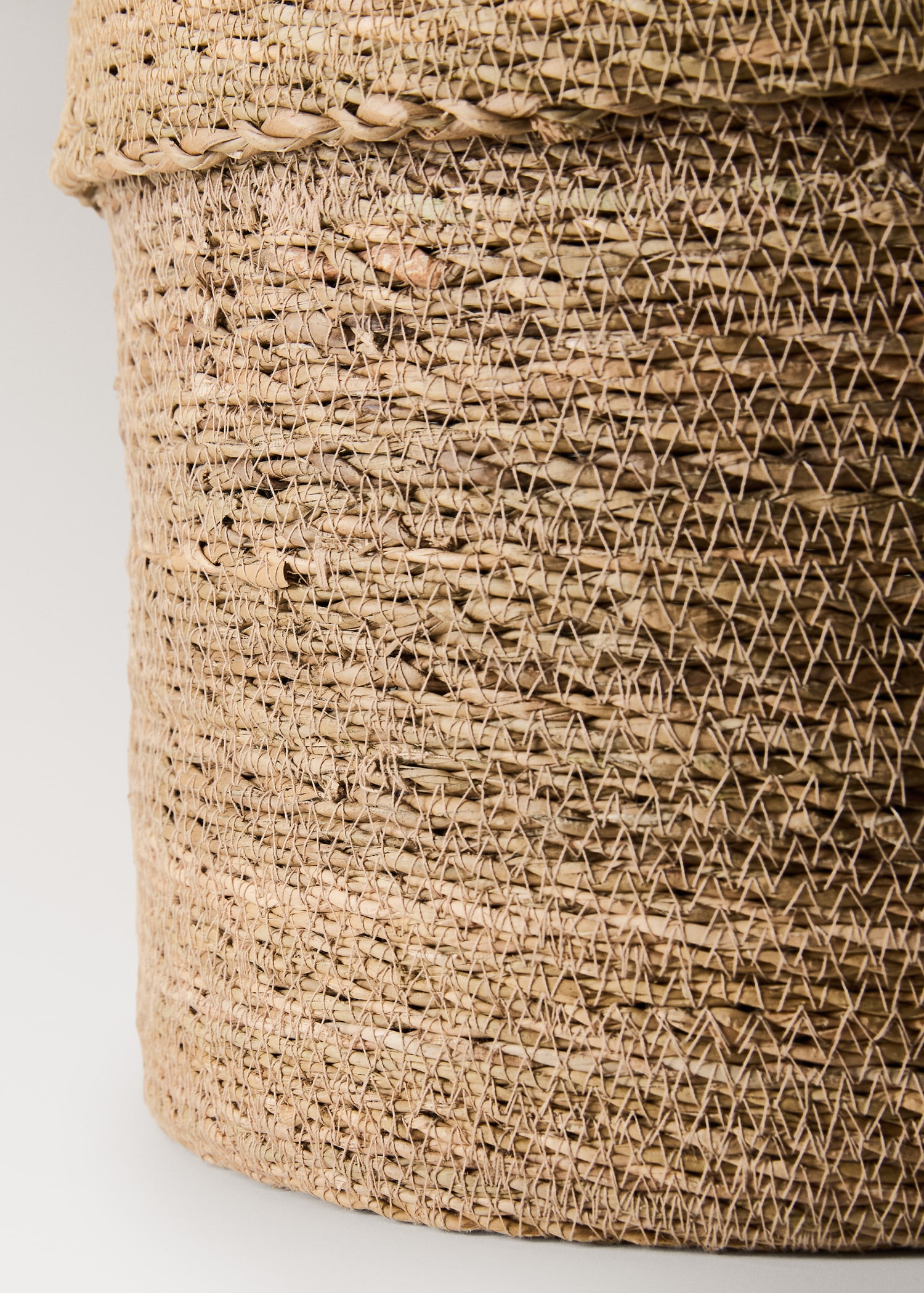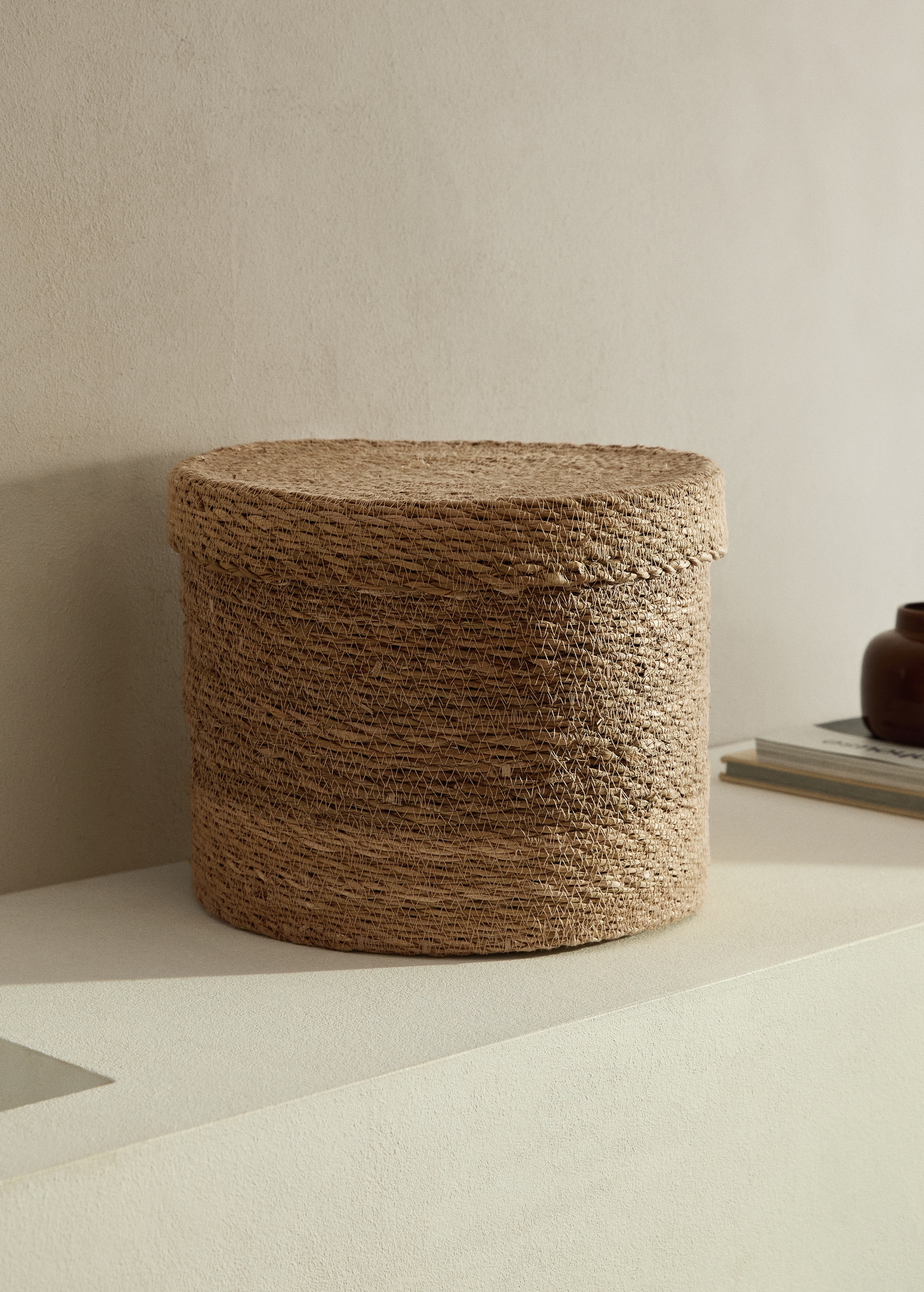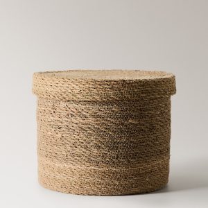 100% cattail. Size: 32 x 32 x 26 cm. Round design. With lid. Perfect for storage or as a decorative element. 12.6×10.24×12.6 in (Length x Height x Width)
