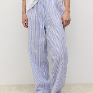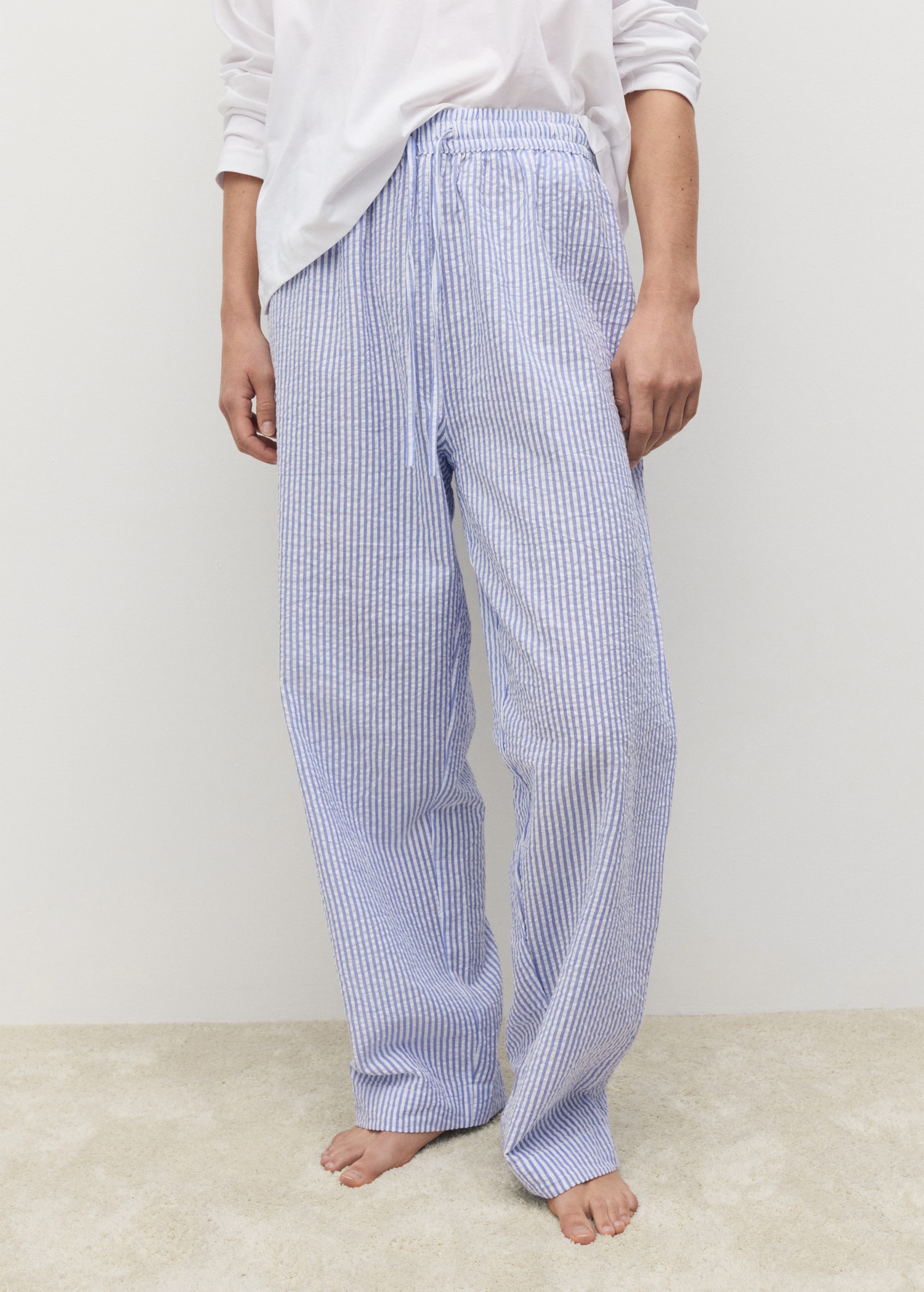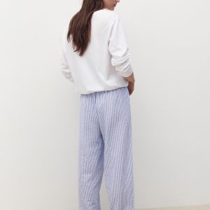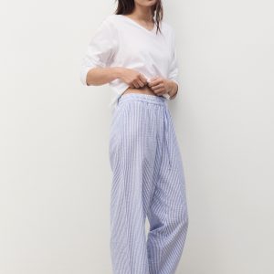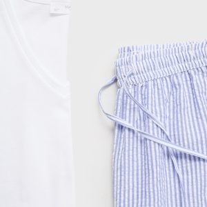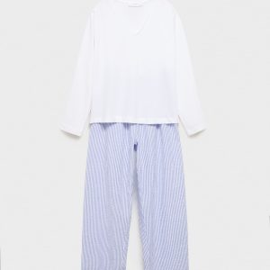 T-shirt and pajama pants set. 100% Cotton. Straight Design. Long design. Long Sleeve. Striped print. Crew neck. Elastic waistband. Adjustable drawstring. Available in various colors