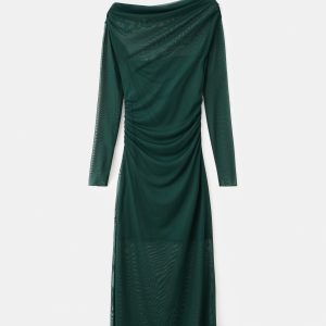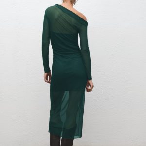 Semi-transparent fabric. Midi design. Fitted design. Asymmetric neckline. Long Sleeve. No closure. Inner lining. This garment is part of our party and event collection, designed to elevate your looks for special occasions.