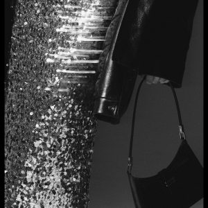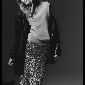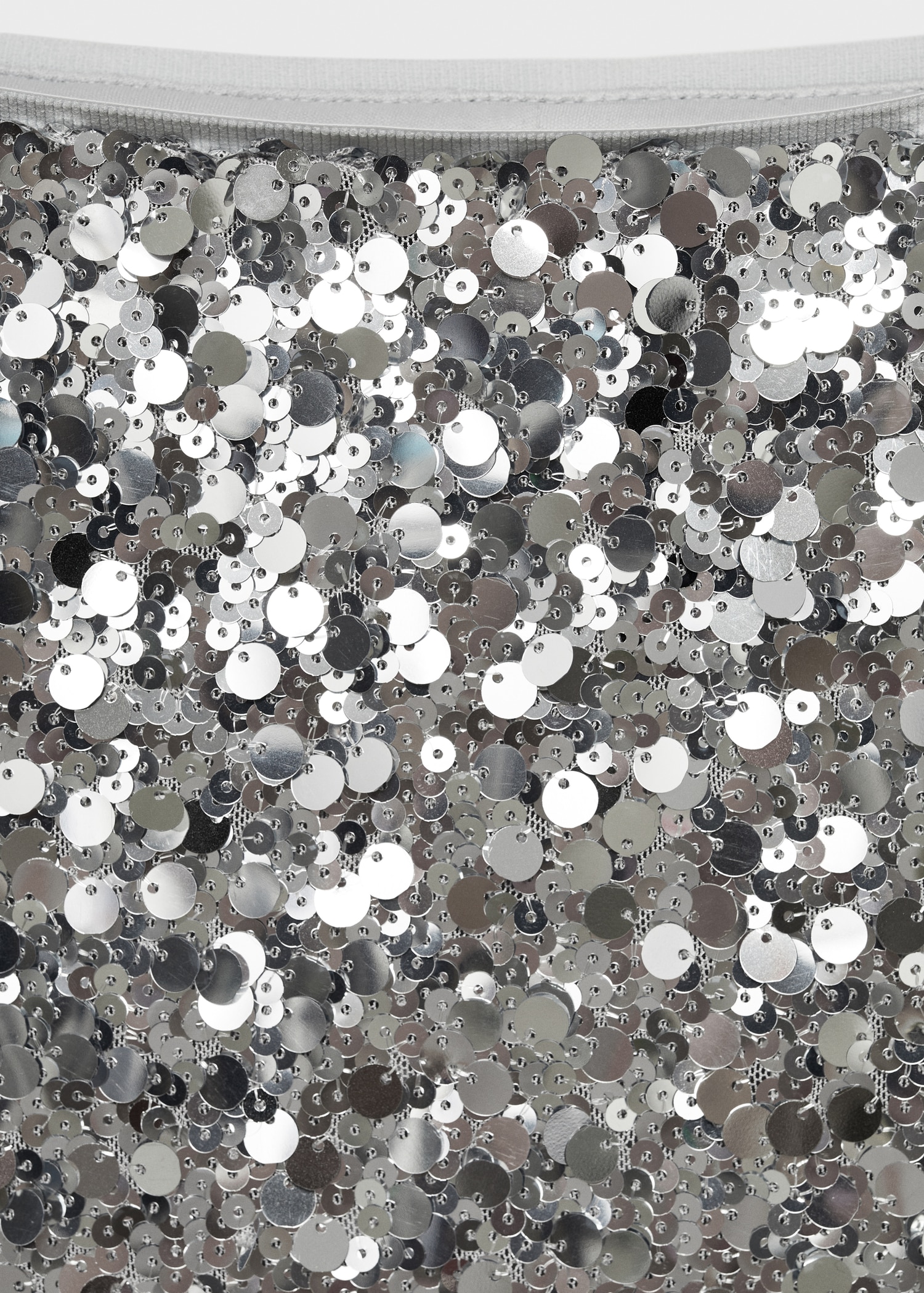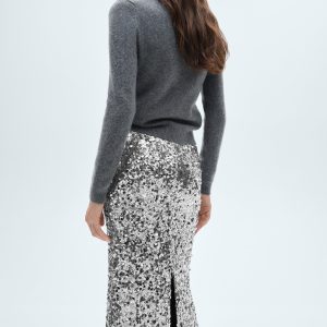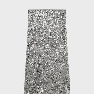 Sequin fabric. Midi design. Straight Design. Invisible lateral zipper fastening. Inner lining. Party and ceremony collection
