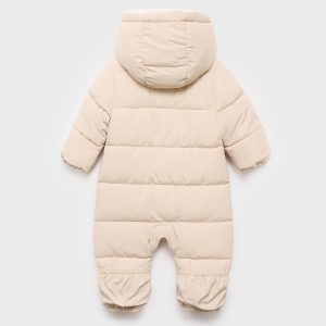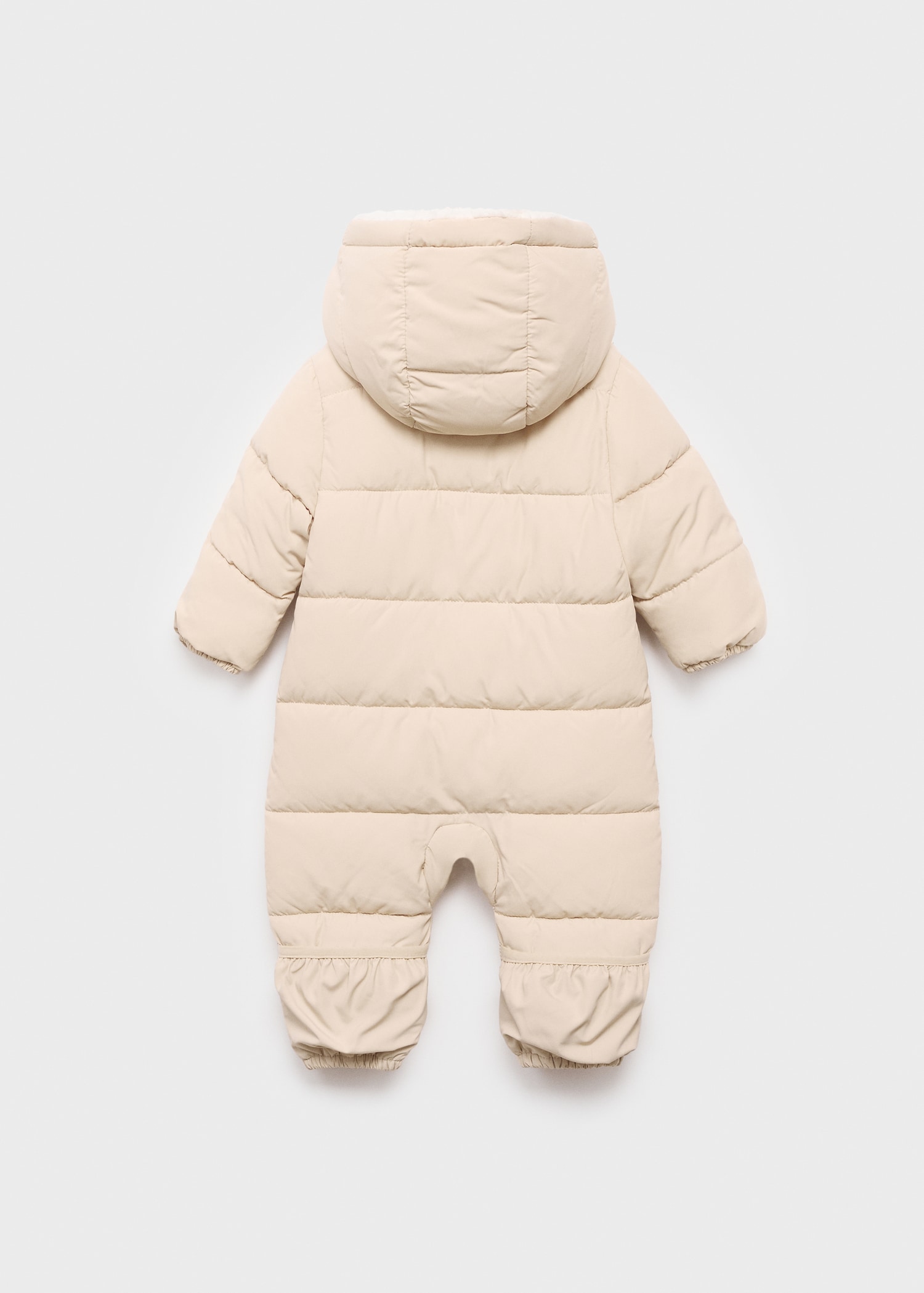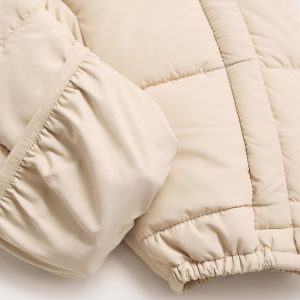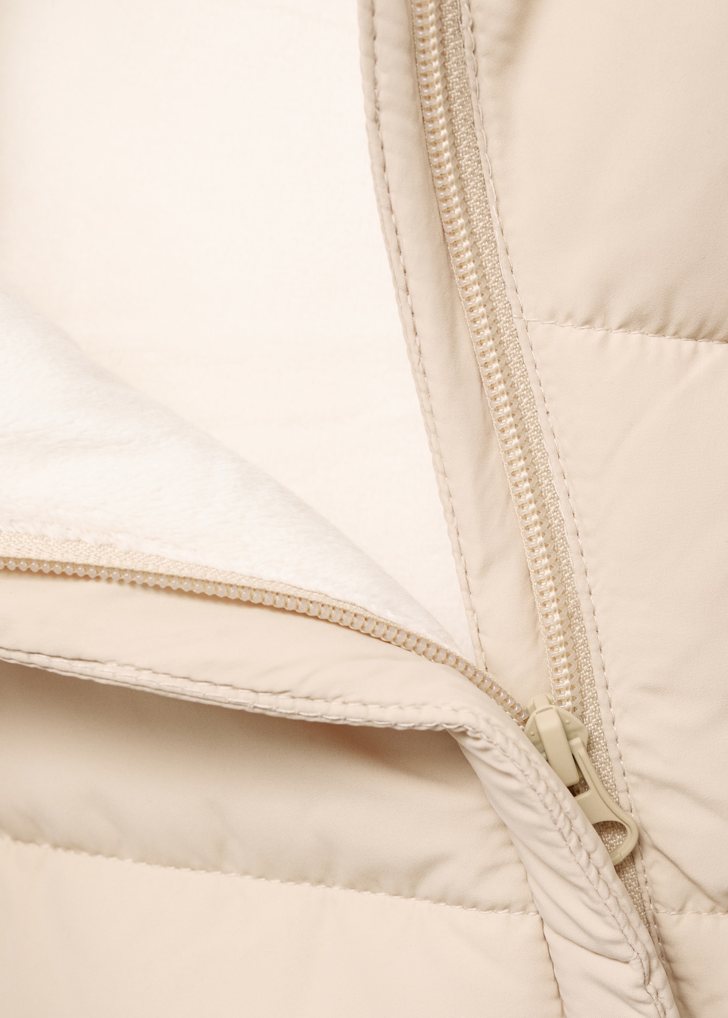Quilted design. Long design. Crew neck. Hood with synthetic hair detail. Long Sleeve. Invisible front zipper fastening. Inner polar fleece lining