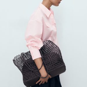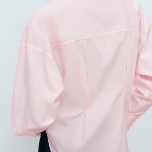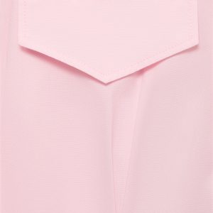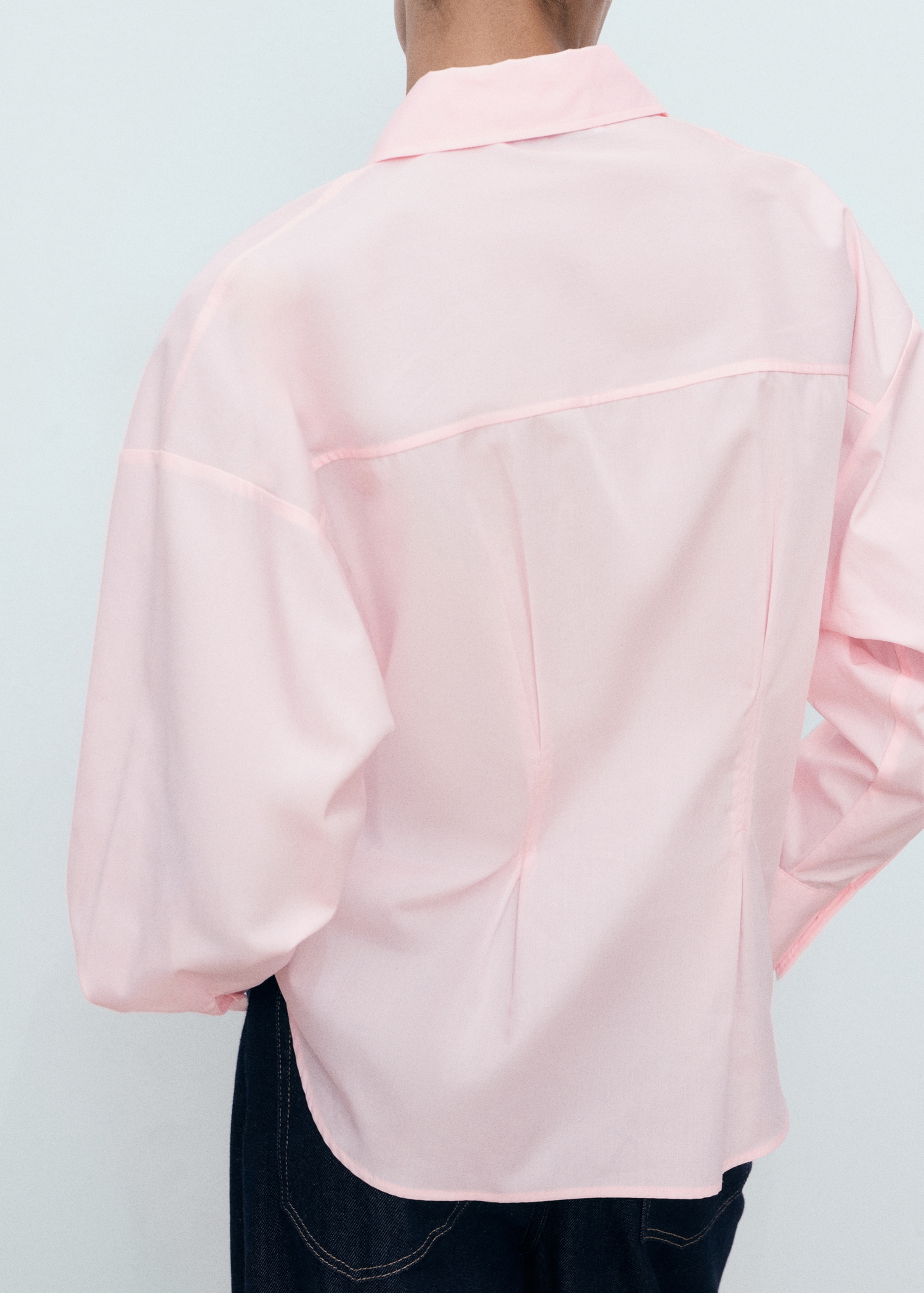Crafted from a cotton blend fabric, this garment features an oversized design with a shirt collar and long sleeves. It includes pleat detailing, two flap pockets, and a front button closure