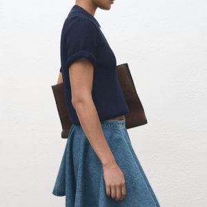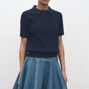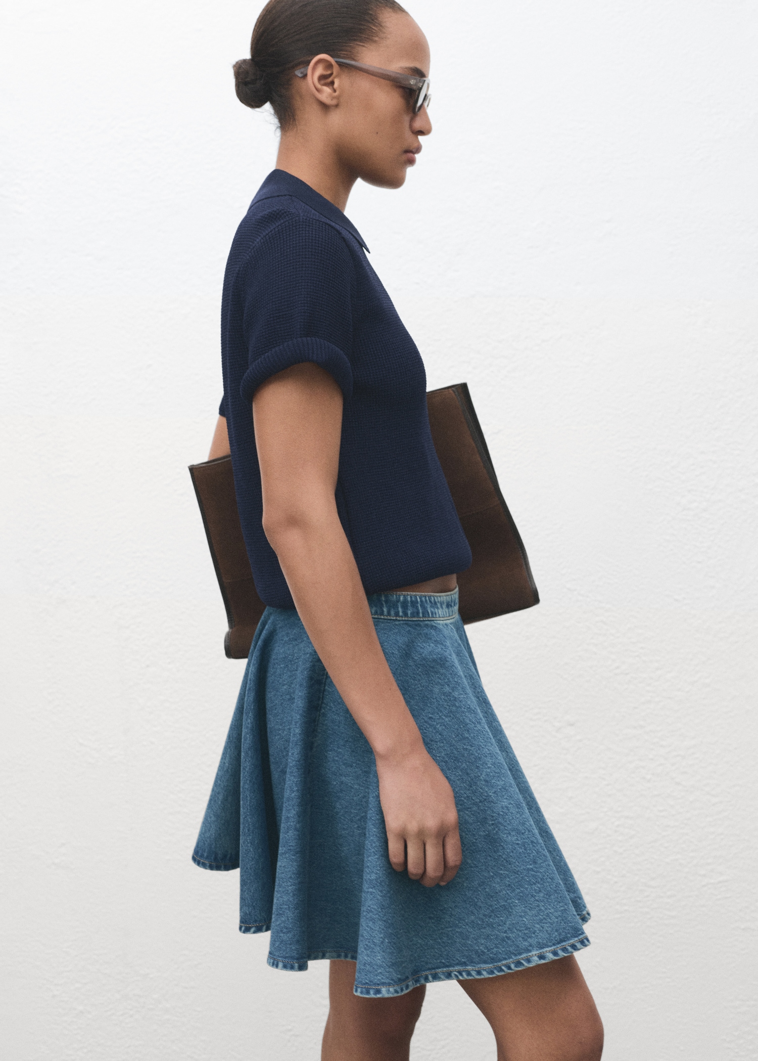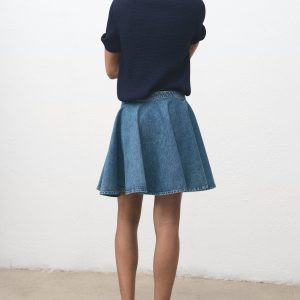 Crafted from denim-style cotton fabric, this skirt features a short design with a mid-rise fit. The zipper fastening at the back ensures a comfortable and practical fit