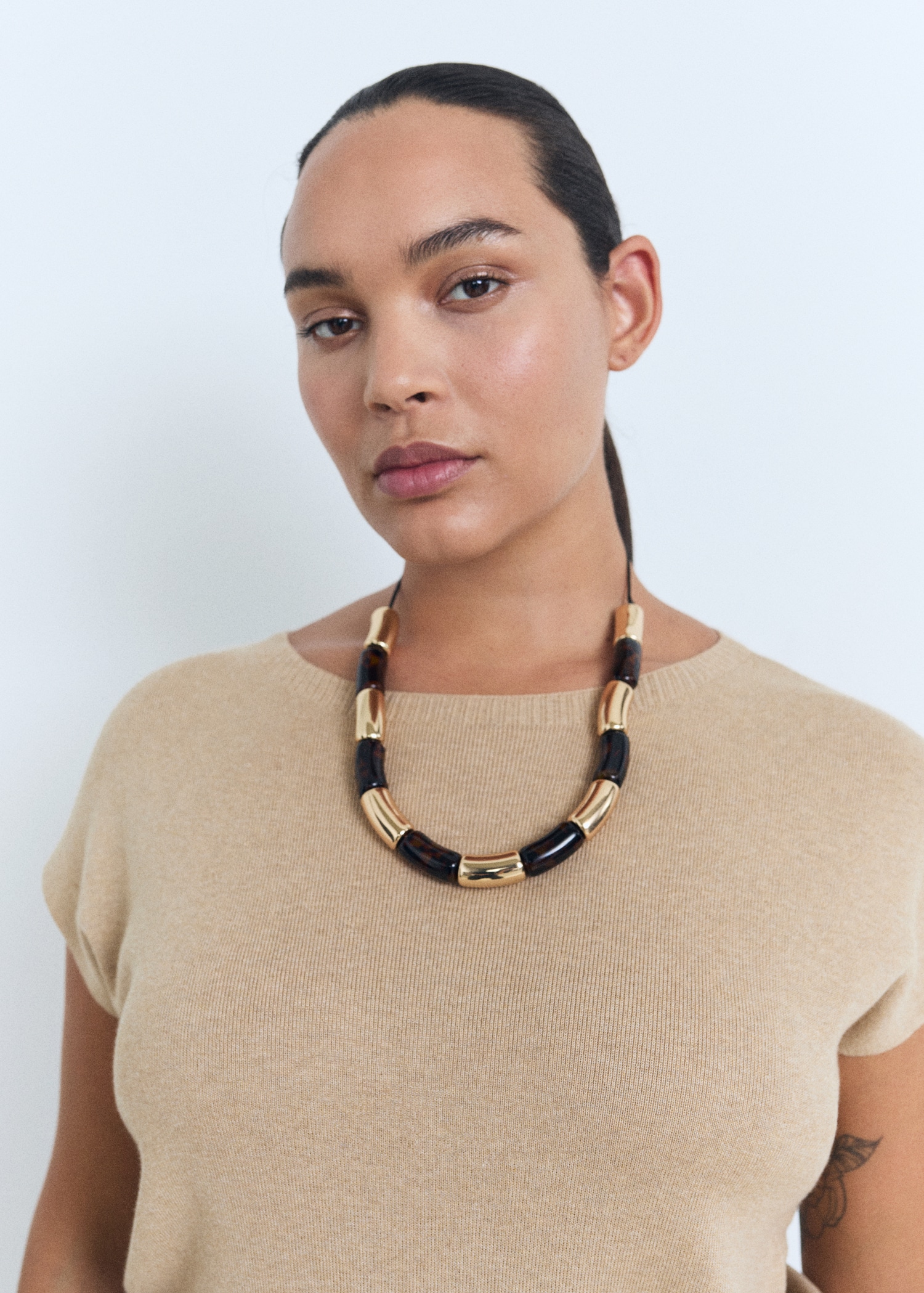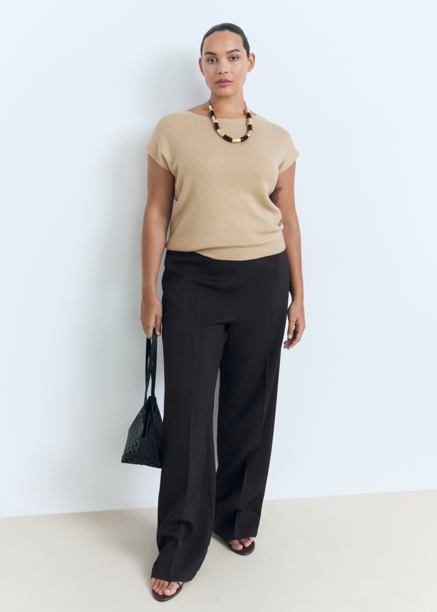 Short-sleeved fine-knit sweater
