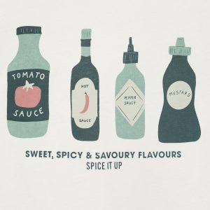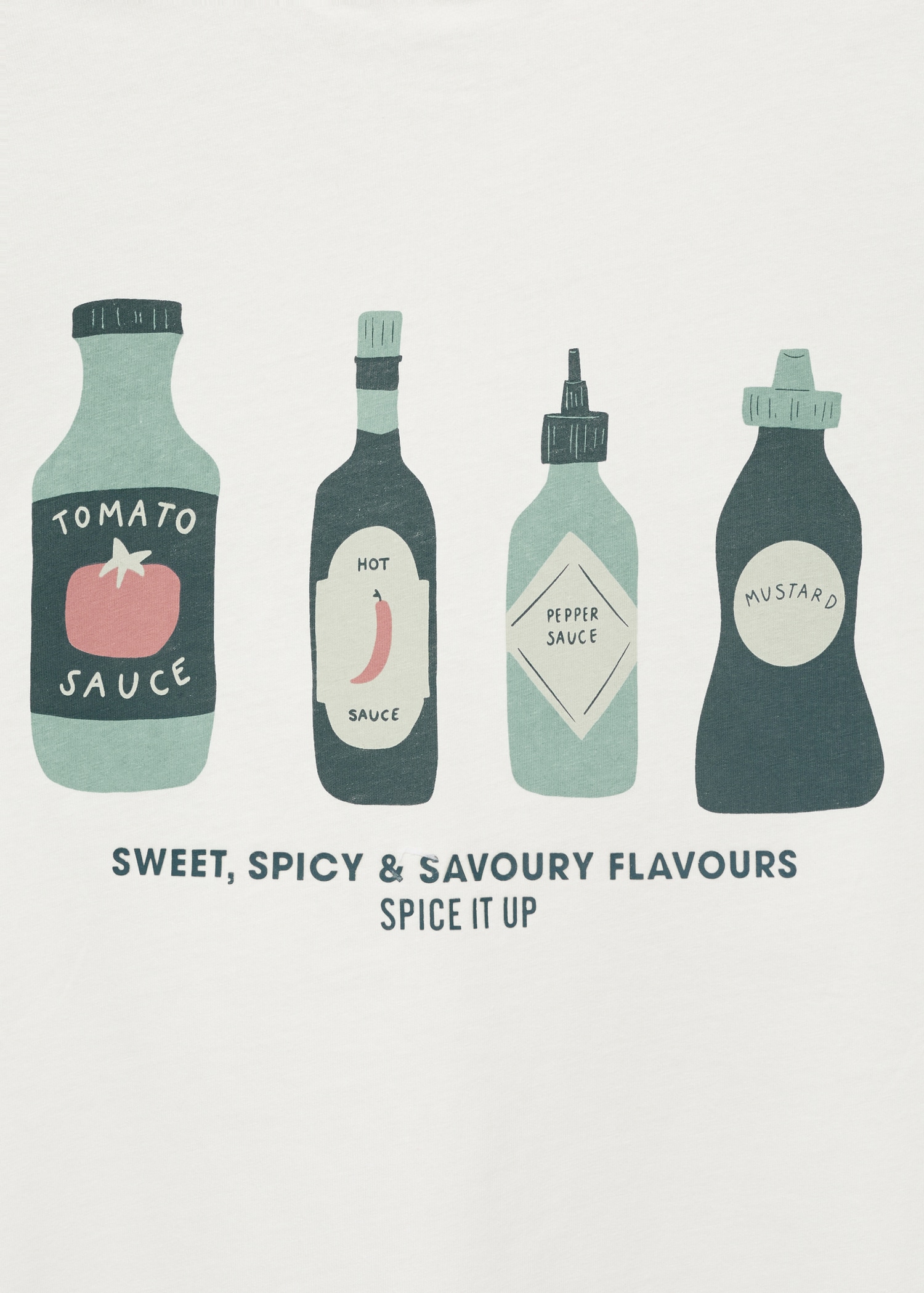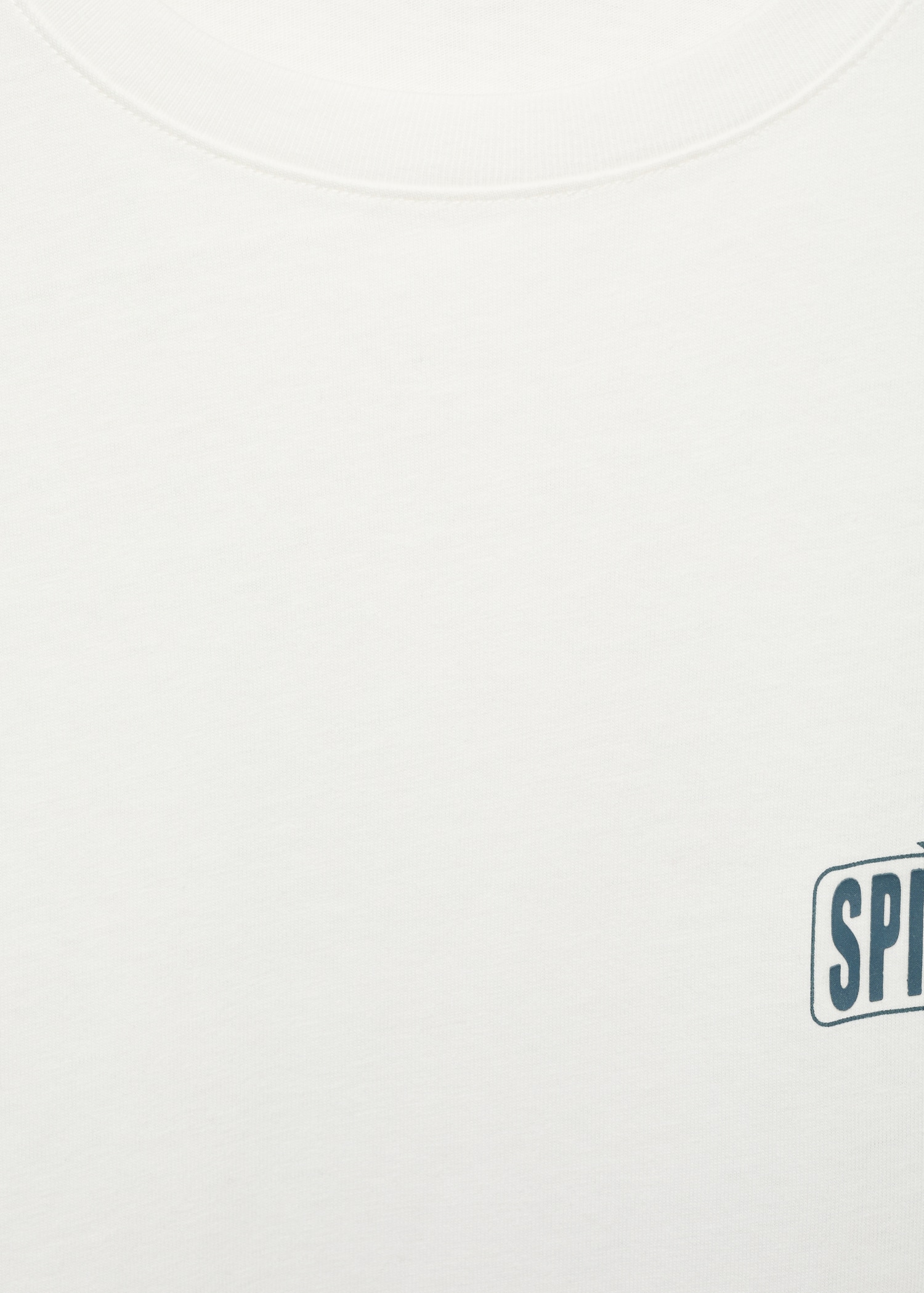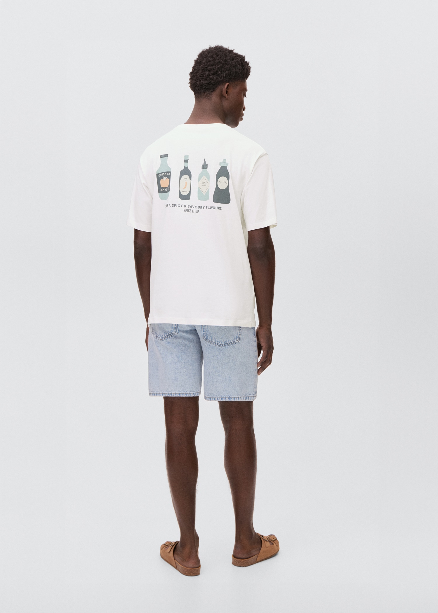 100% cotton fabric. Short design. Printed design. Crew neck. Short sleeves. Text printed on the chest. Printed design on the back