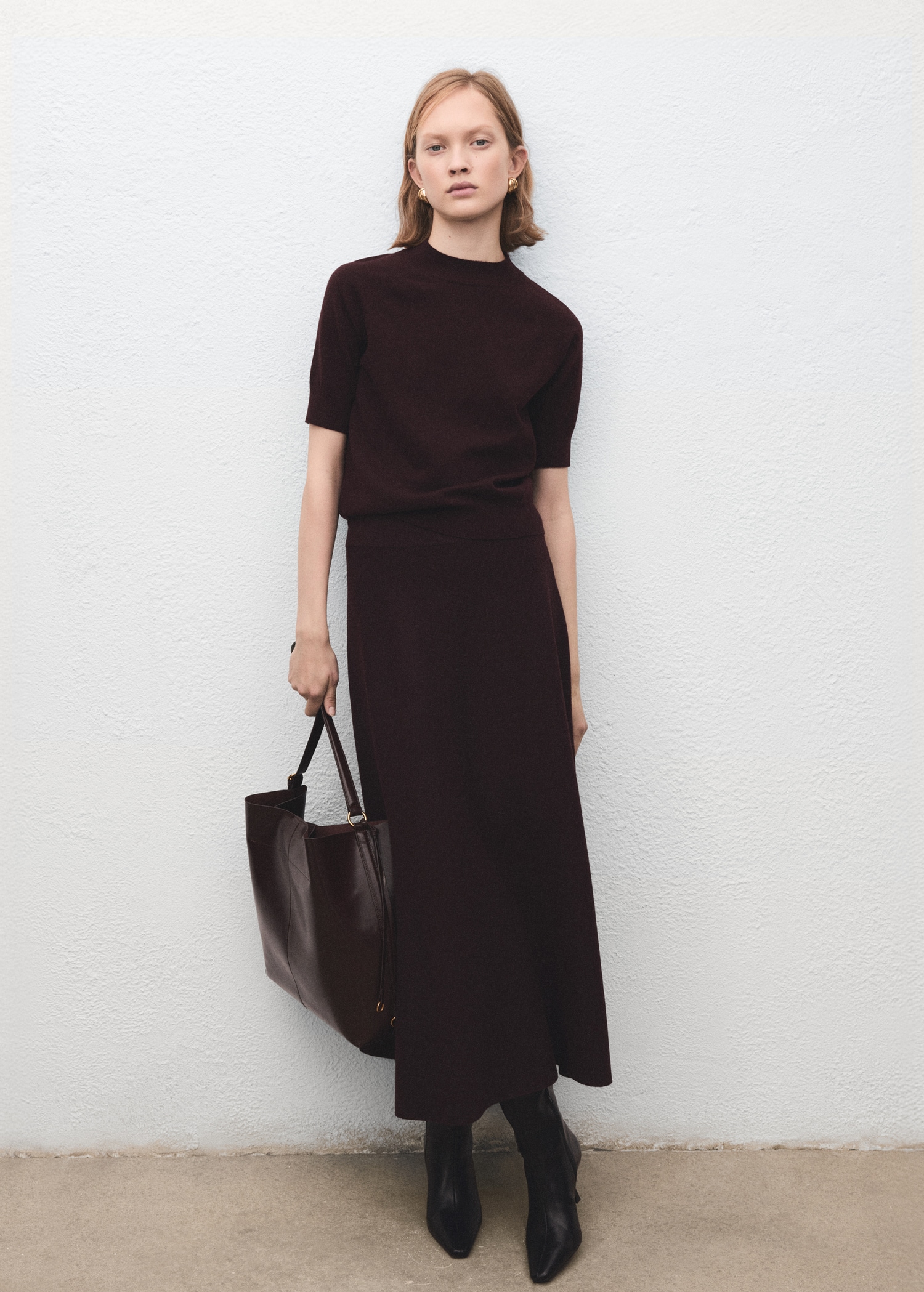Short-sleeved wool-blend sweater