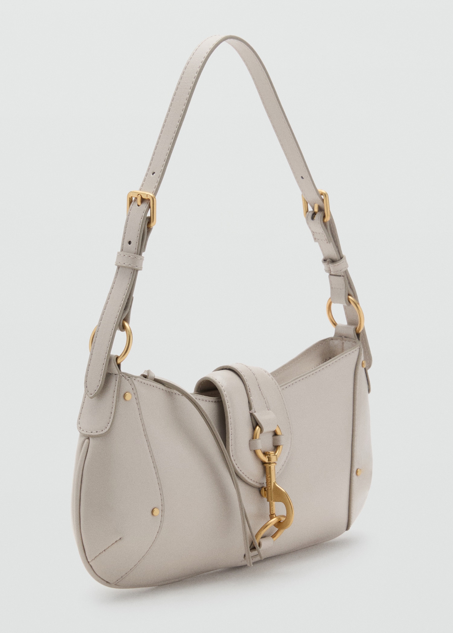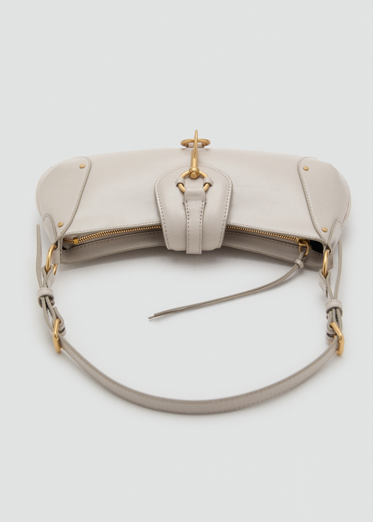 Leather effect. Small size. Adjustable shoulder strap. Zipper closure. Carabiner fastening. Inner lining. 11.81×5.12×1.18 in (Length x Height x Width)