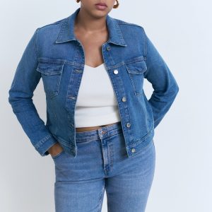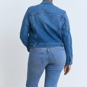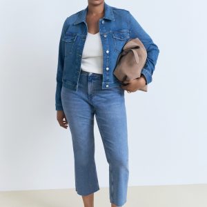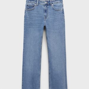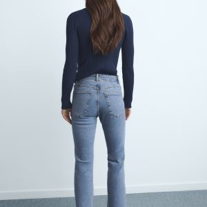 Cotton denim fabric. Stretch fabric. Crop design. Flare design. Mid-rise. Belt loops. Five pockets. Zip and button closure. Frayed hem. Inside length 65 cm. Available Plus. Recycled cotton-blend fabric. Bell design. High-rise. Front zipper and button closure. Comfort fabric with elasticity