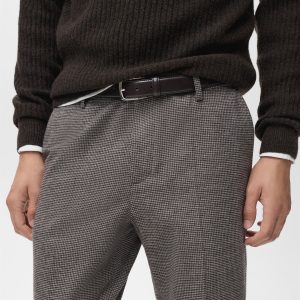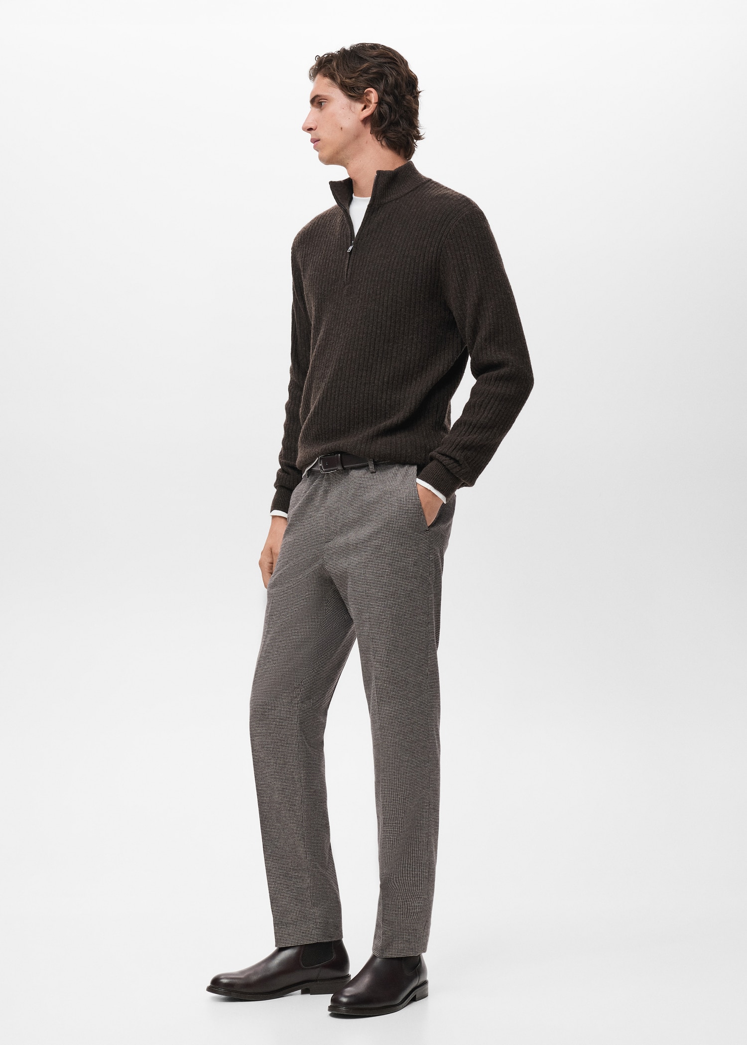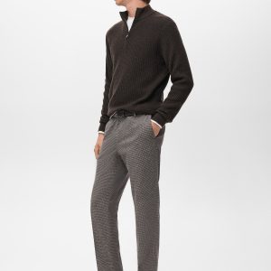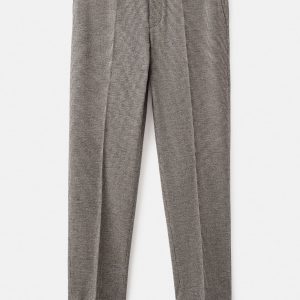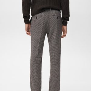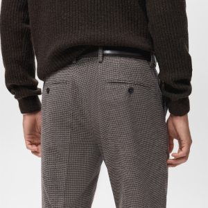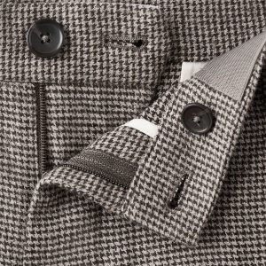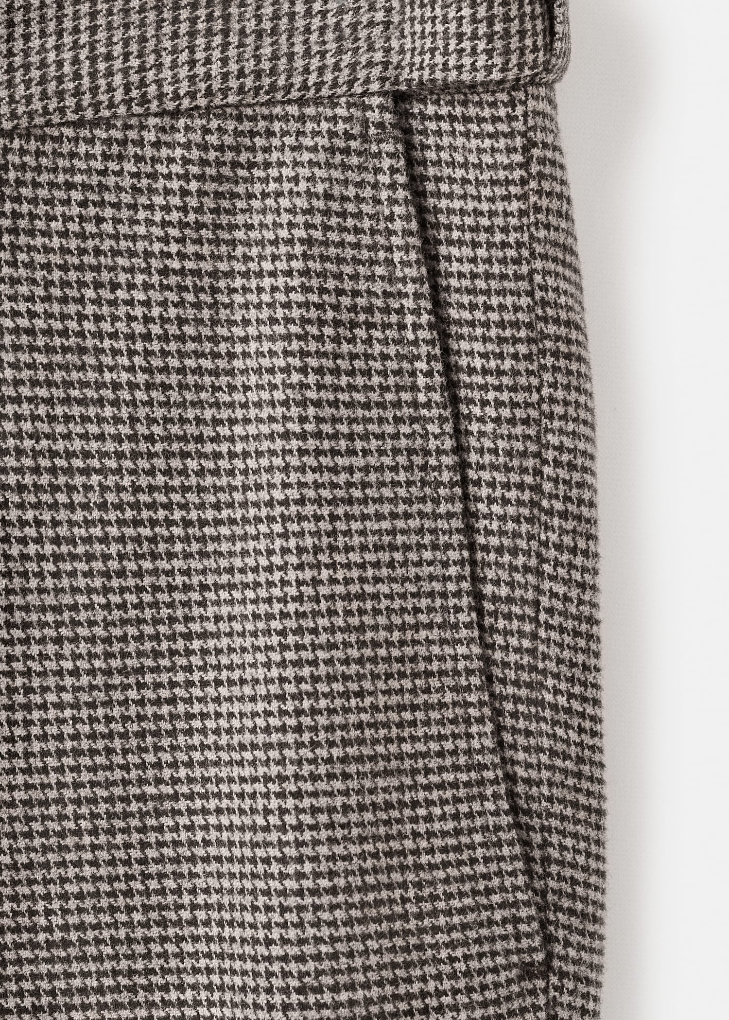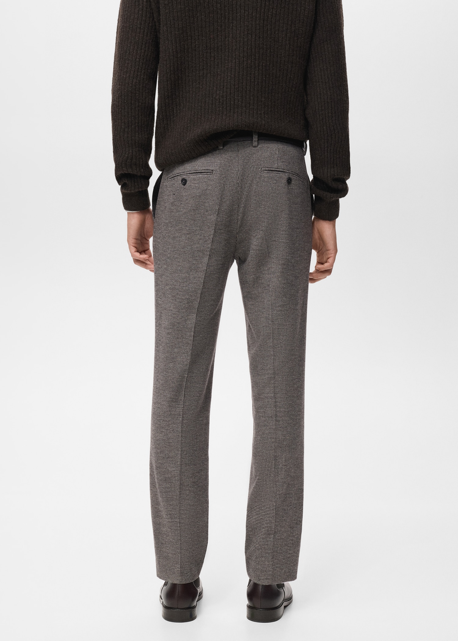 Slim fit. Soft cotton flannel. Micro houndstooth print. Ironed stripe detail at front and back. Front closure with double-breasted buttons and zipper. Two welt pockets with button at the back. Belt loops