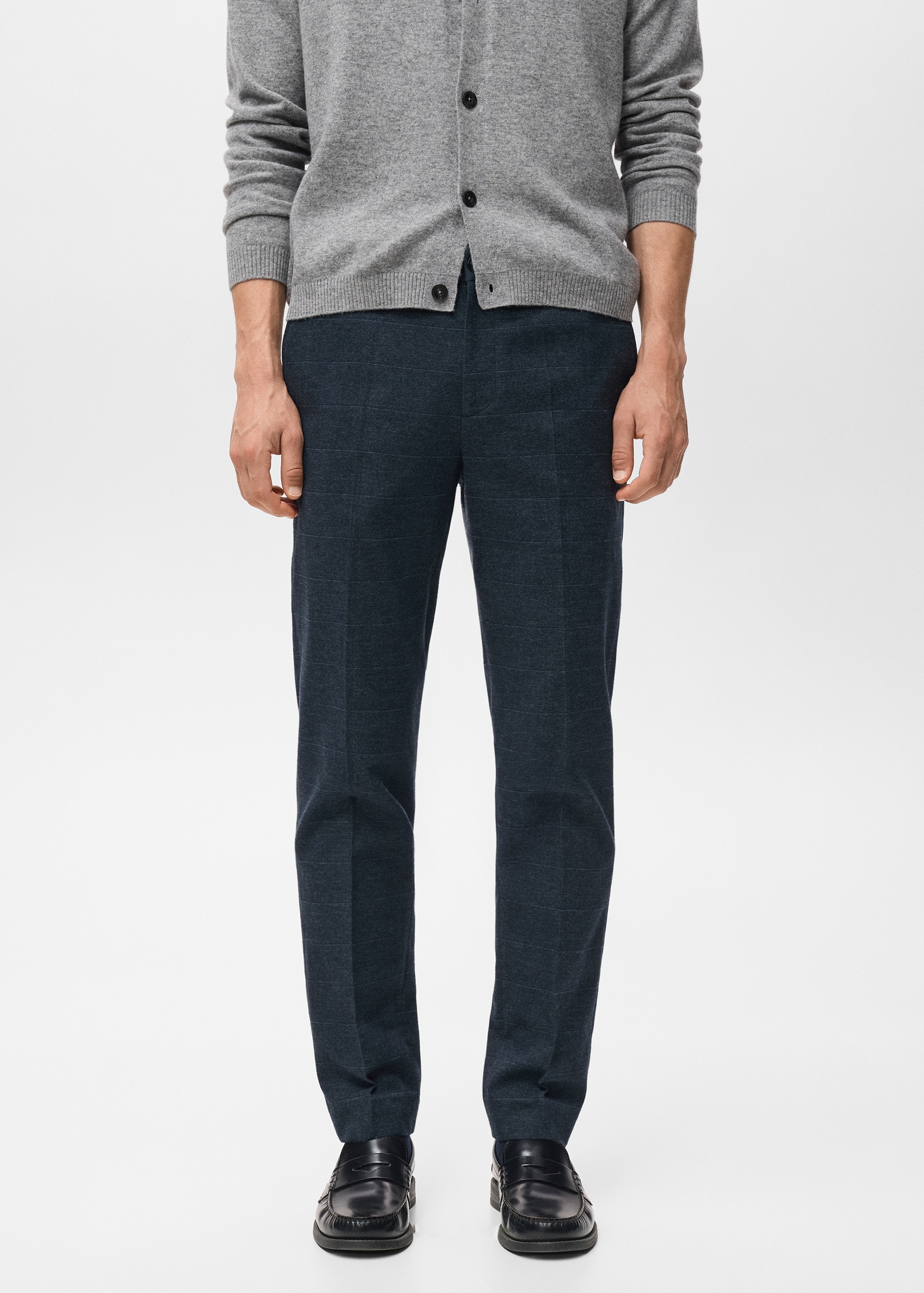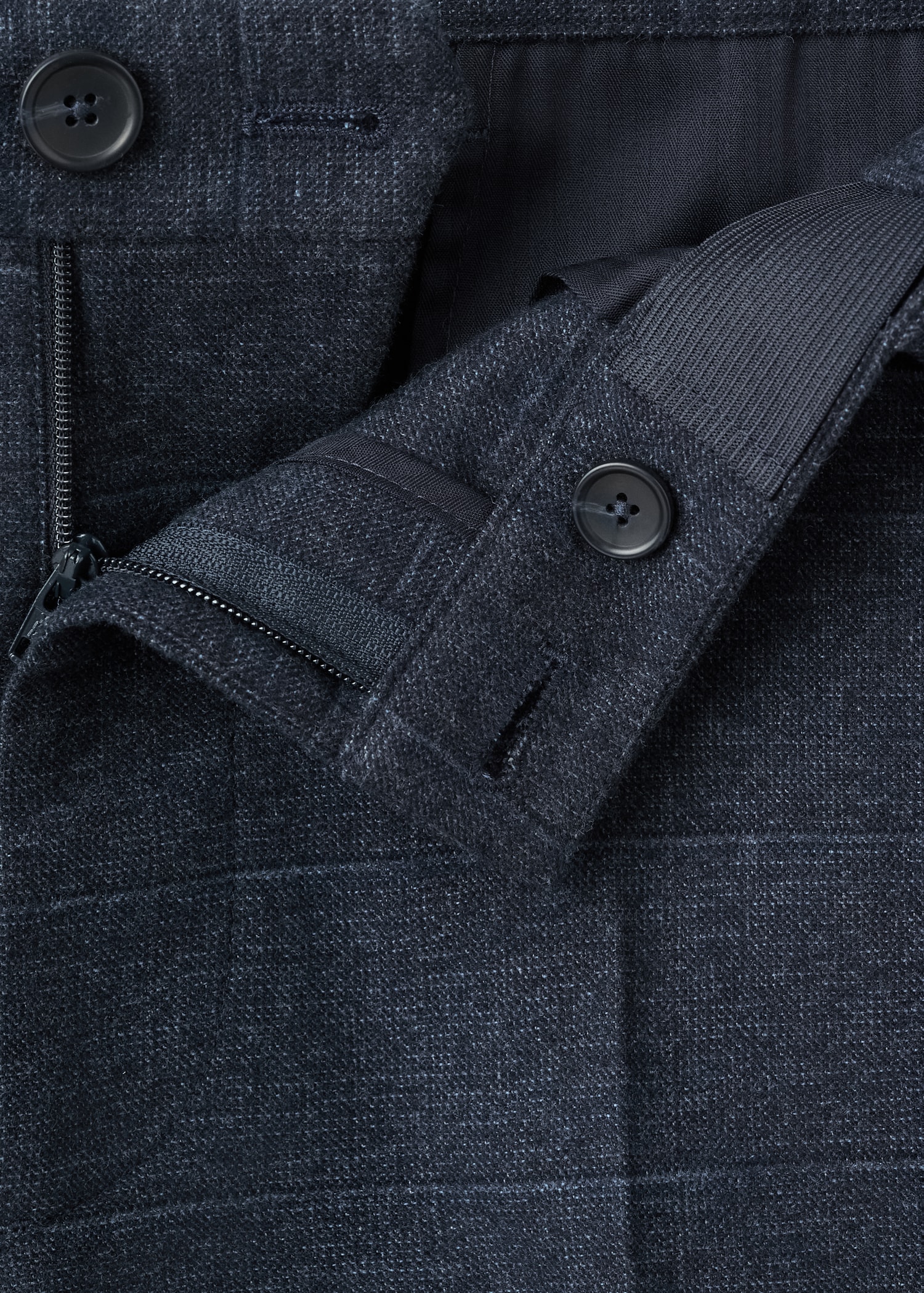 Slim fit. Soft cotton flannel. Two front pockets. Front closure with double-breasted buttons and zipper. Detail of front and rear calipers. Belt loops