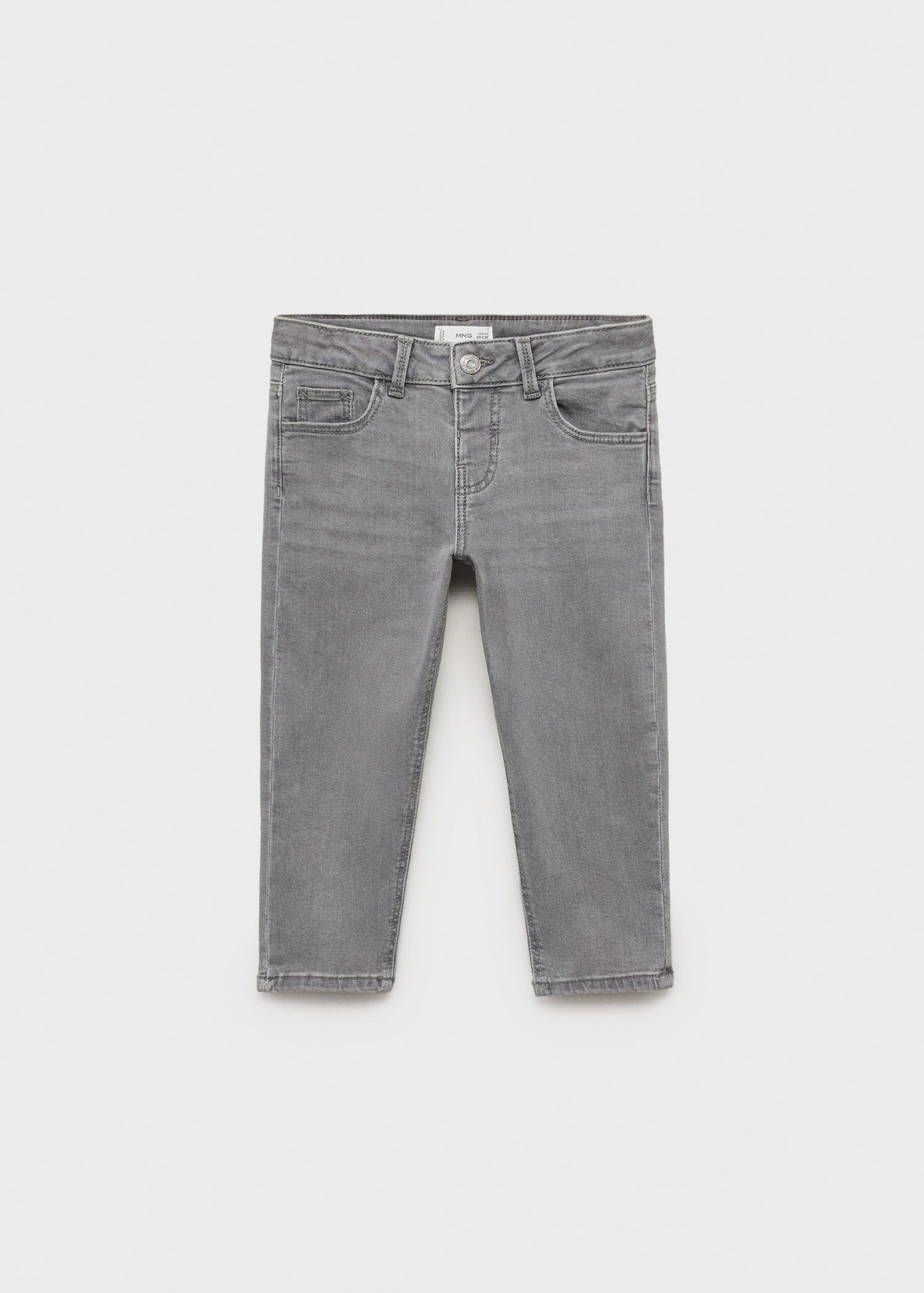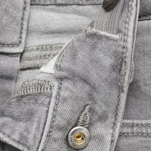 Cotton fabric. Stretch fabric. Long design. Belt loops. Button closure. Adjustable waistband with elastic. Coin pocket. Two side pockets. Two patch pockets at the back