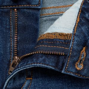 Cotton fabric. Stretch fabric. Long design. Straight design. Belt loops. Zip and button closure. Coin pocket. Side pockets. Two patch pockets at the back