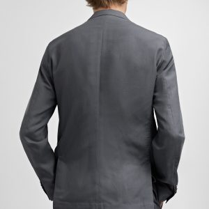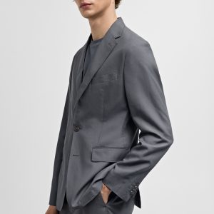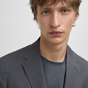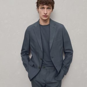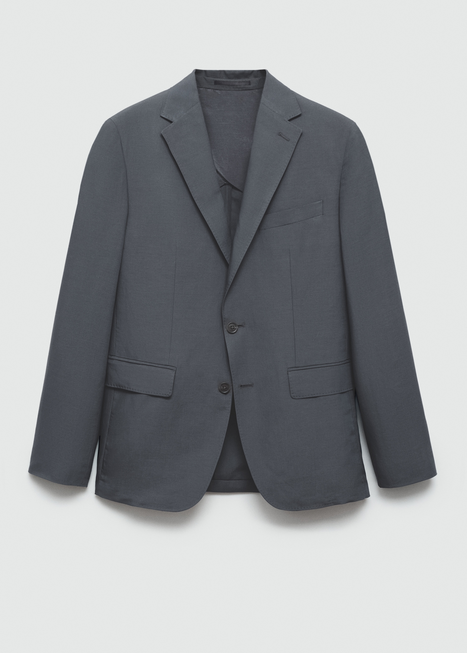 Slim fit. Notch lapels and buttonhole. Chest welt pocket. Two flap pockets on the front. Long sleeves with buttoned strip cuffs. Inner lining. Interior pockets. Hem with side openings. Tailoring collection. Lyocell, cotton and linen-blend fabric. Front button closure. Slightly slim-fit, the Slim Fit suit fits a little closer to the body compared to the Regular Fit. Ideal for those who seek a plus from the classic-fit suit, without going so far as to create a tightly-fitted silhouette. The Slim-Fit suit follows the natural lines of the body, enhancing the figure and providing an elegant and modern look.