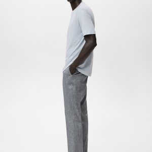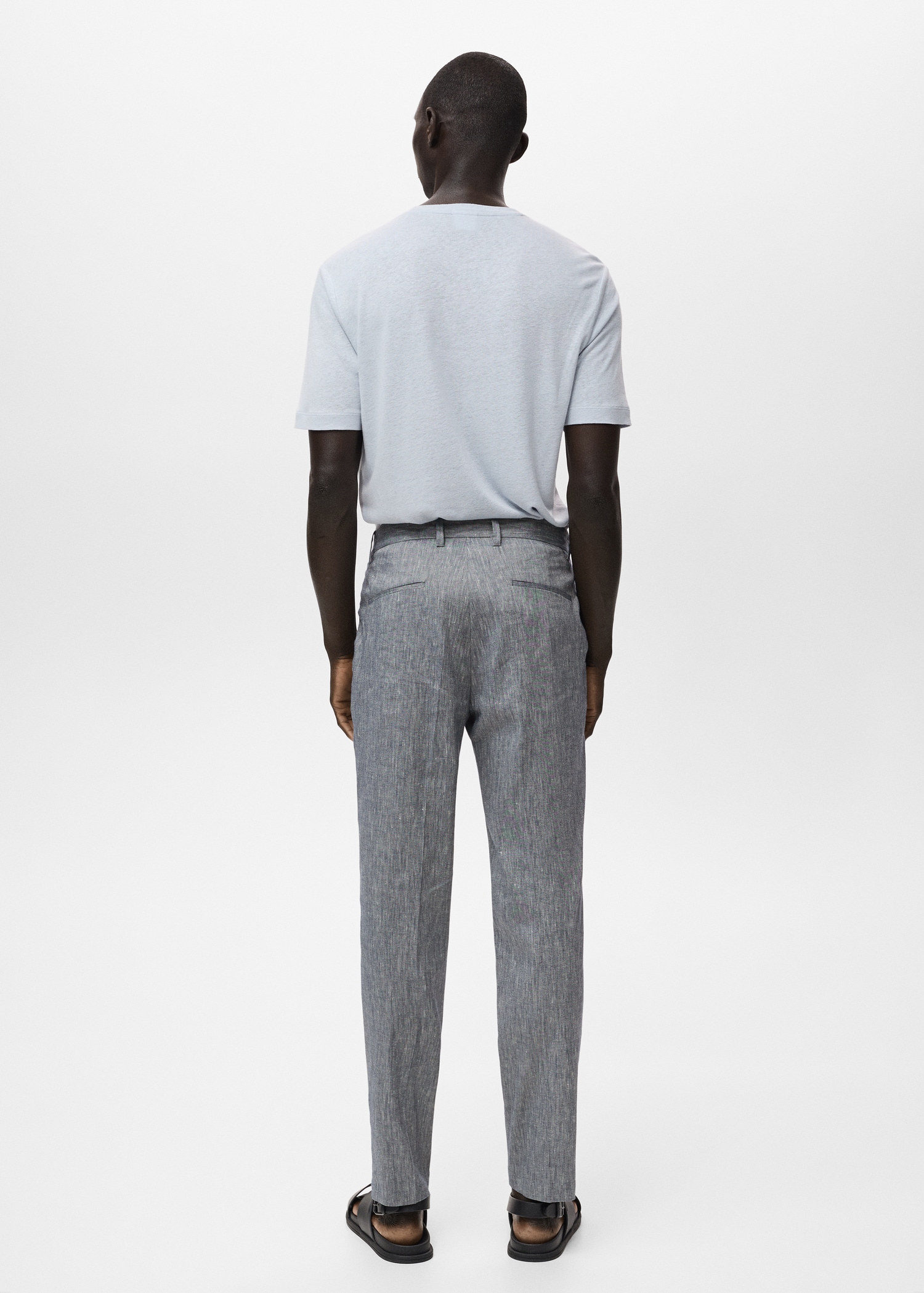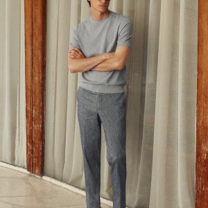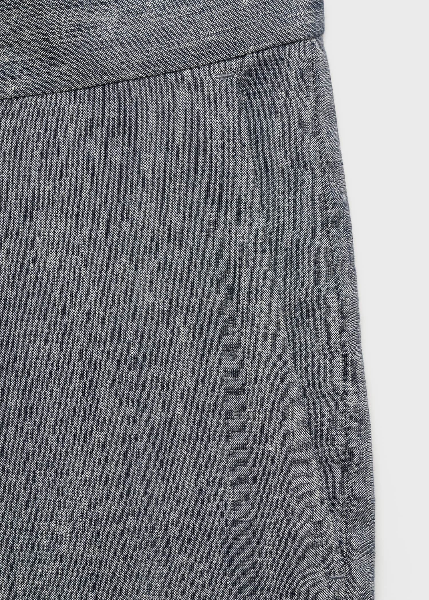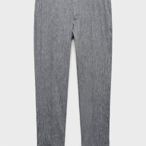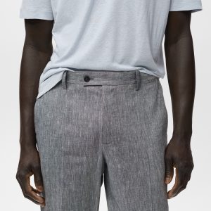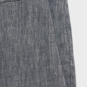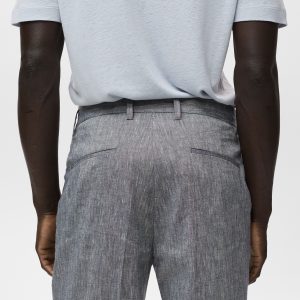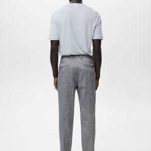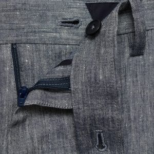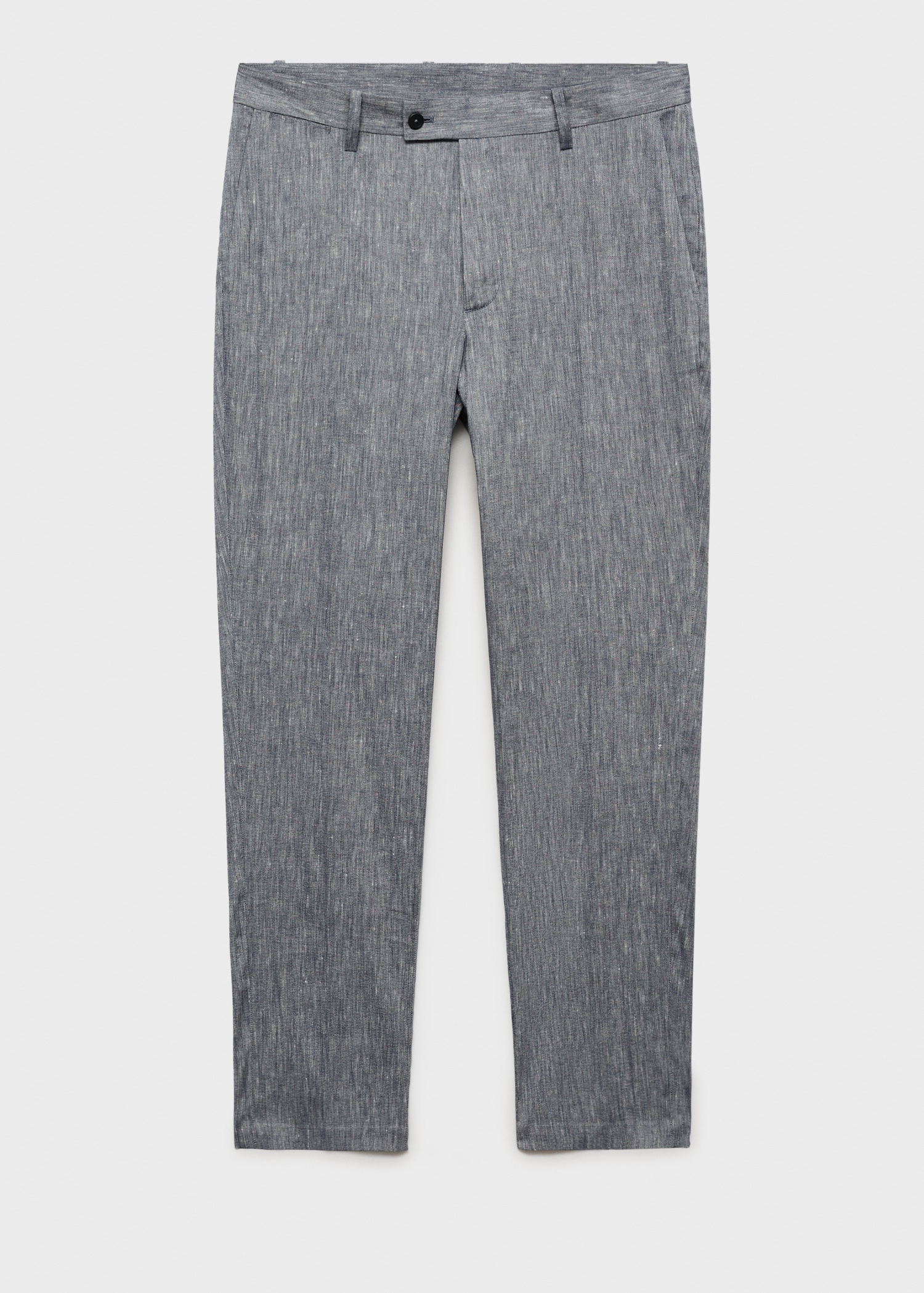 Slim fit. 100% Linen. Two side pockets. Two welt pockets with button at the back. Belt loops. Zip and button closure