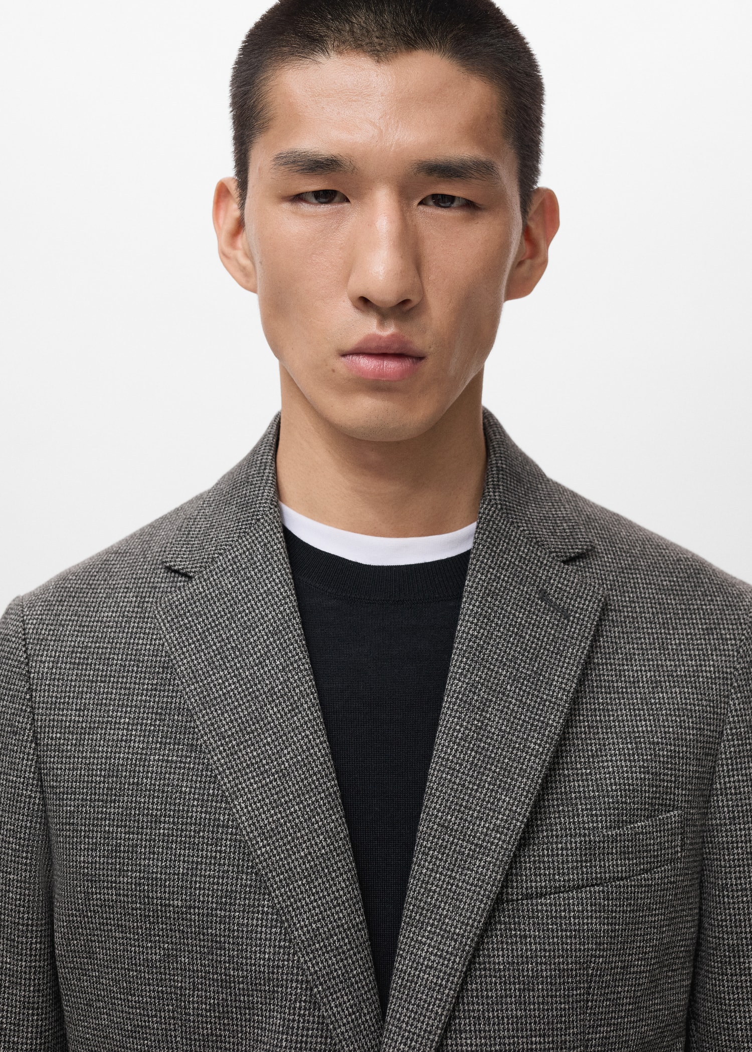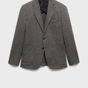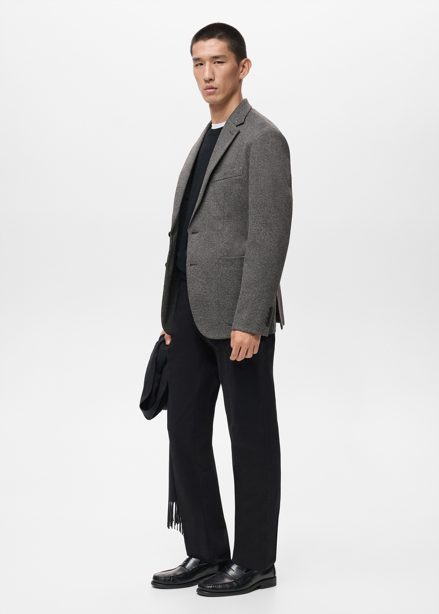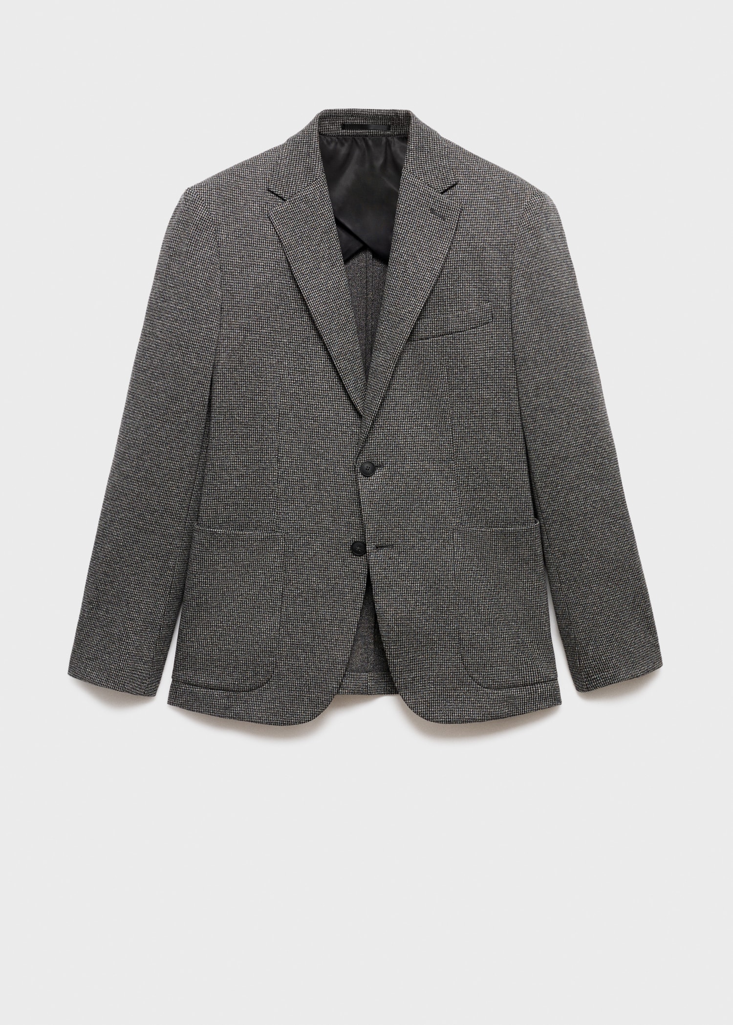 Slim fit. Cotton blend fabric. Fabric with microstructure. Notched lapel collar. Two patch pockets on the front. One welt pocket on the chest. Interior pocket. Long sleeves with buttoned cuffs. Two-button closure at the front. ESSENTIALS: Made to last. We have strengthened our quality standards by adding new endurance tests to our garments. Designed with careful consideration of their construction, they are even more durable, versatile and timeless