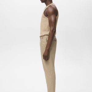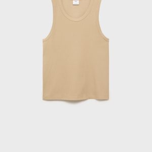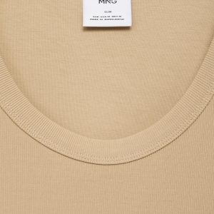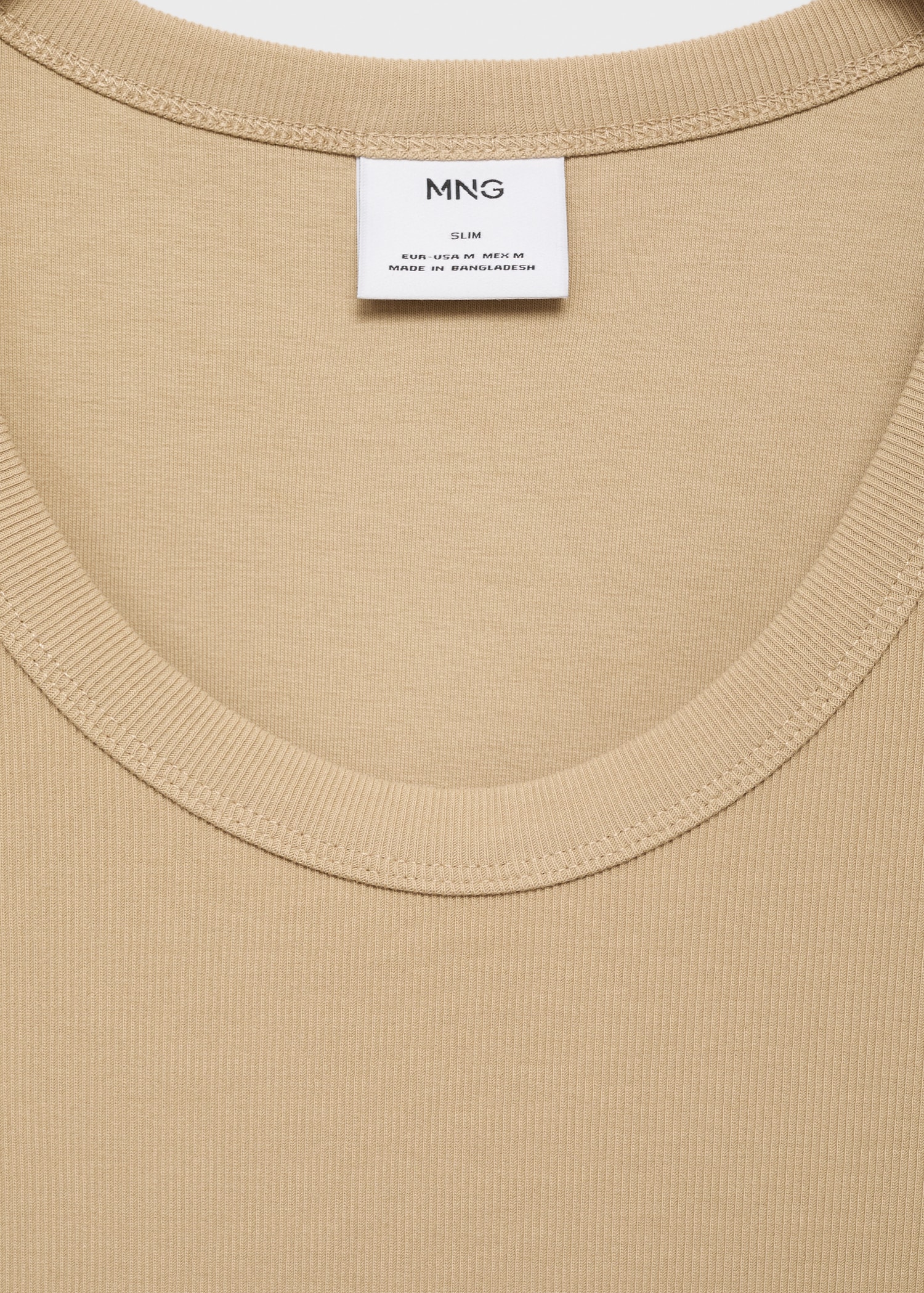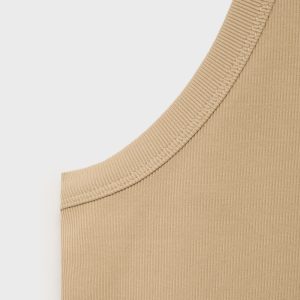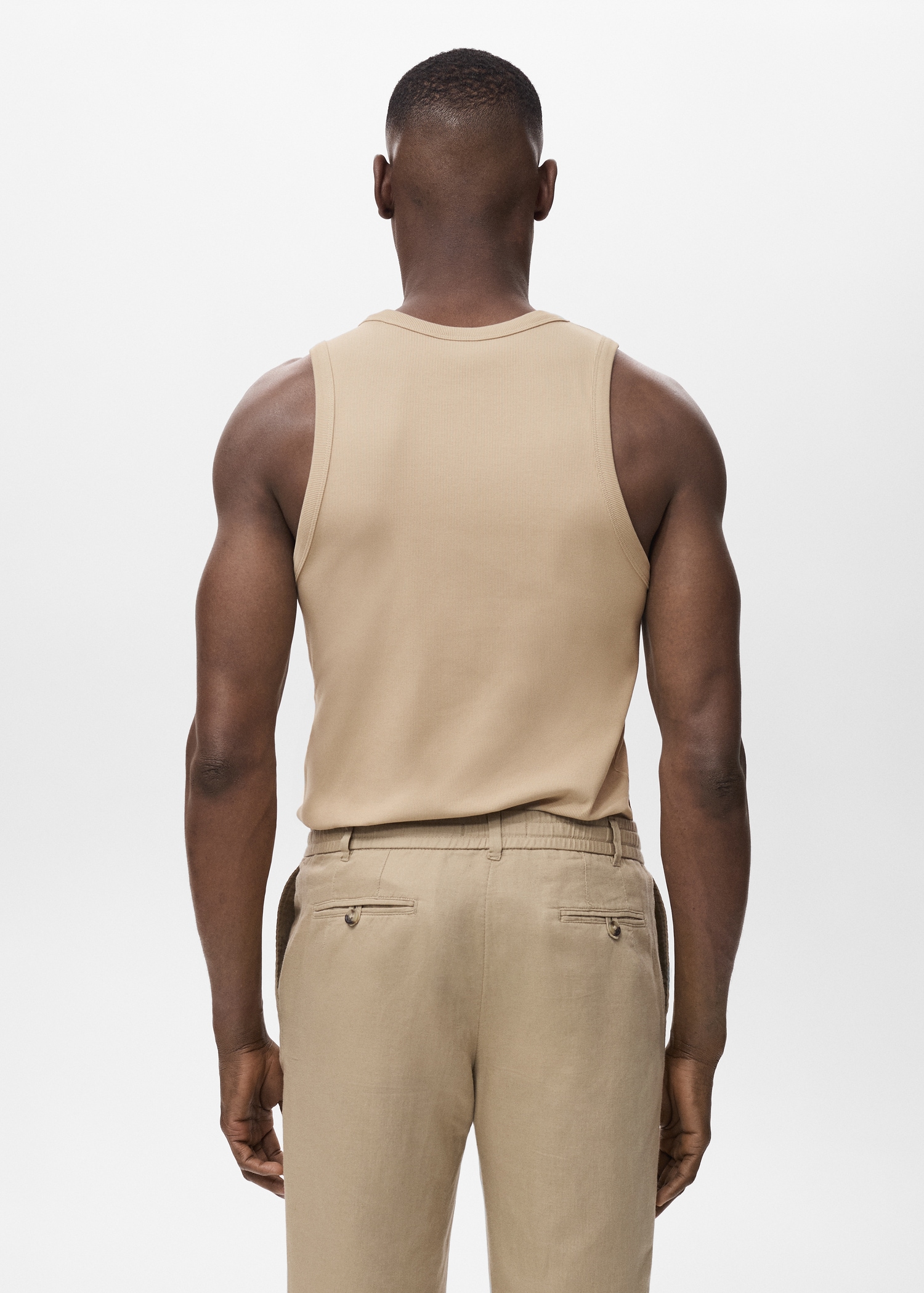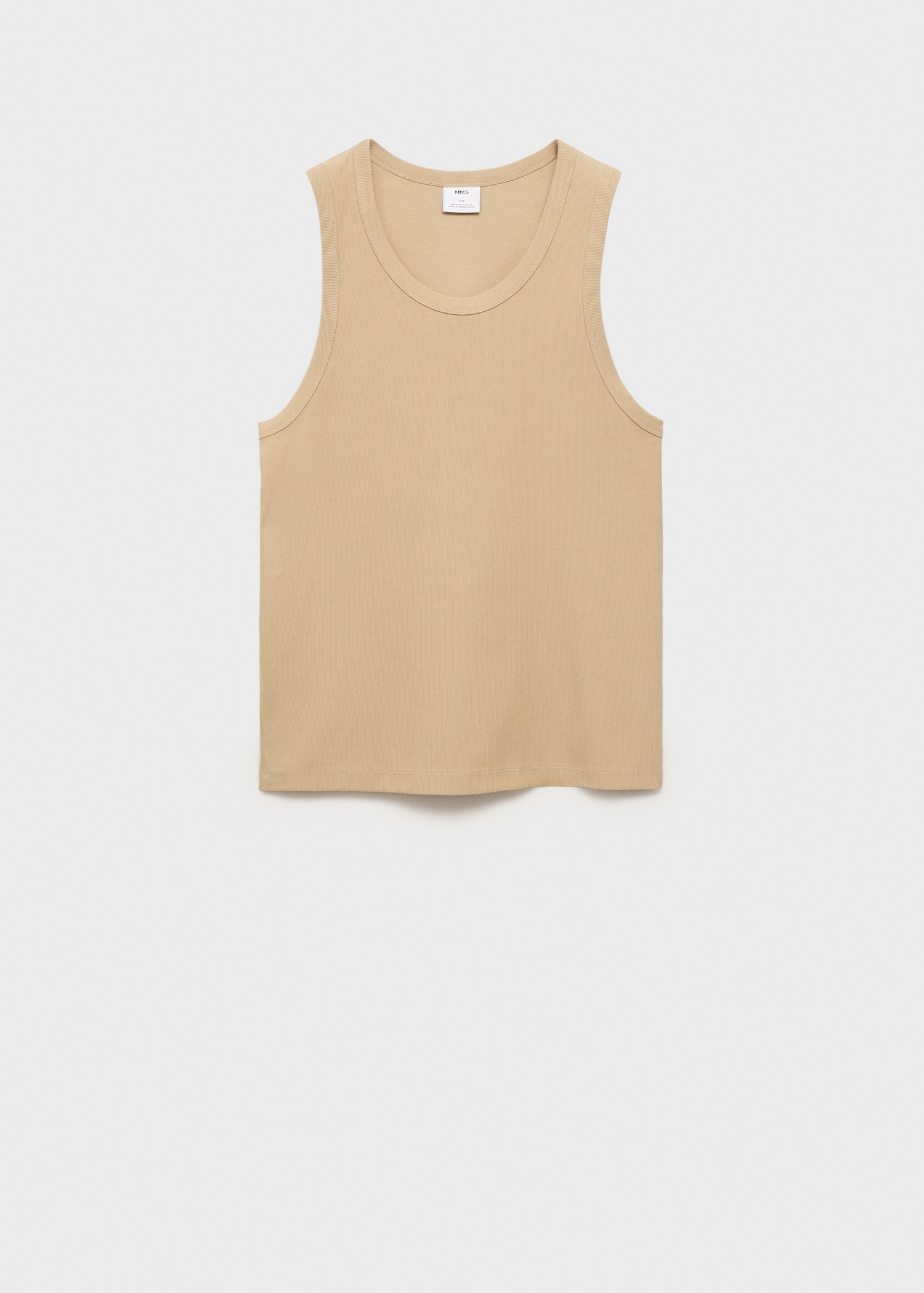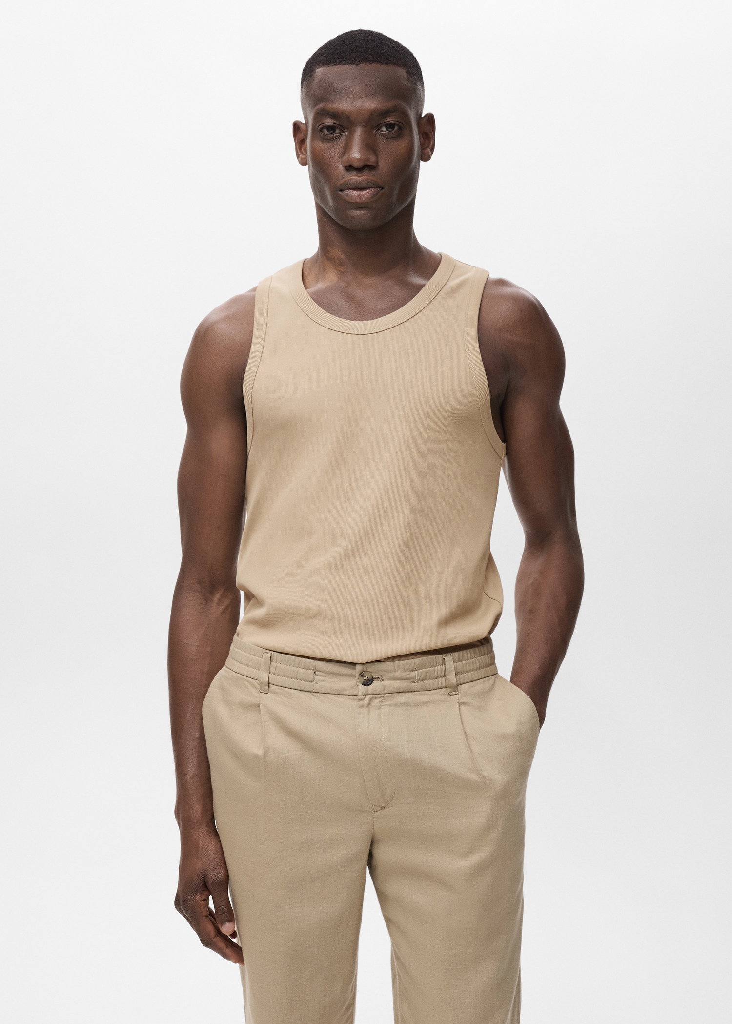 With a slim fit, this garment is crafted from cotton fabric. It features a sleeveless design and a round neckline. The ribbed knit fabric includes rib finishes at the neck, armholes and hem. The model is 190 cm tall and is wearing a size M