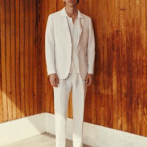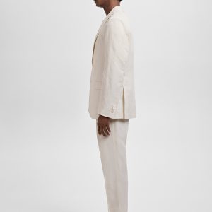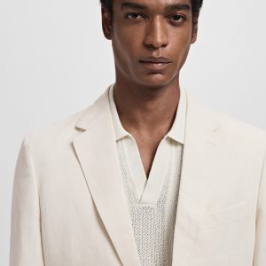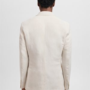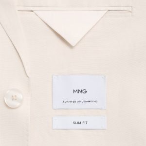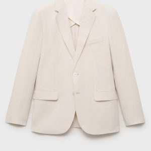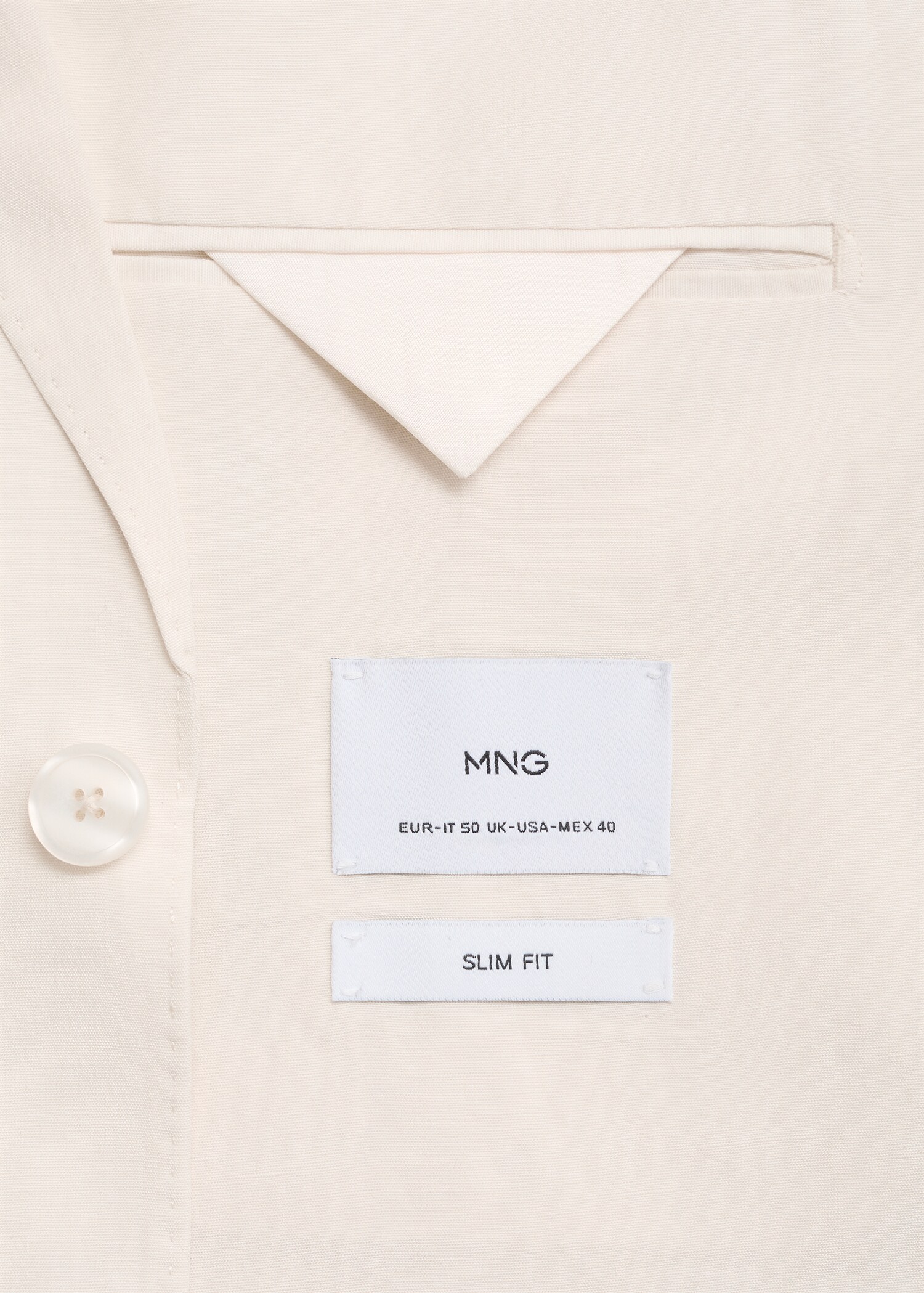 Lyocell, cotton and linen-blend fabric. Slim fit. Notch lapels and buttonhole. Front button closure. Buttoned cuff straps. One welt pocket on the chest. Two welt pockets with flaps on the front. Two vents at the back hem