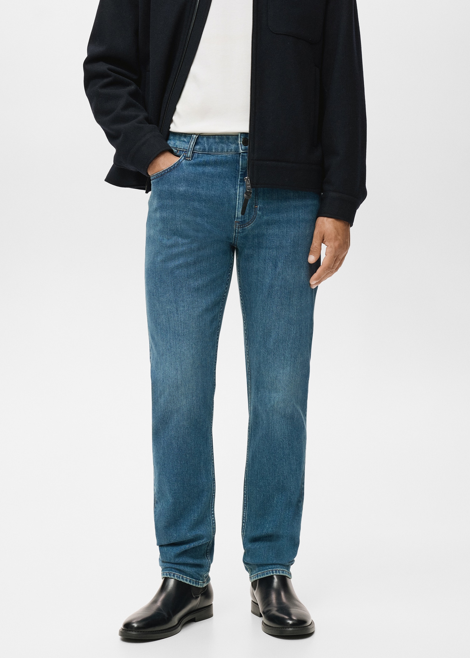 Slim fit. Cotton blend fabric. Soft fabric. Two side pockets. Coin pocket. Two patch pockets at the back. Belt loops. Zip and button closure. ESSENTIALS: Made to last. We have strengthened our quality standards by adding new endurance tests to our garments. Designed with careful consideration of their construction, they are even more durable, versatile and timeless