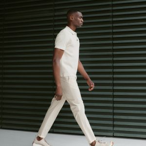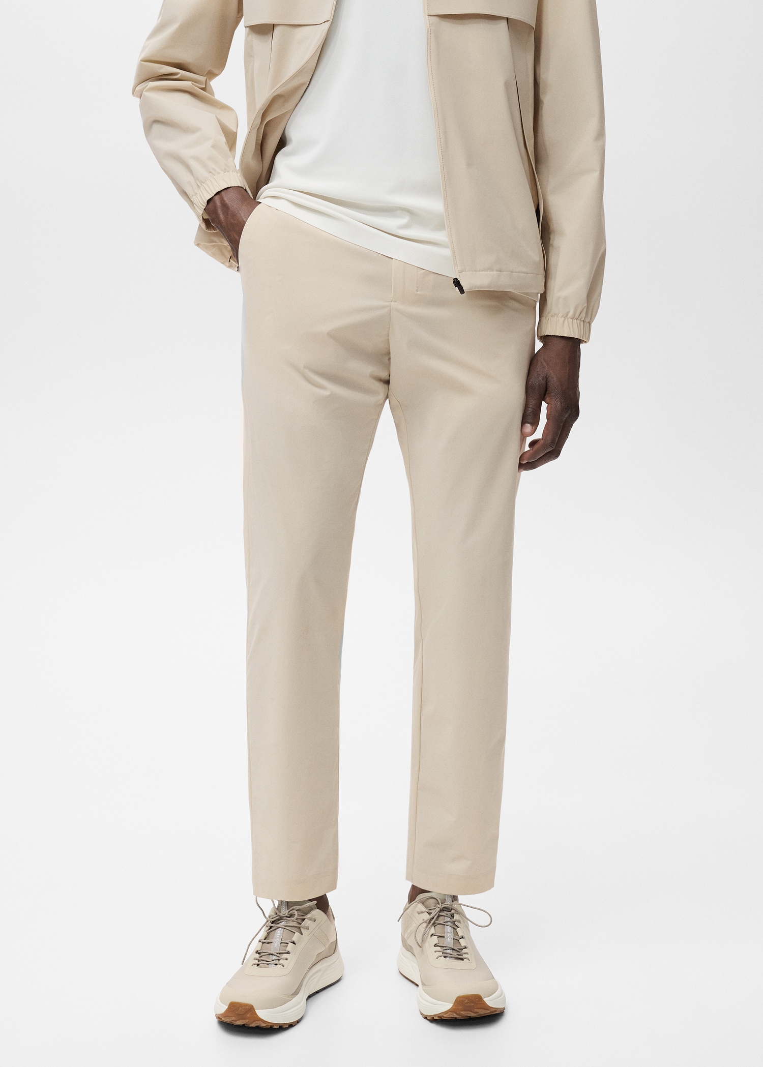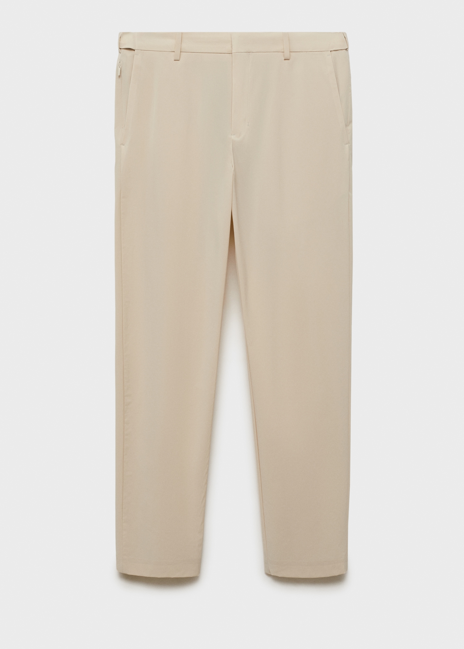 Performance Collection. Perfect for those seeking a functional and comfortable garment. Thermoregulator: This fabric offers optimal breathability to keep you at a stable temperature. Water-repellent: The durable finish of this garment protects against light rain, repelling contact with water and raindrops. Slim fit. Belt loops. Double button and zip closure. Side pockets. Side zipper pocket. Two rear welt pockets with snap button closures. PERFORMANCE: A collection of garments crafted from technical fibers. This selection offers a wide range of advanced features such as bi-stretch fabrics, and quick-drying, easy-iron, thermoregulating, breathable or water-repellent properties, organised into three general categories: Thermoregulating, Functional and Comfort