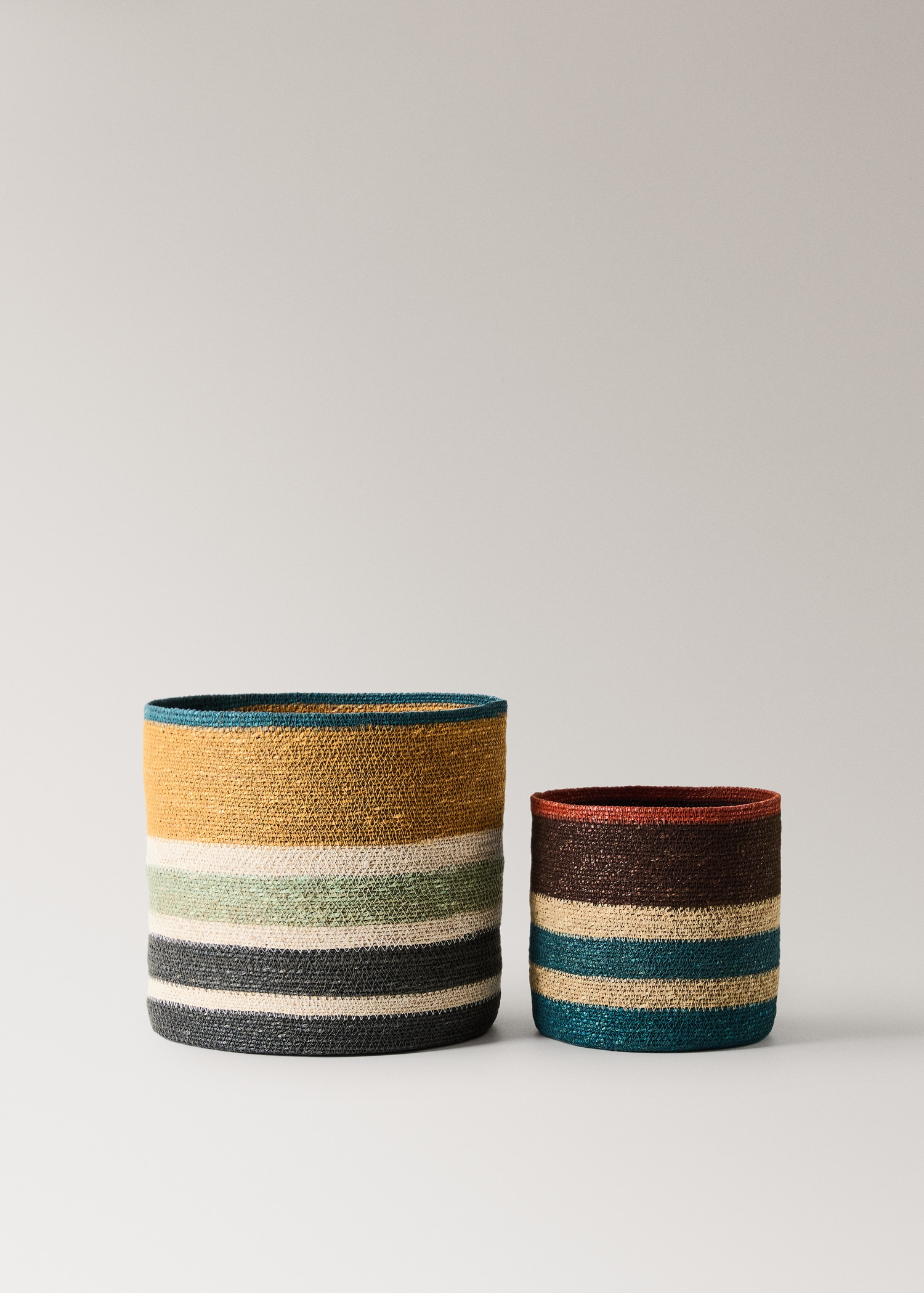 100% seagrass. Size: 25x25x24 cm. Multicolor design. Coordinates with more products from the collection. Versatile and adaptable to multiple styles. Adds a colorful and special touch. Available in different sizes