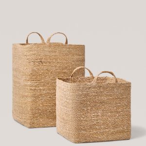 Size: 12.60×12.60×11.81in. Natural fiber fabric. Handmade with natural and 100% sustainable materials and seaweed. Use it to keep all kind of little objects in any room of your home. Two handles. Double handle. 100% seaweed. Versatile and adaptable to multiple styles. This model of basket is available in 2 sizes (S,M). Minimalist and functional design. Whether in the bathroom, laundry room, or bedroom, this basket is the perfect complement to keep your clothes organized before washing. Ideal for those seeking subtle and simple decor. Ideal for storage or as a decorative piece. Available in two sizes