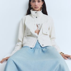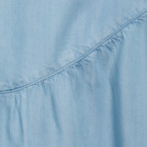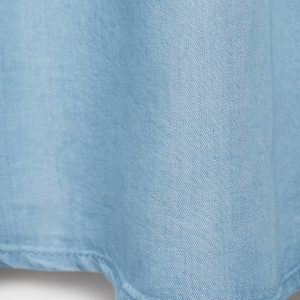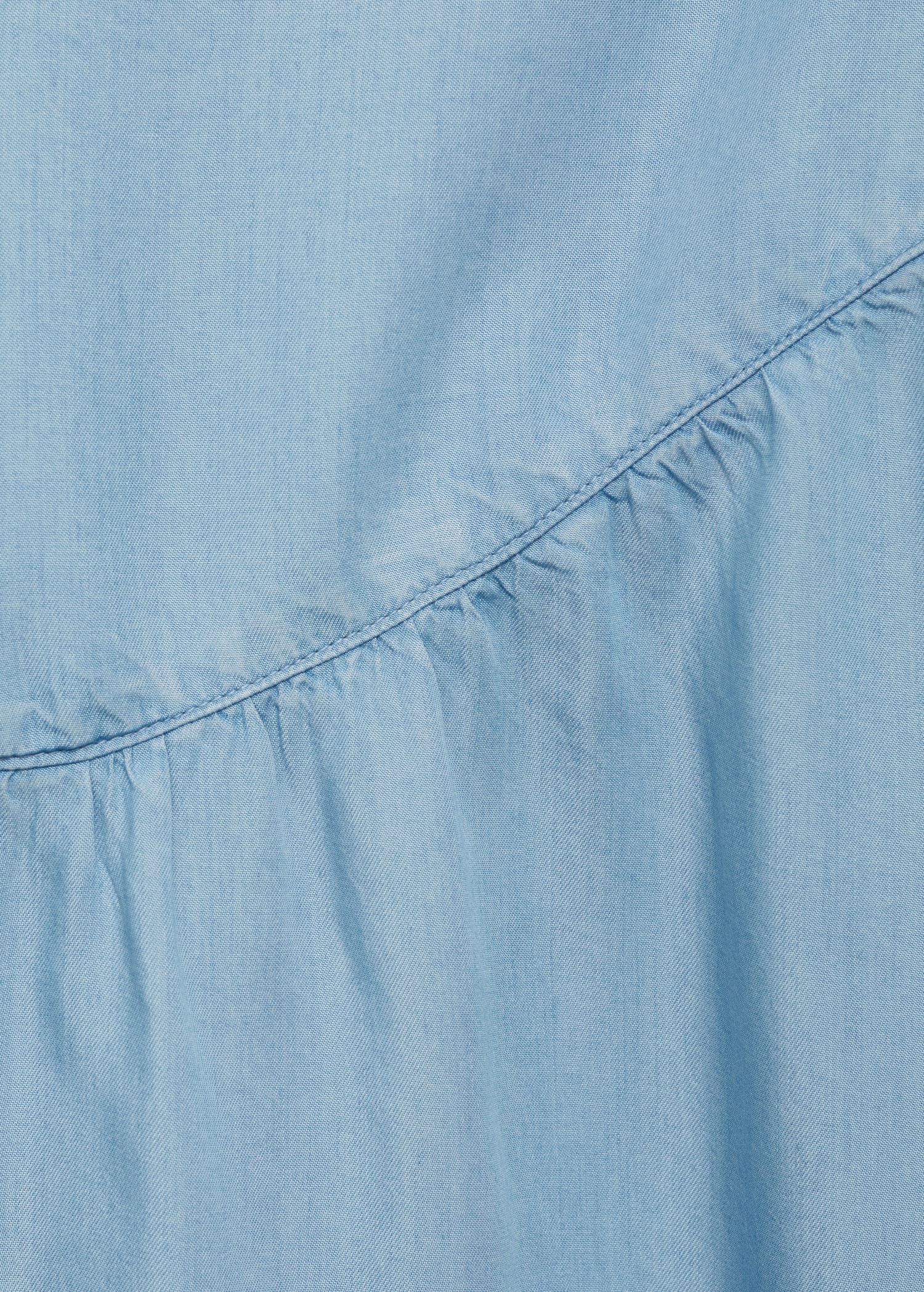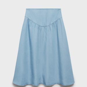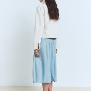 Lyocell fabric. Soft denim. Midi design. A-line design. High-rise. Back zipper closure