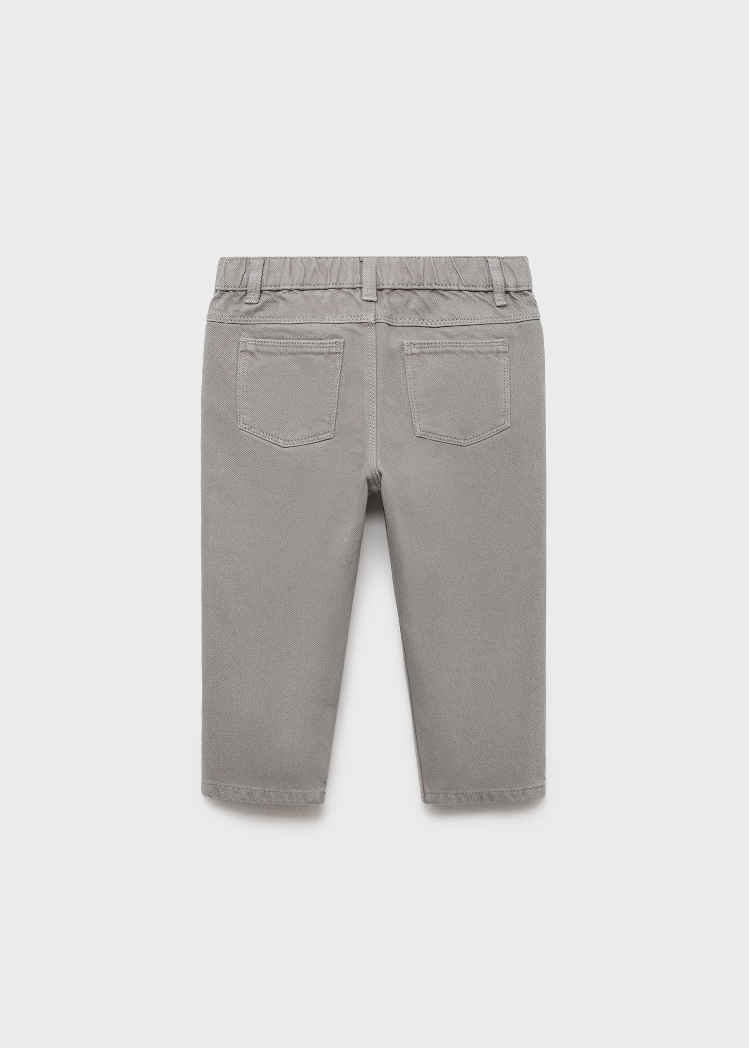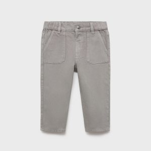 100% cotton fabric. Straight Design. Long design. Elastic waist. Button closure. Loops on the waist. Two front patch pockets. Two patch pockets at the back. Back to school