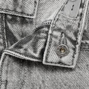 100% cotton fabric. Straight Design. Long design. Loops on the waist. Button and zipper closure. Two side pockets. Two patch pockets at the back