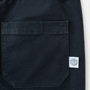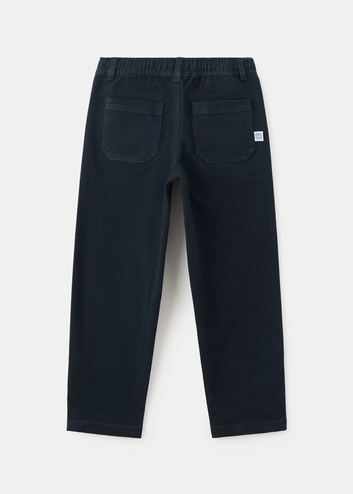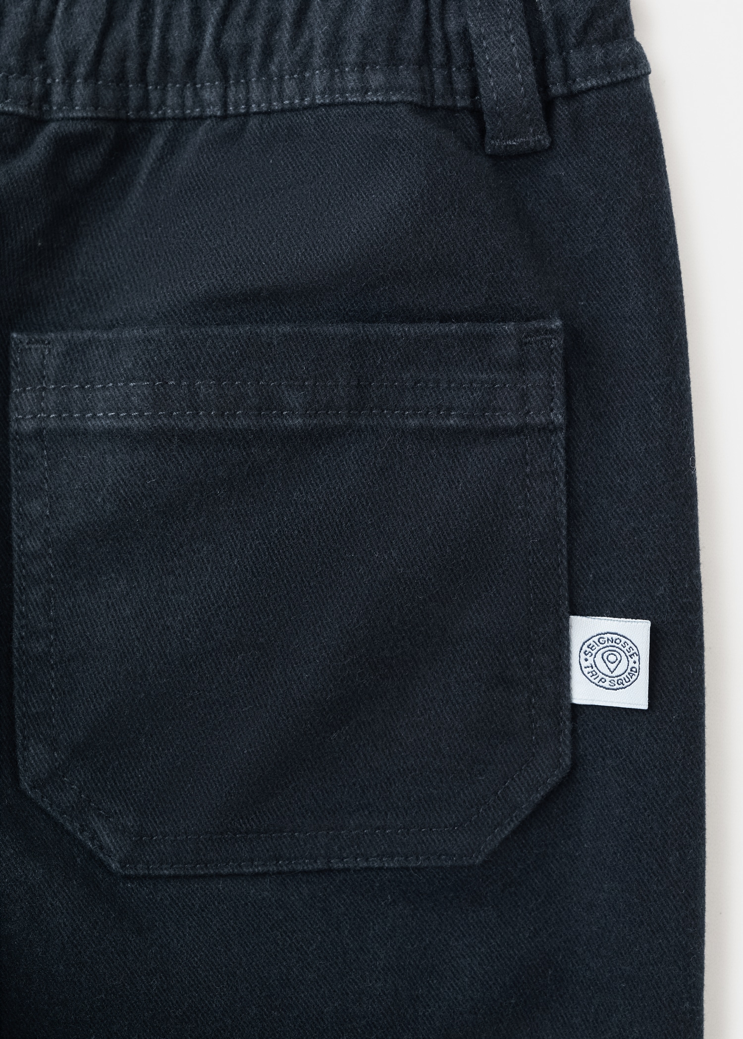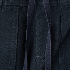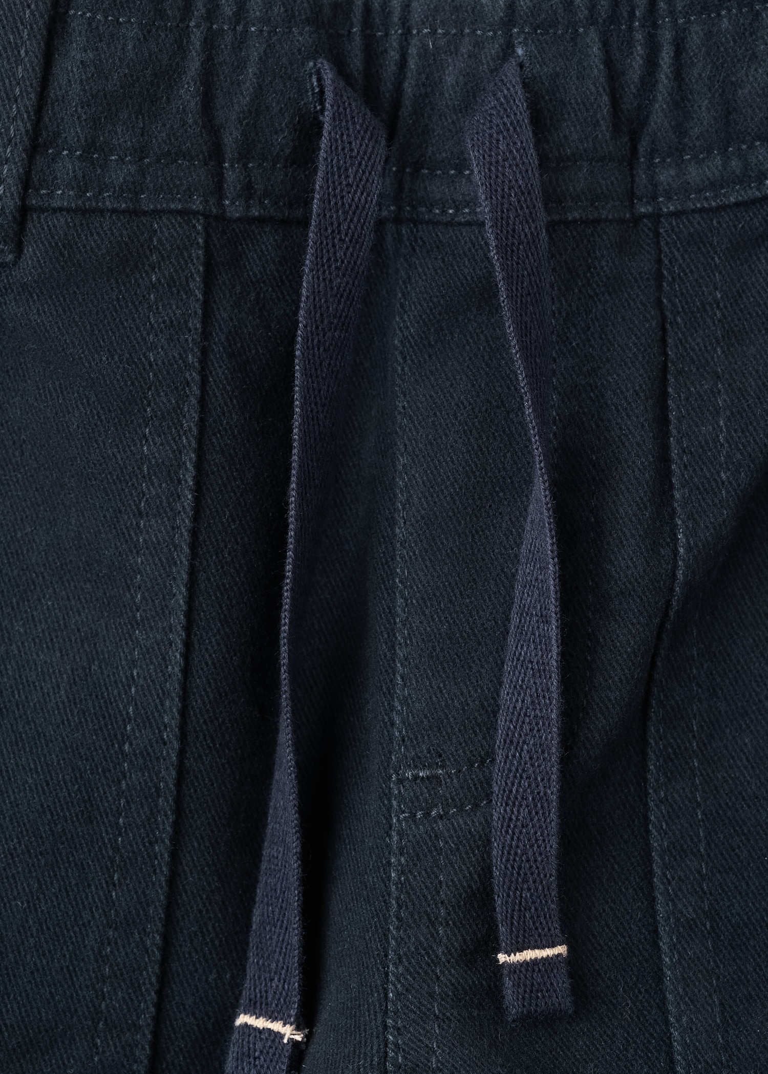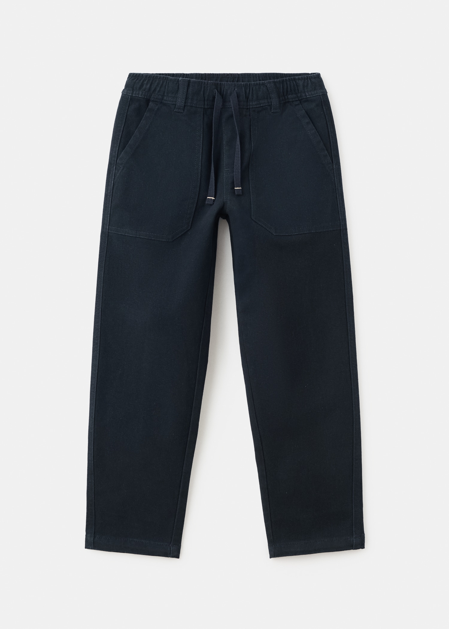 Crafted from stretch cotton fabric, this straight and long design offers comfort. The elastic waistband with a drawstring ensures a perfect fit. It features two side pockets and two patch pockets at the back