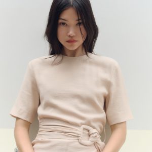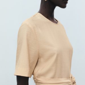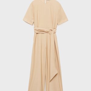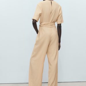 Straight-fit short-sleeved jumpsuit with belt
