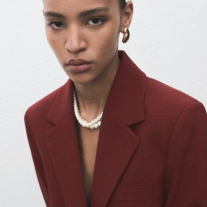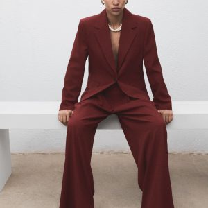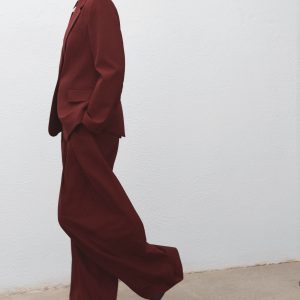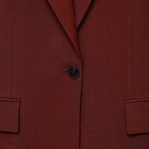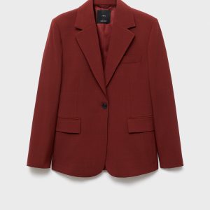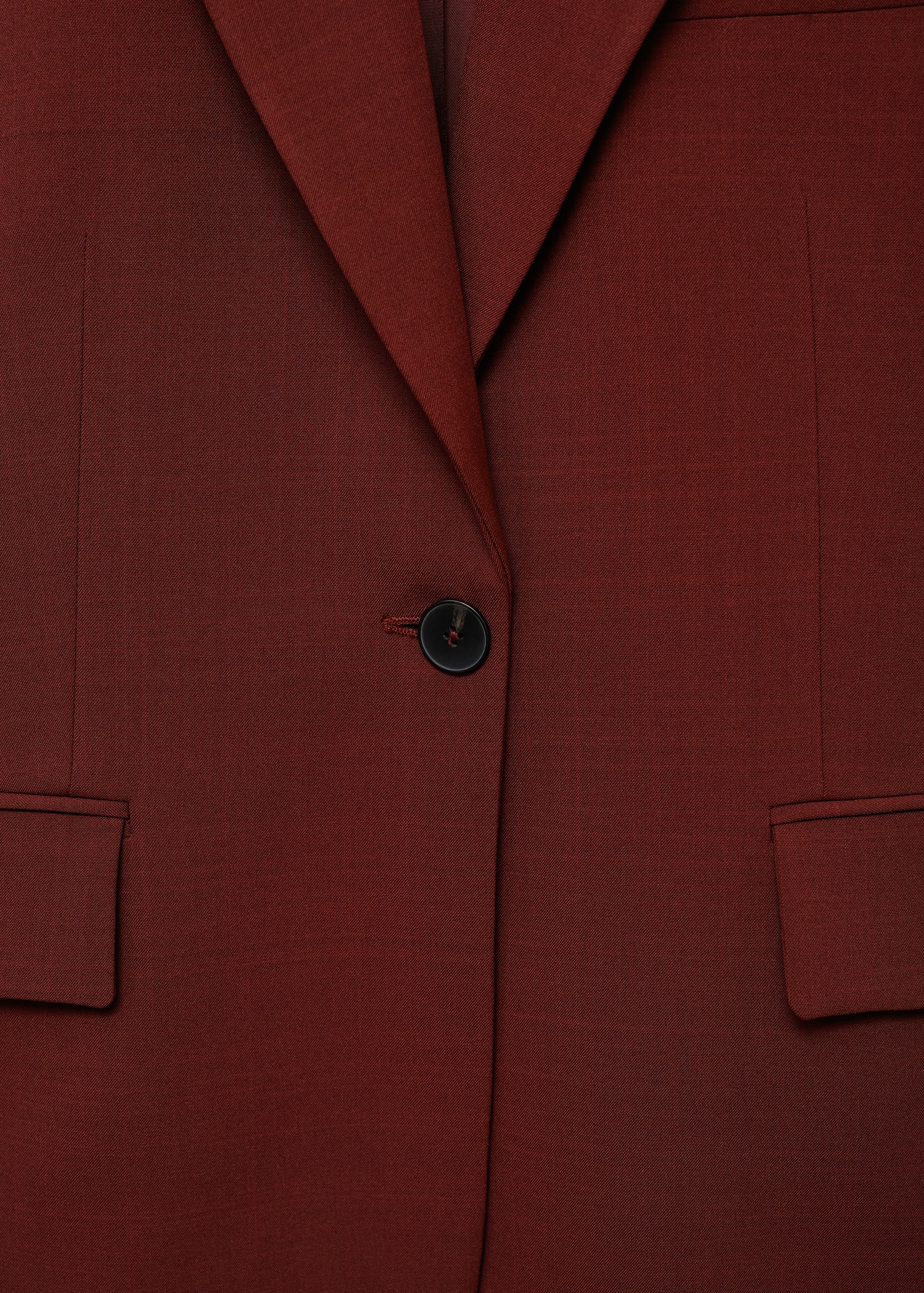 Straight Design. Lapel-collar V-neck collar. Notch lapels. Long sleeves with buttoned cuffs. Chest welt pocket. Two pockets with flaps on the front. Front button closure. Inner lining. Total look